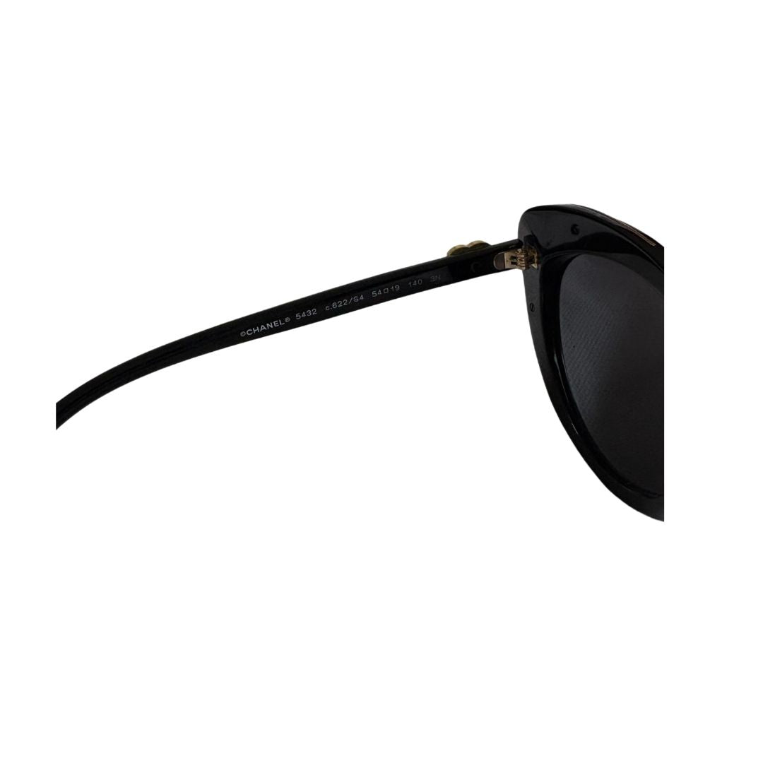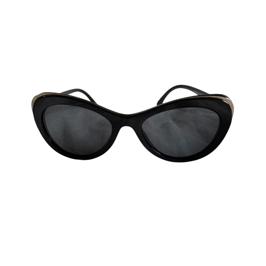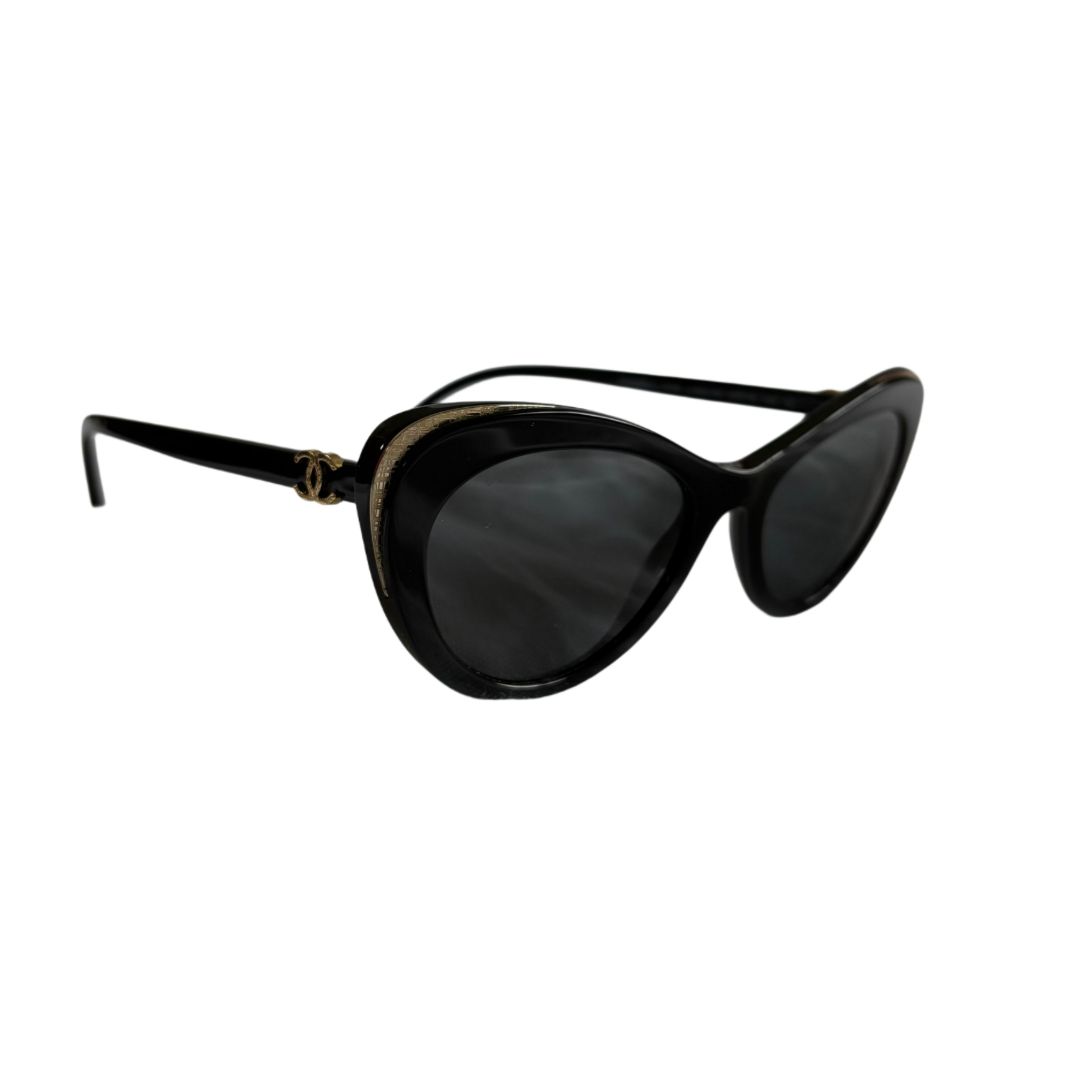 Chanel Black Cat Eye with Gold CC On Arms Sunglasses