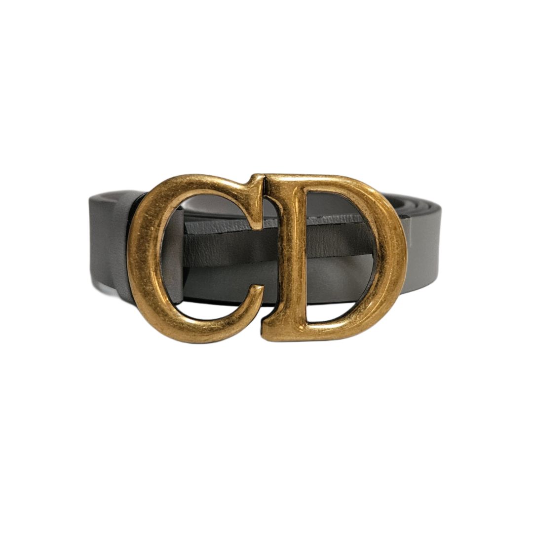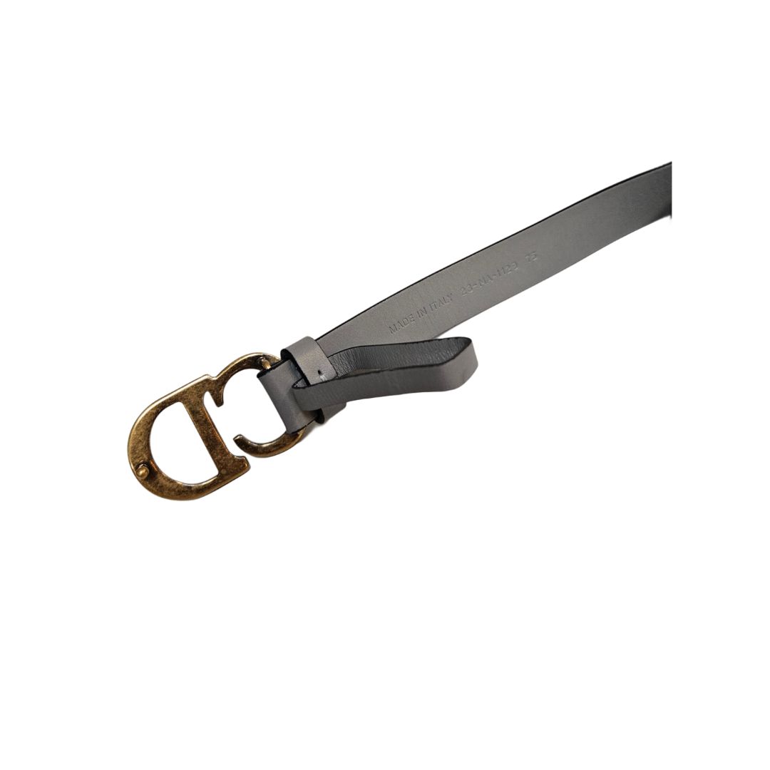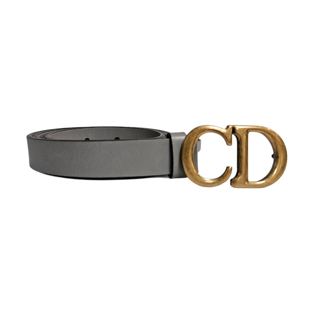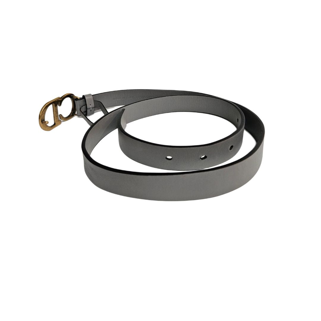 Christian Dior Grey Leather CD Logo Buckle Belt