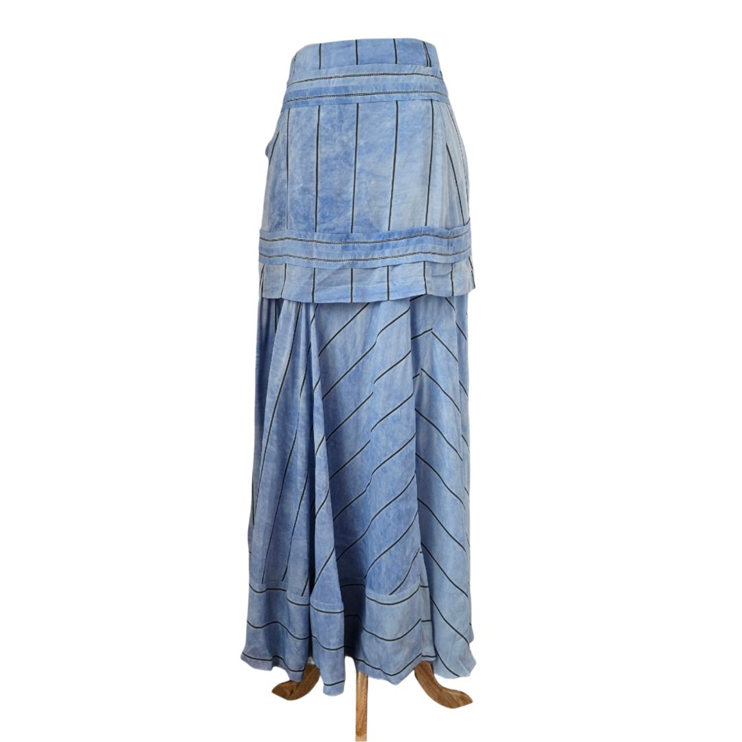 3.1 Phillip Lim Blue/Black Striped Belted Detail Skirt Midi Skirt