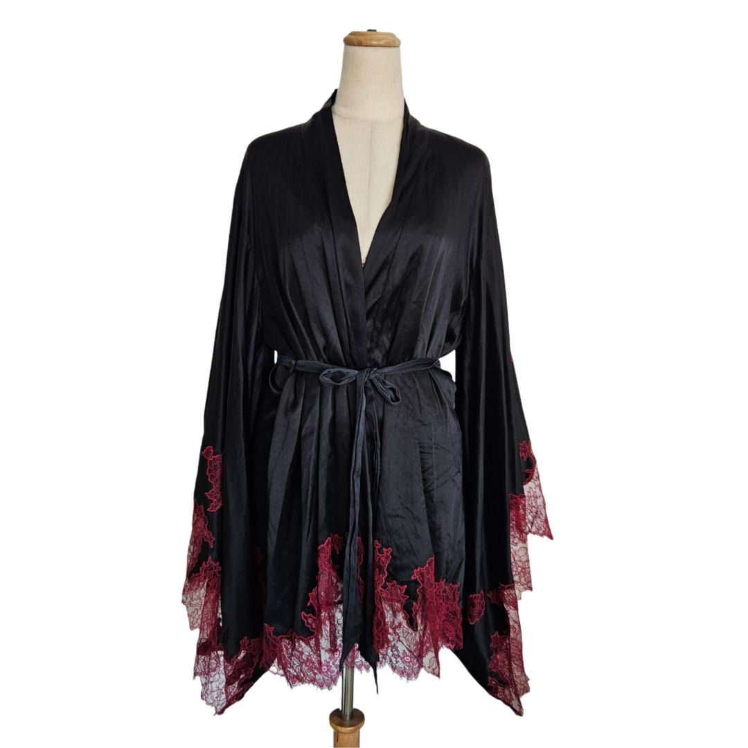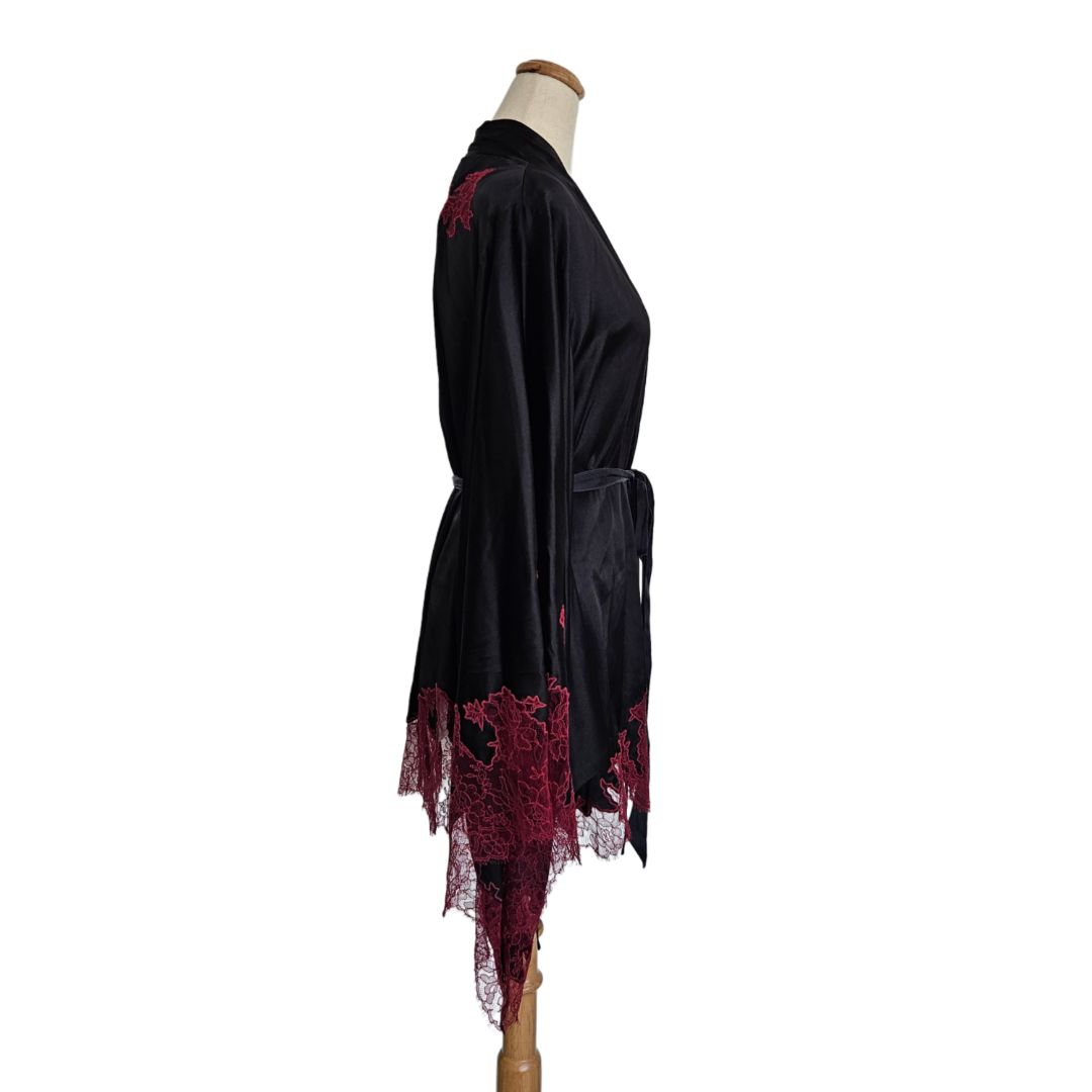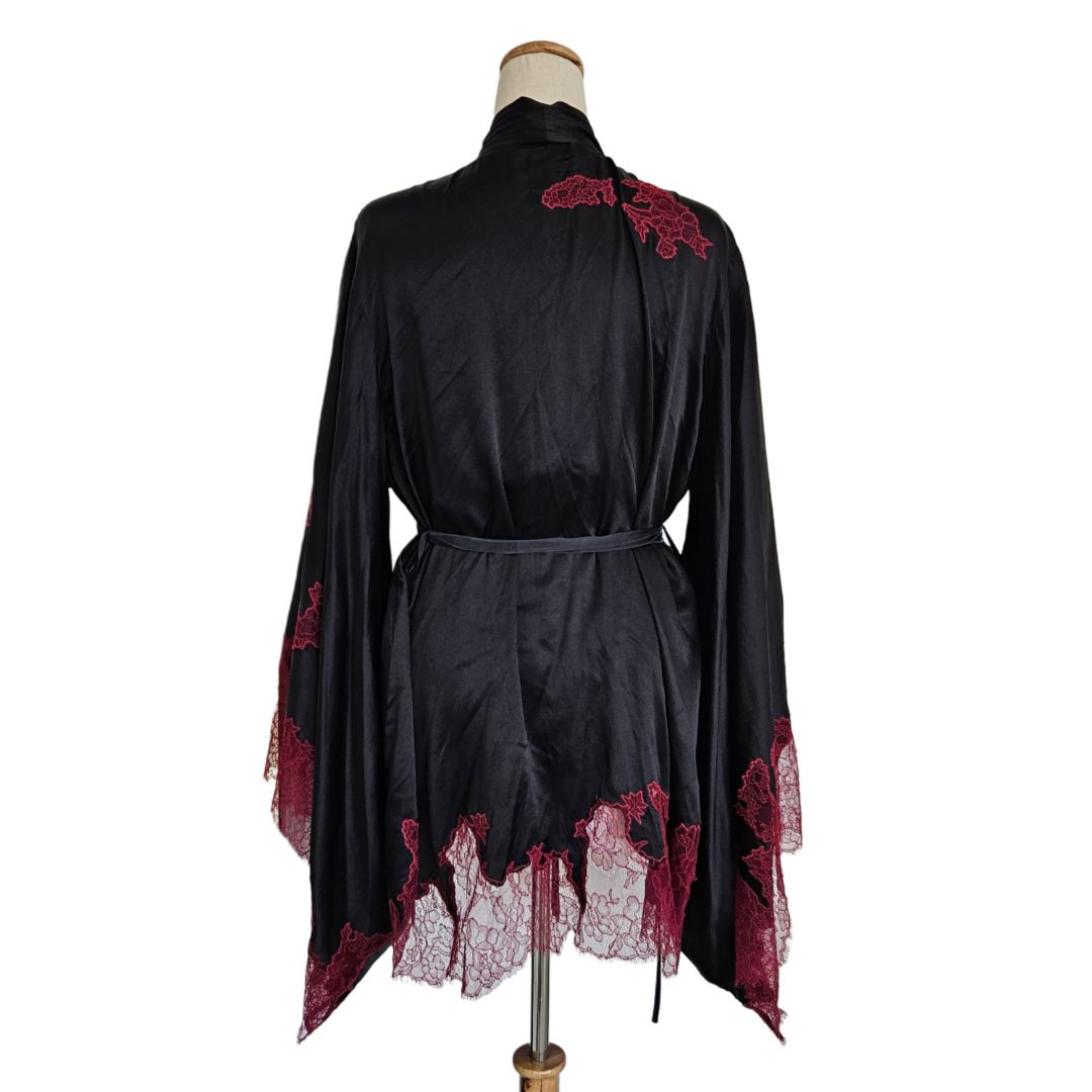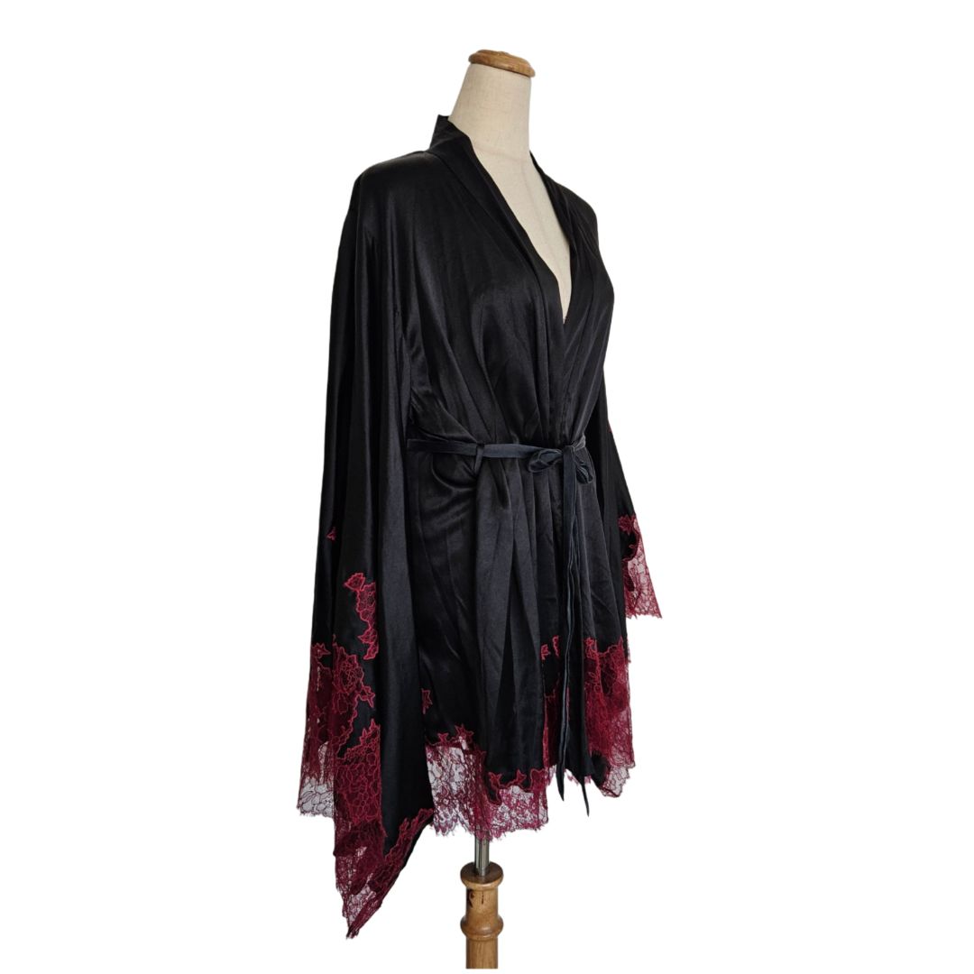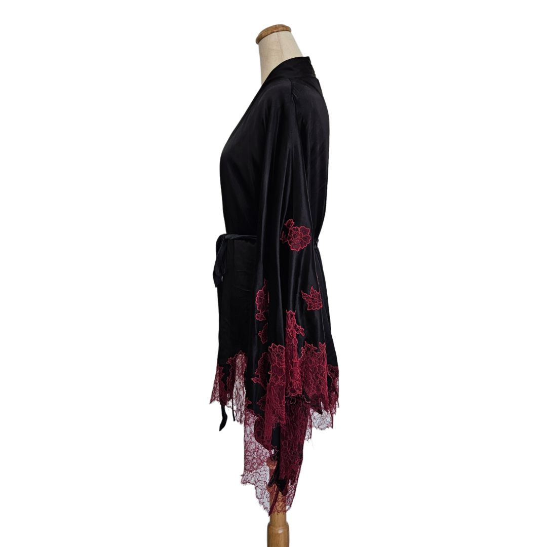 Agent Provocateur Black/Red With Lace Detail Satin Robe