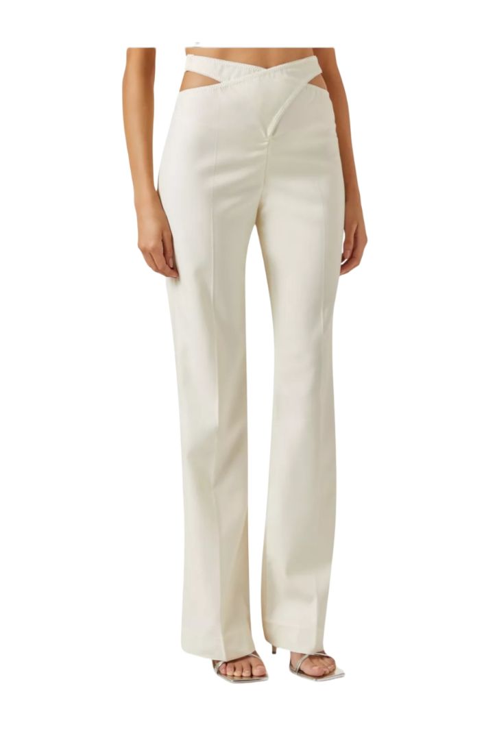 Anna October Nina Pants in Wool-blend, featuring Criss-cross waistband, cut out detail, back welt pockets