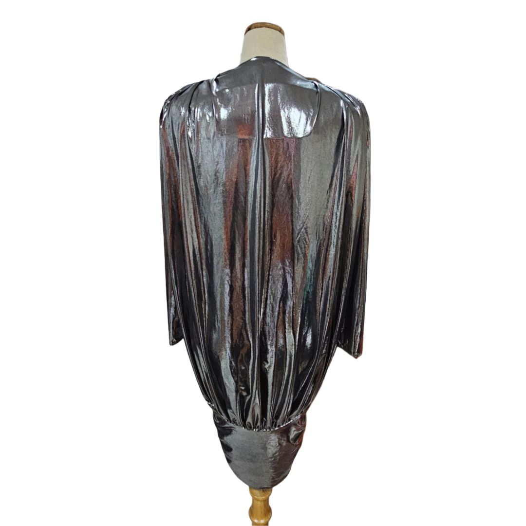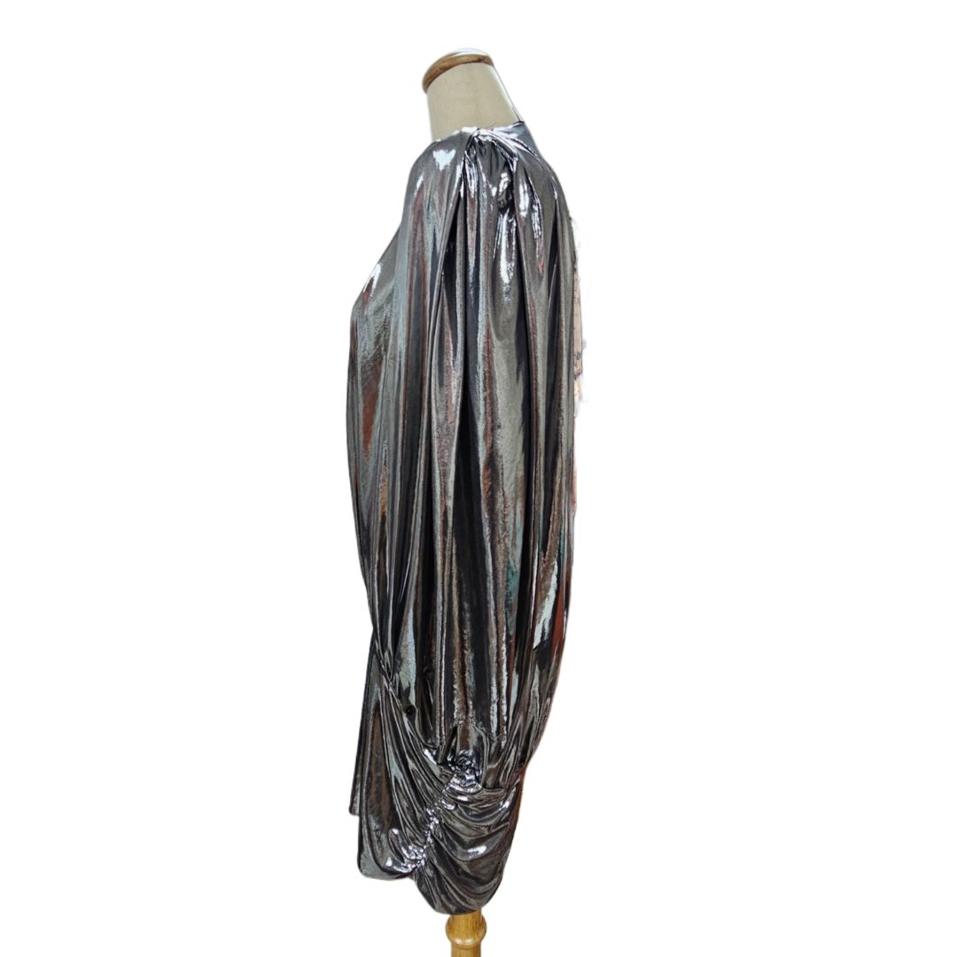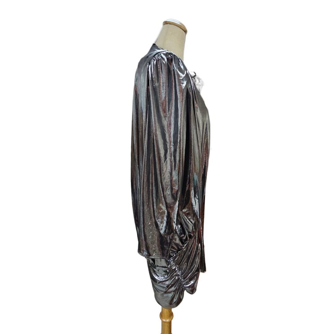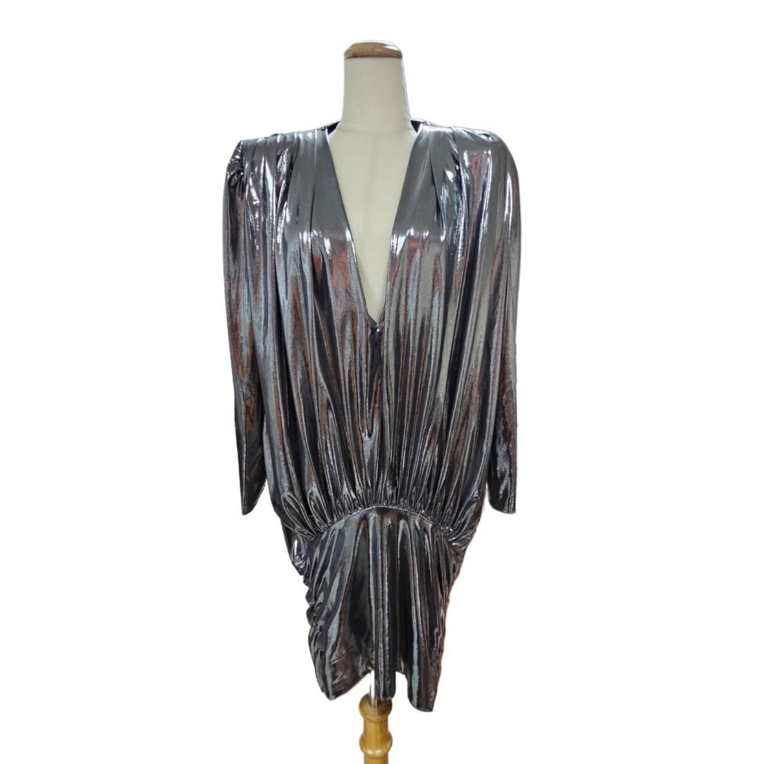 Attico Metallic Silver Long Sleeve V-Neck Mini Dress