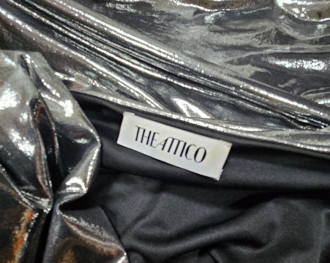 The Attico Metallic Silver Long Sleeve V-Neck Mini Dress