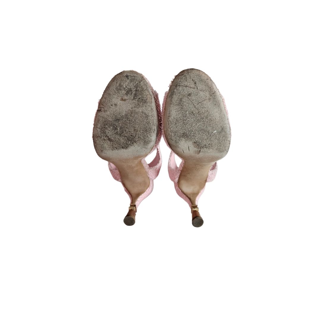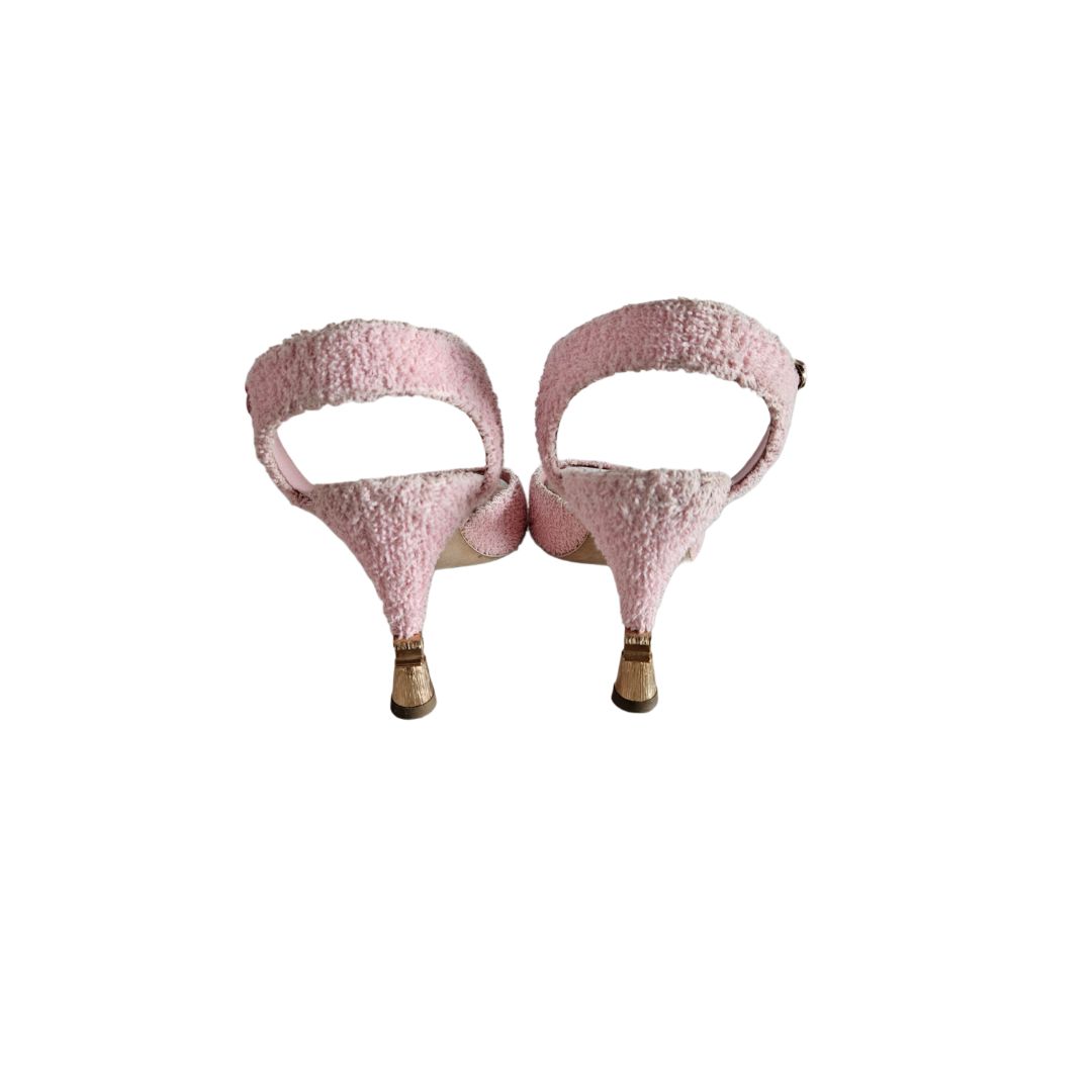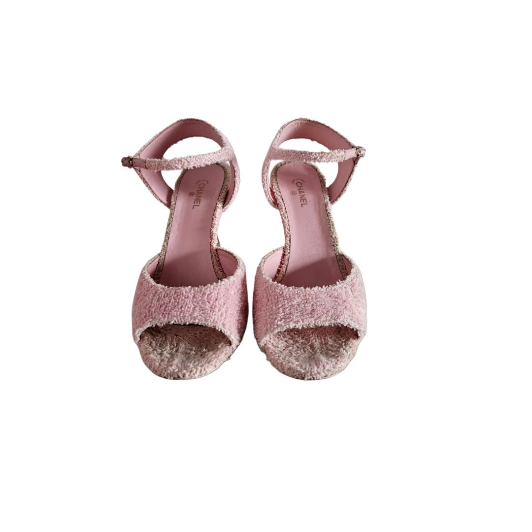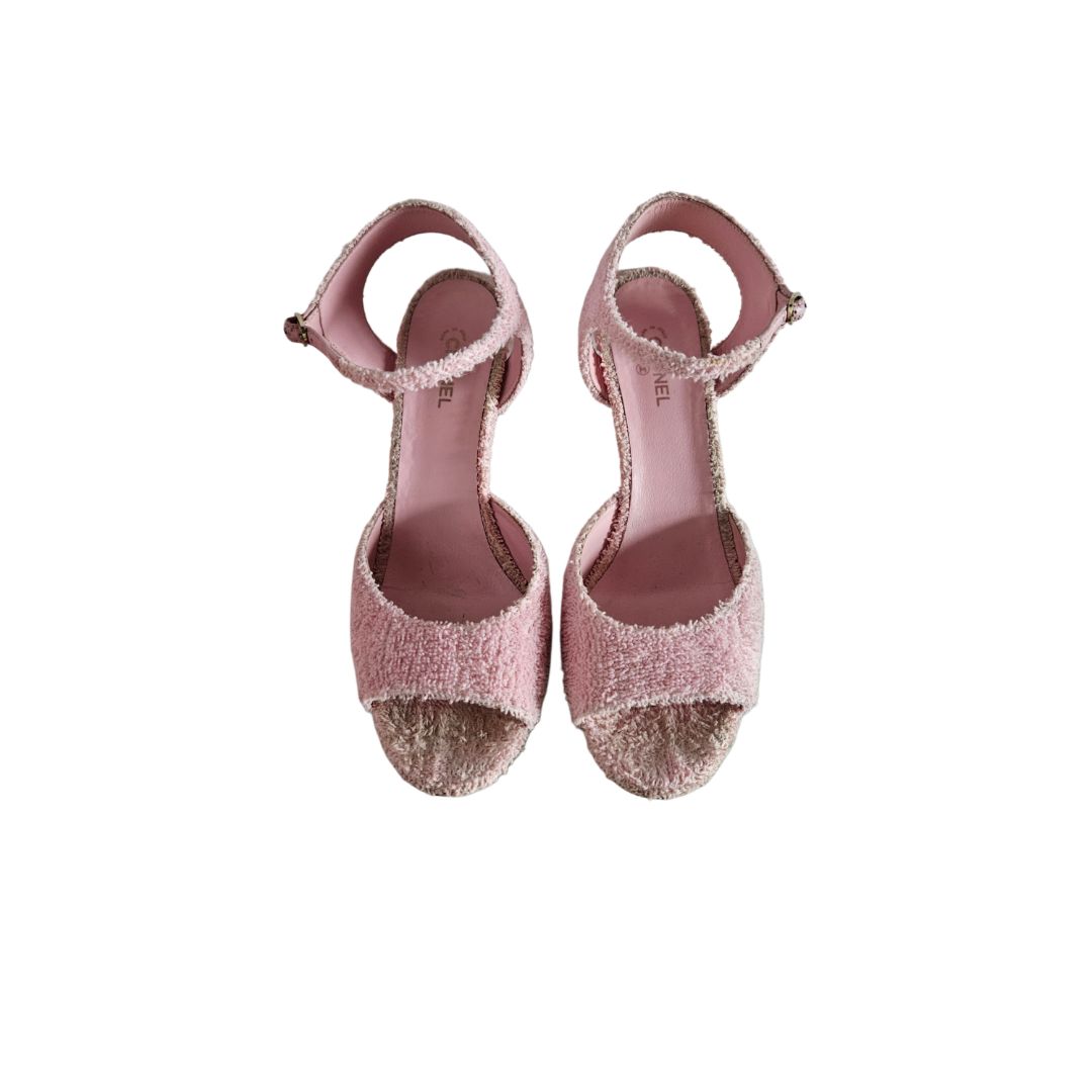 Chanel Pink Terry Cloth CC Heels Ankle Strap Sandal, Size 41C