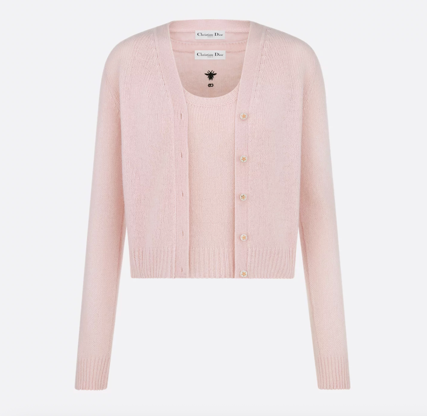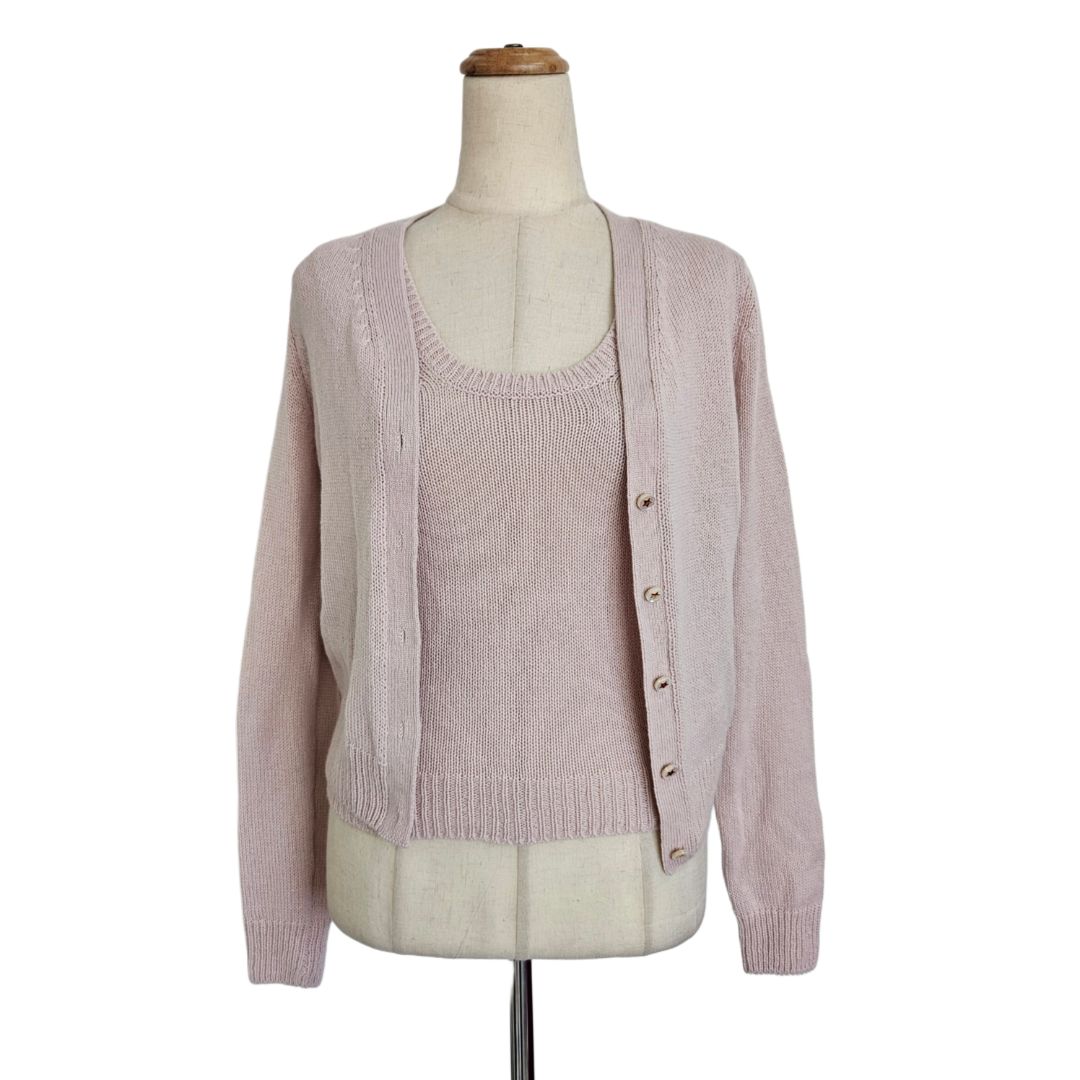 Christian Dior Dusty Pink Twinset Cashmere Knit Sleeveless Top With Matching Cardigan