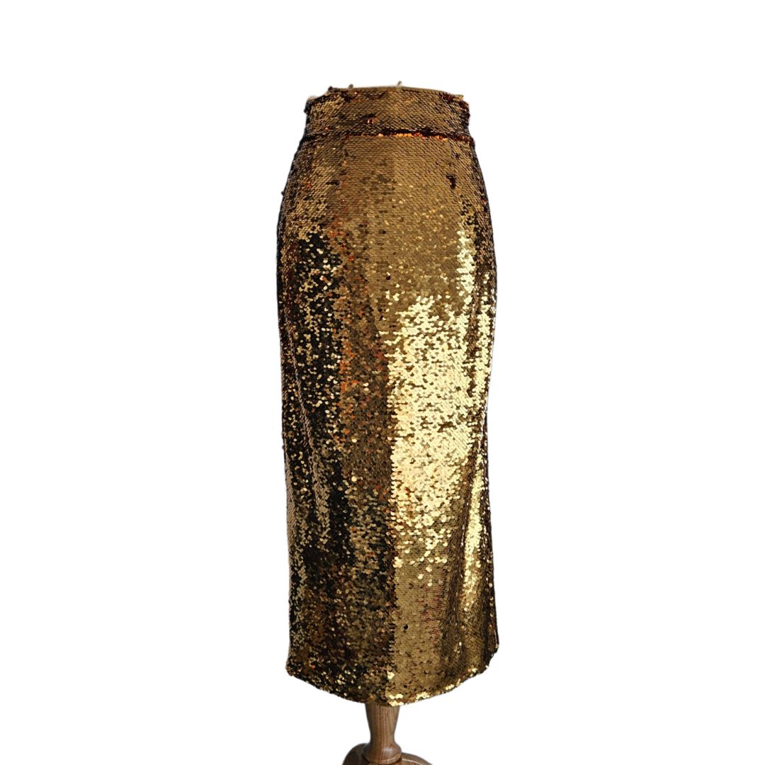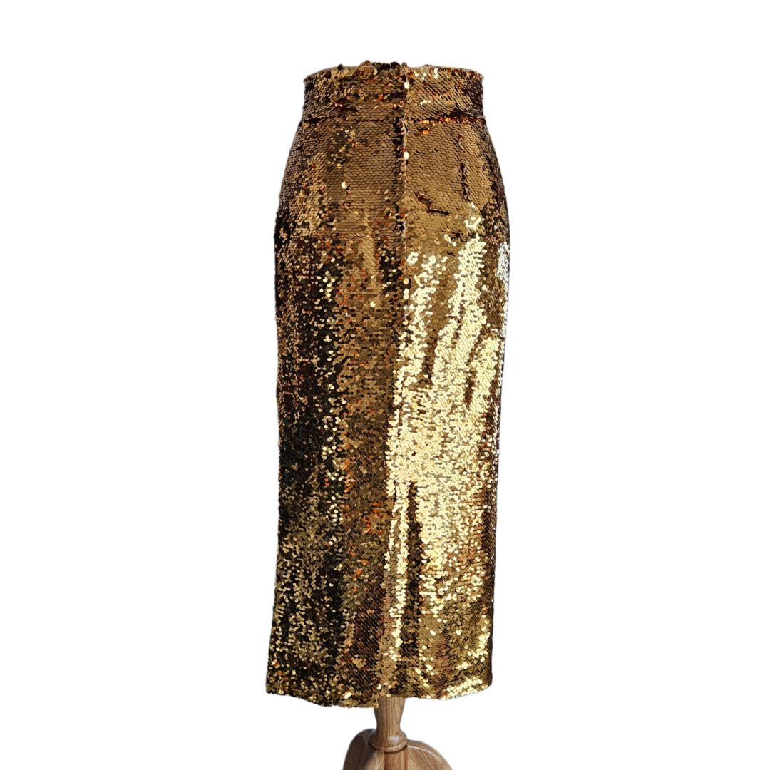 Dolce & Gabbana Gold Sequins Embellished Long Skirt
