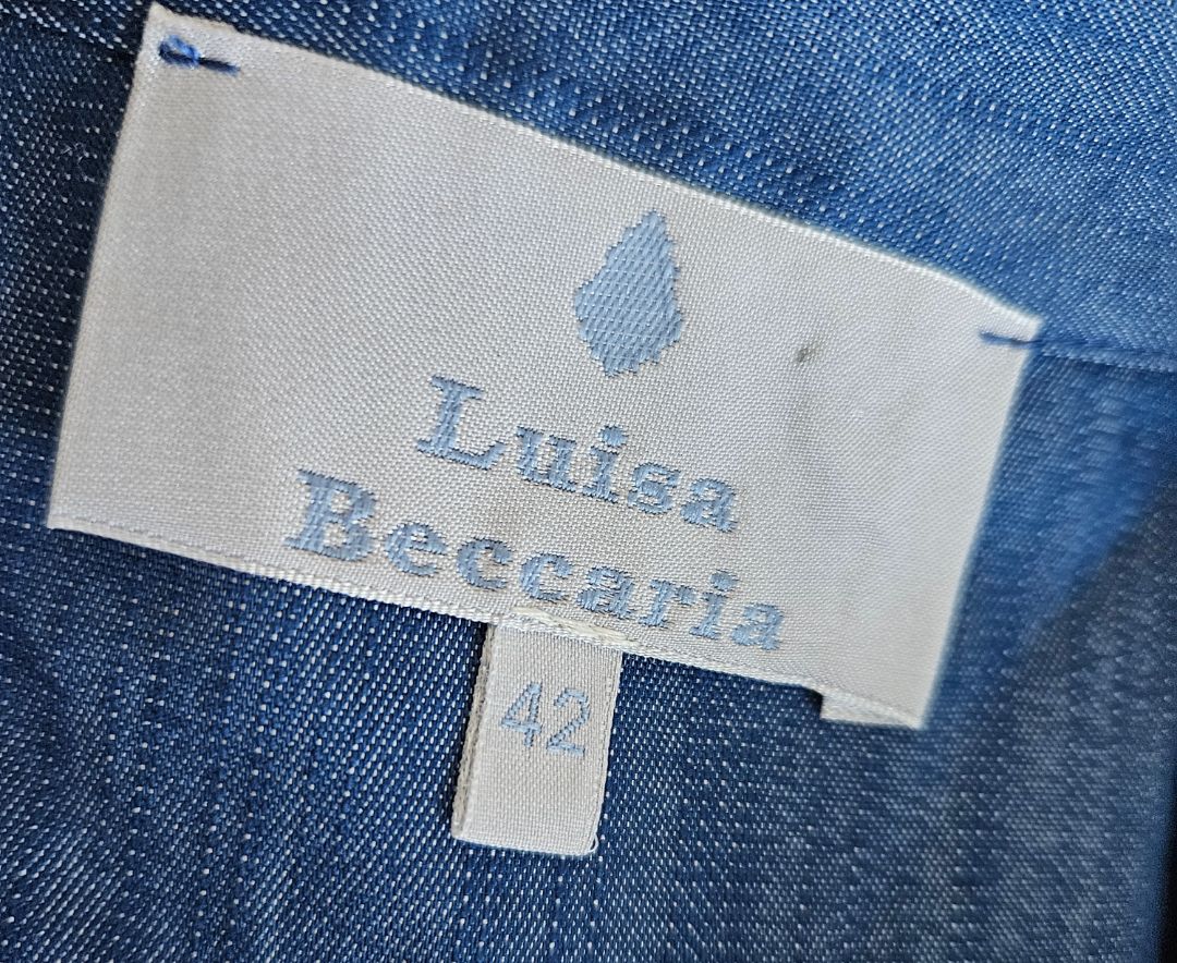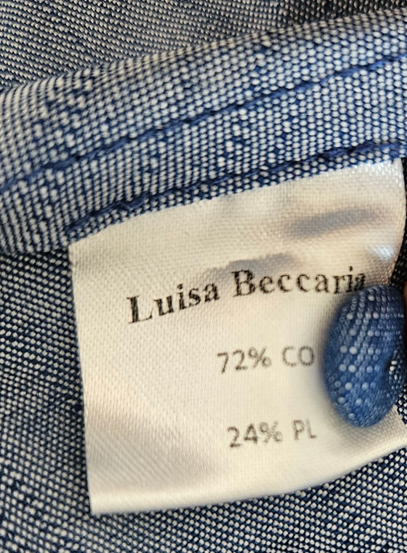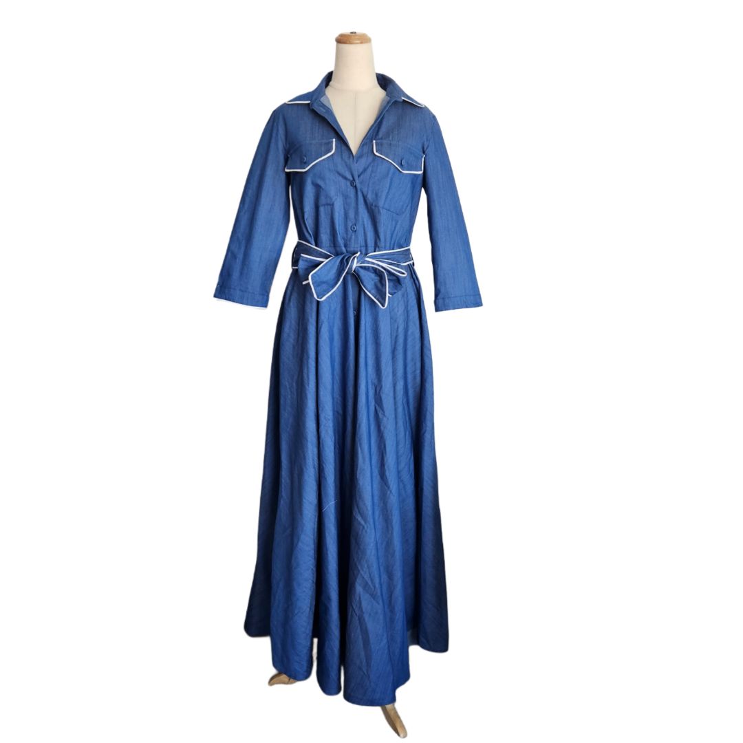 Luisa Beccaria Blue Denim With White Trim Maxi Belted Dress