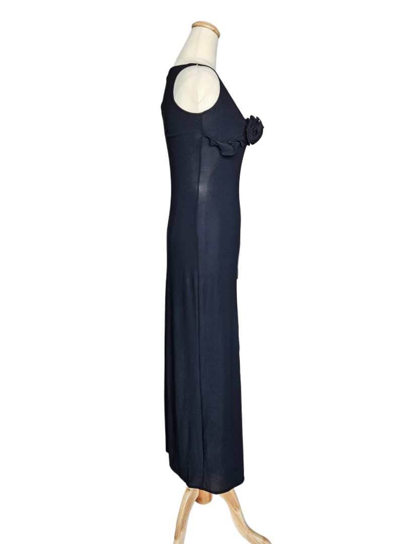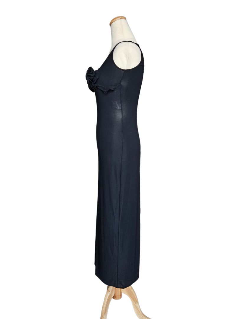 Magda Butrym Black Sleeveless Floral Applique Bodycon Long Dress