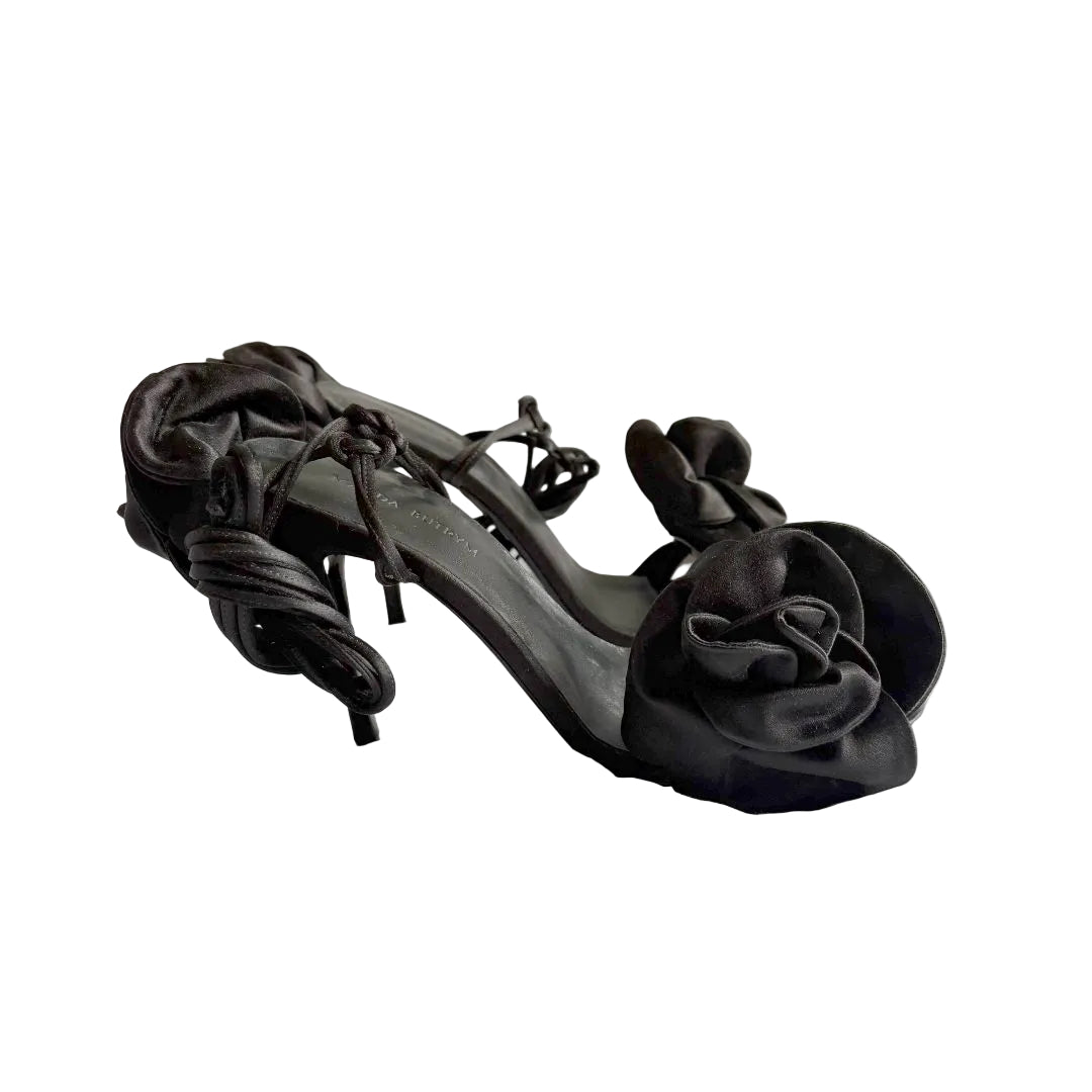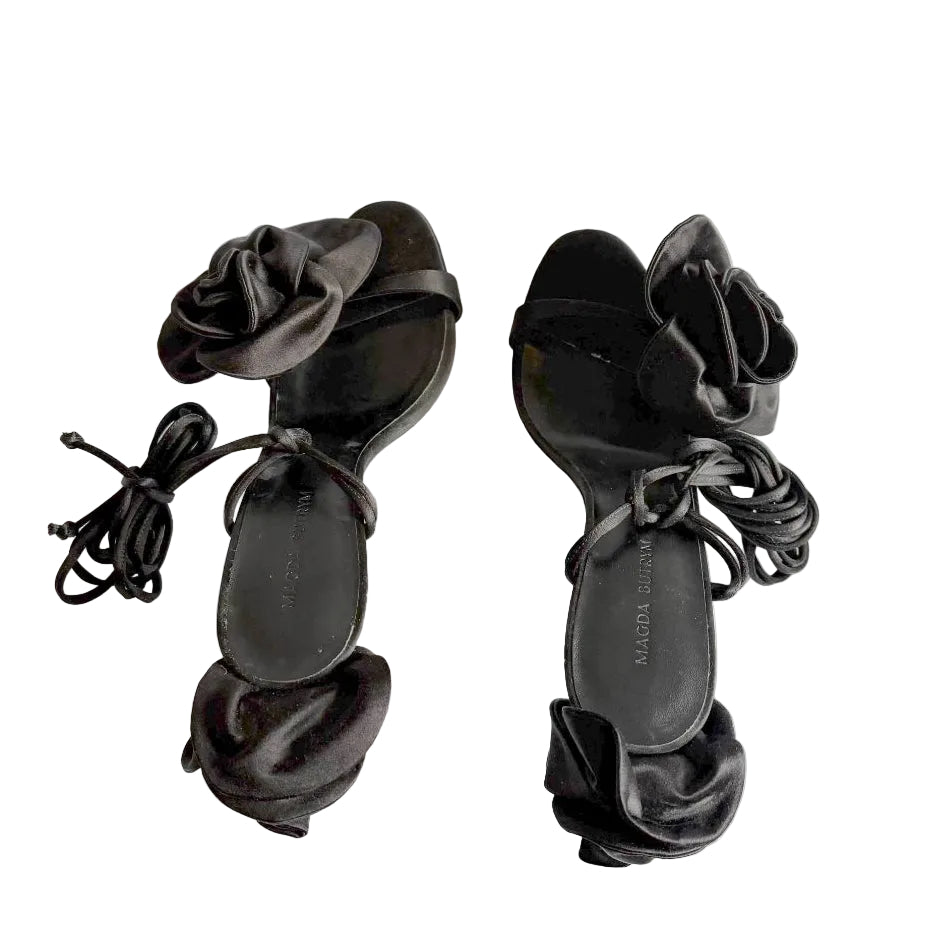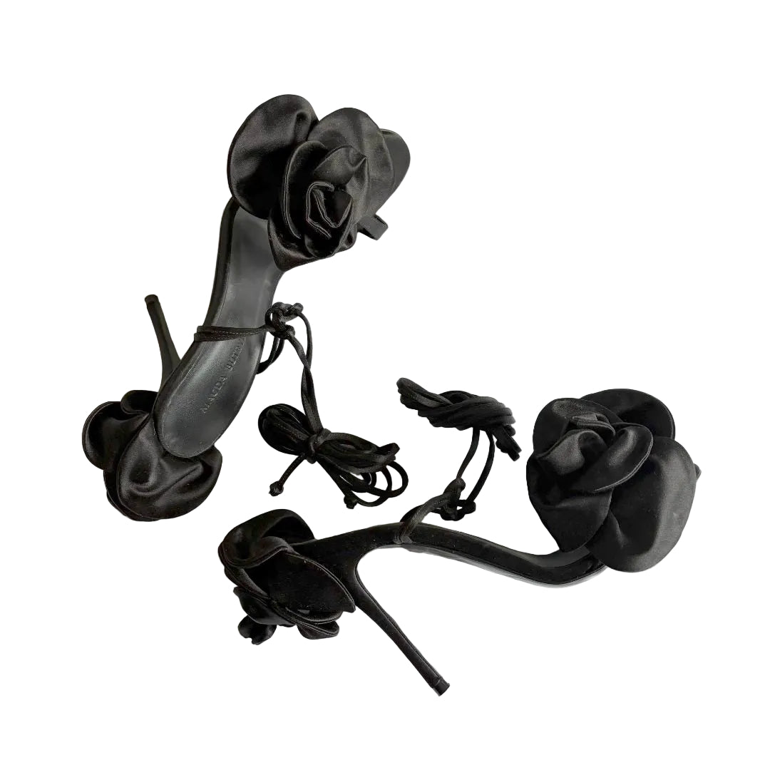 Magda Butrym Double Flower 90 Strappy Sandals in Satin black, size 38