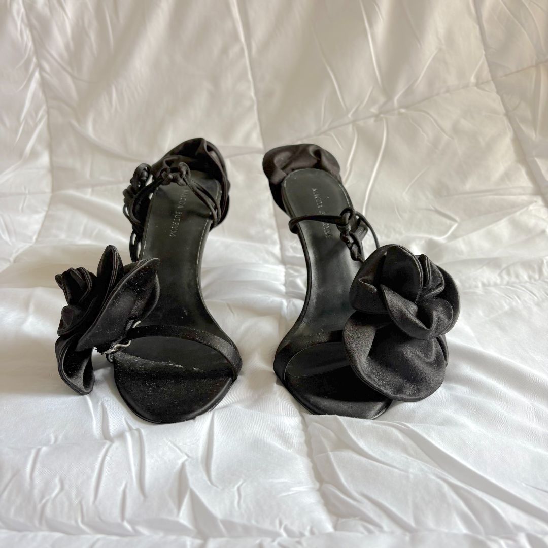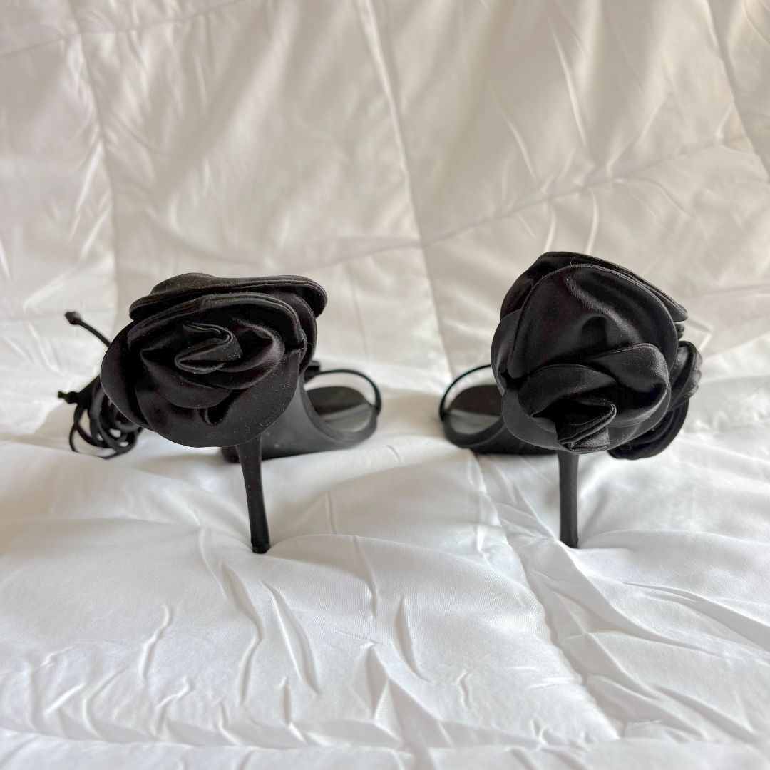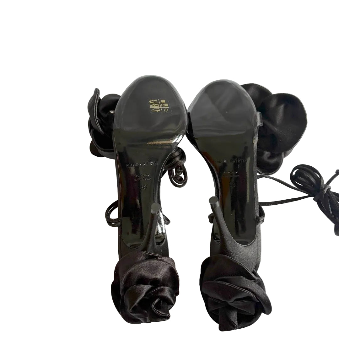 Magda Butrym Double Flower 90 Strappy Sandals in Satin black, size 38