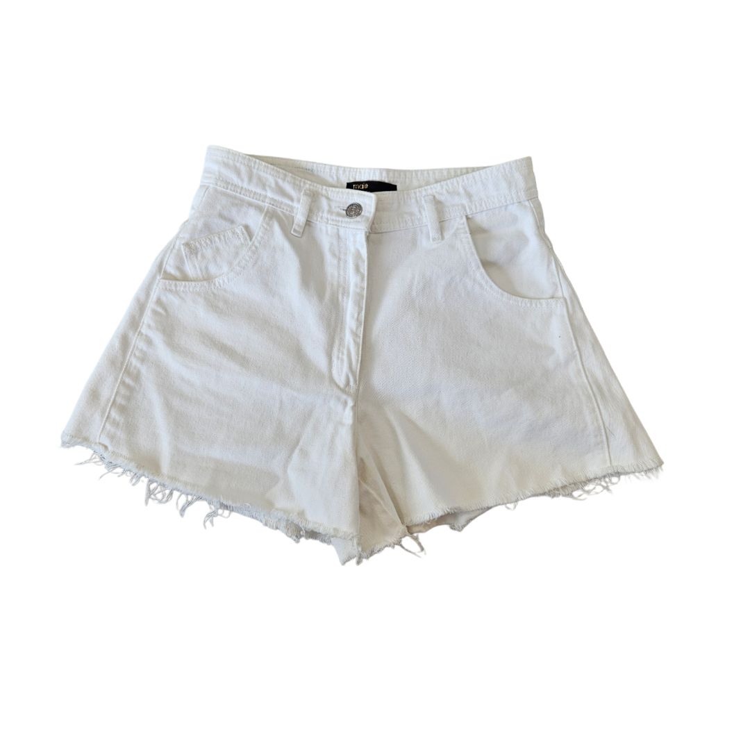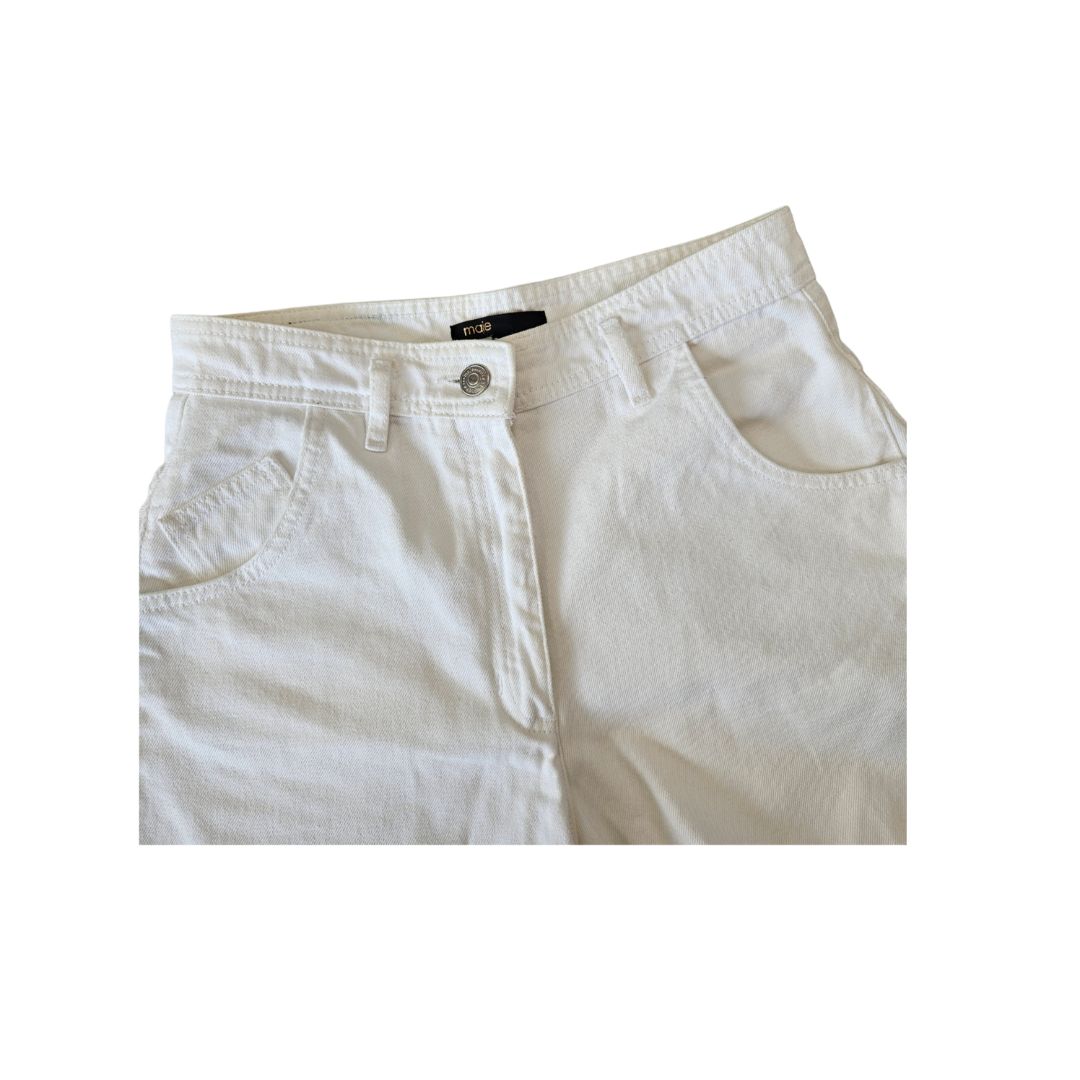 Maje Denim White Fringe Short