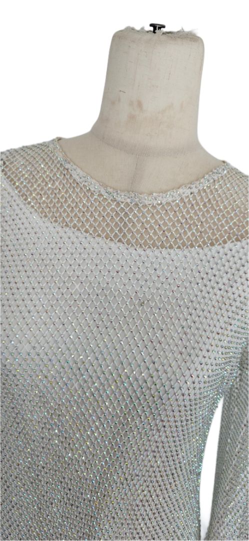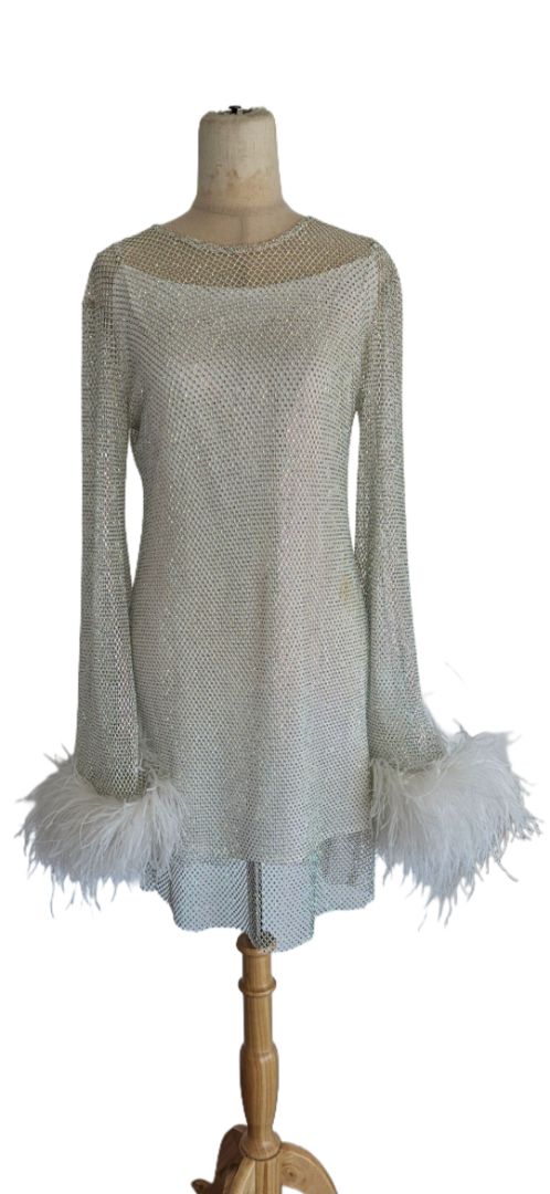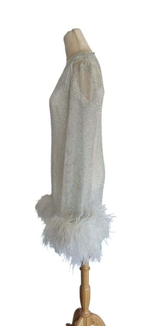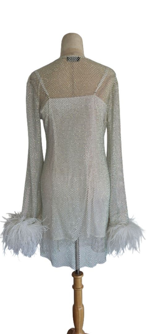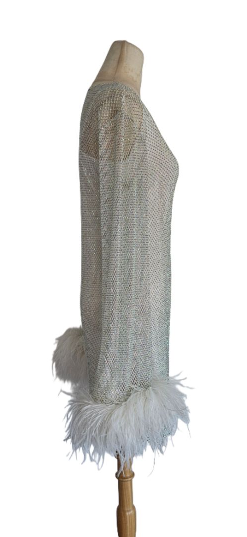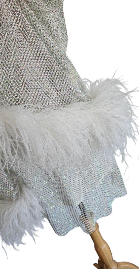 Miron Silver Crystal Embellished Dress with Feathers with white slip dress