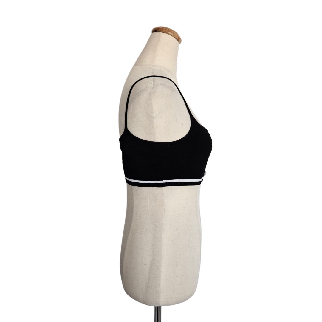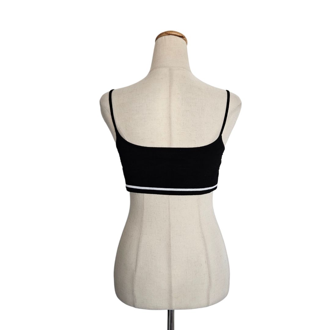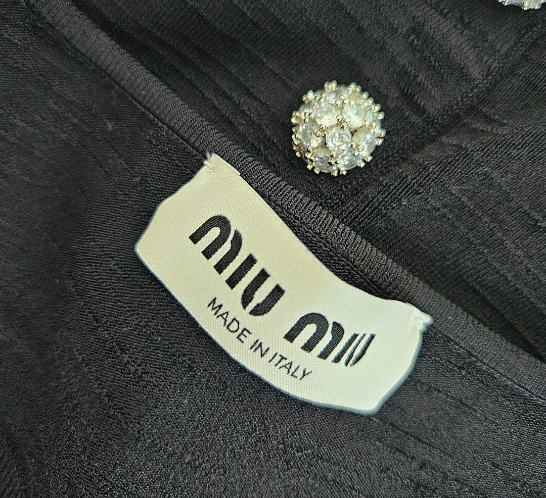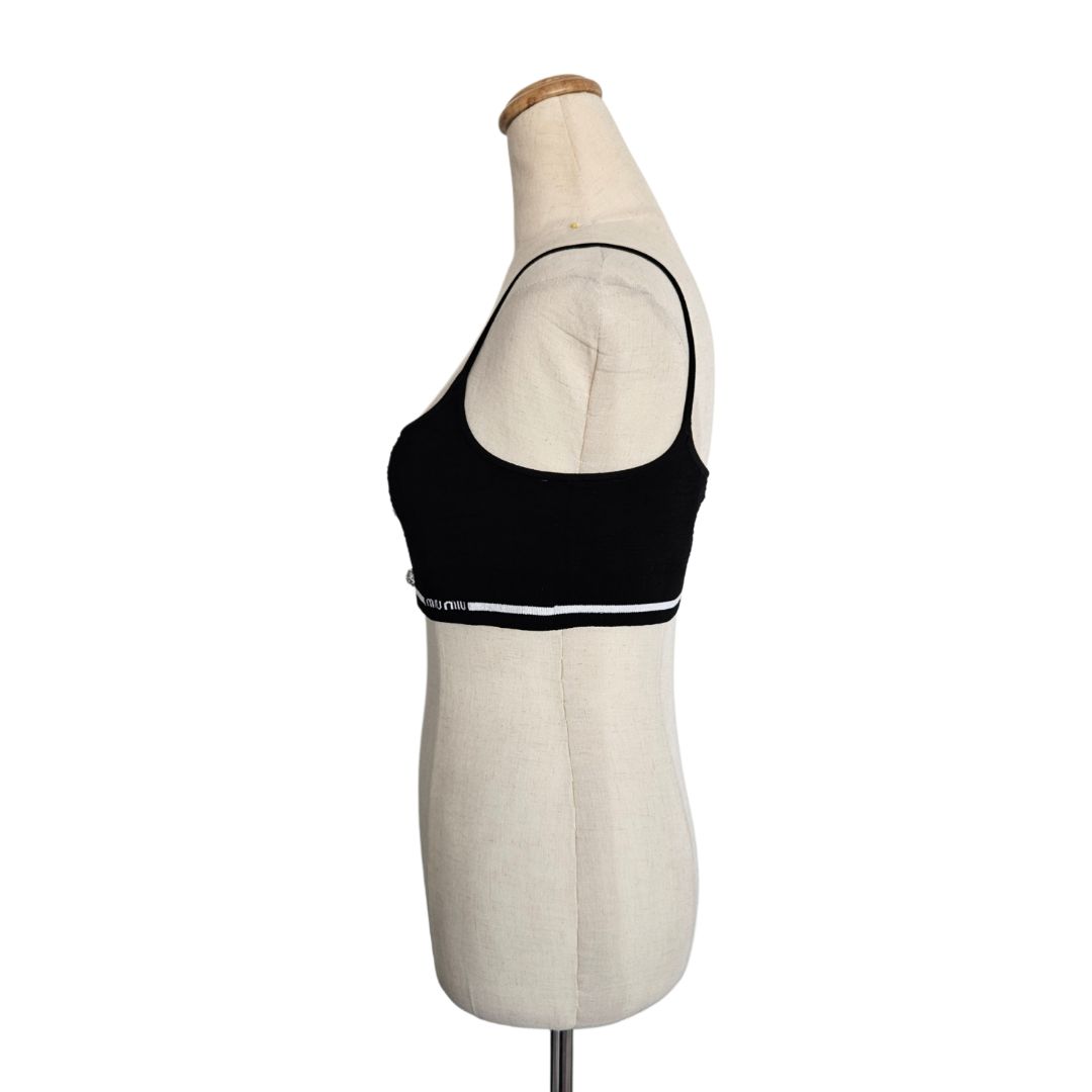 Miu Miu Black Crystal Embellished Button Stretch Knit Crop Top