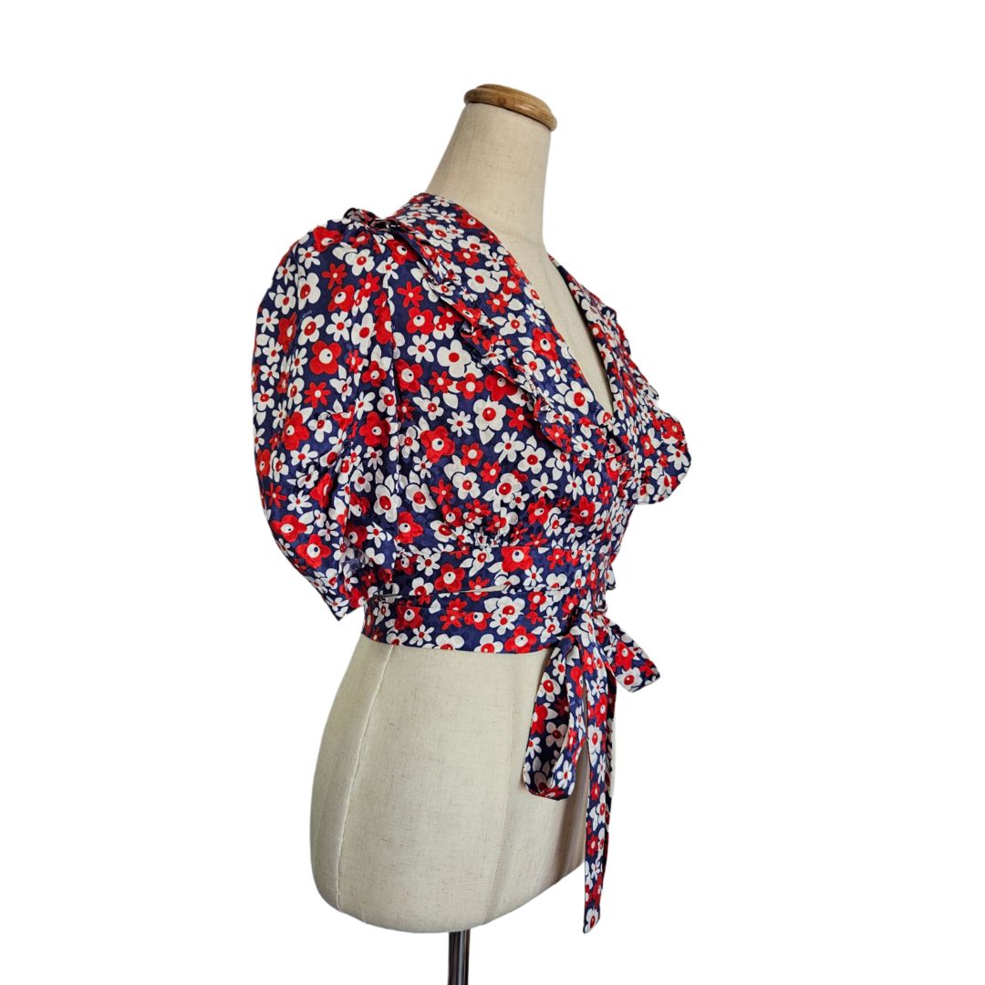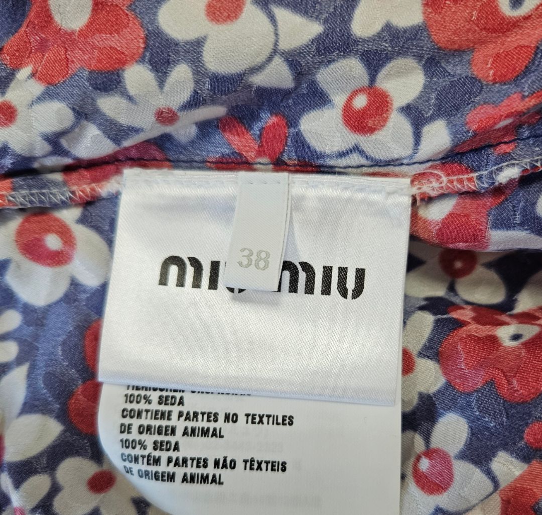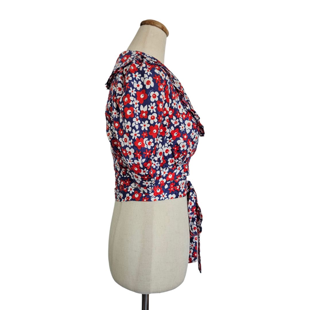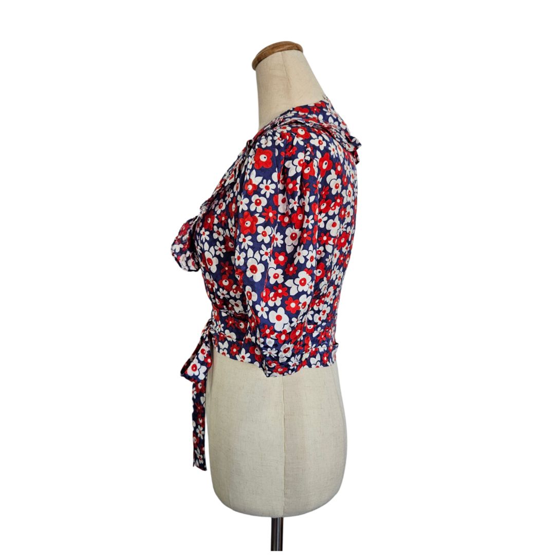 Miu Miu Tricolor Floral Print Tie Cropped Top