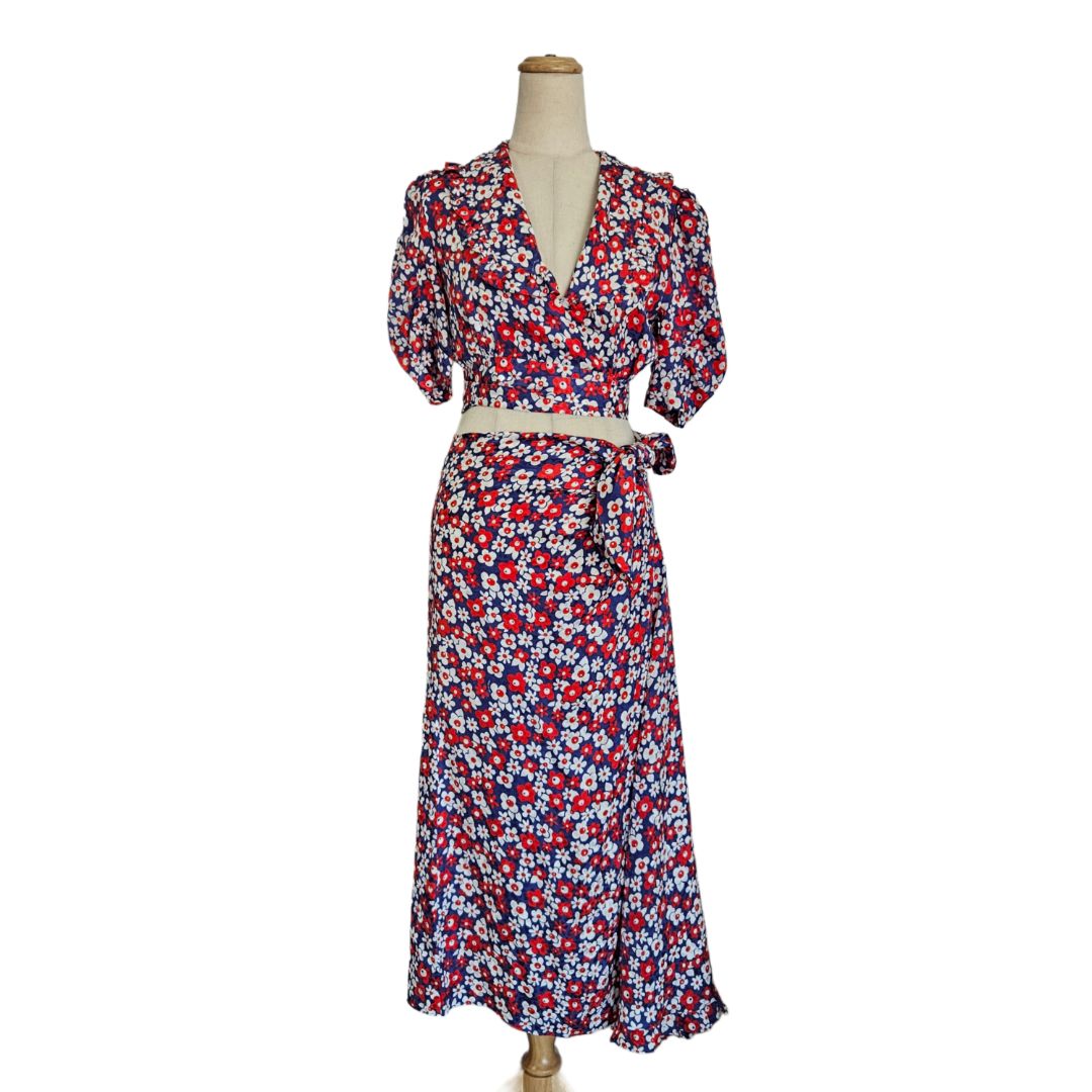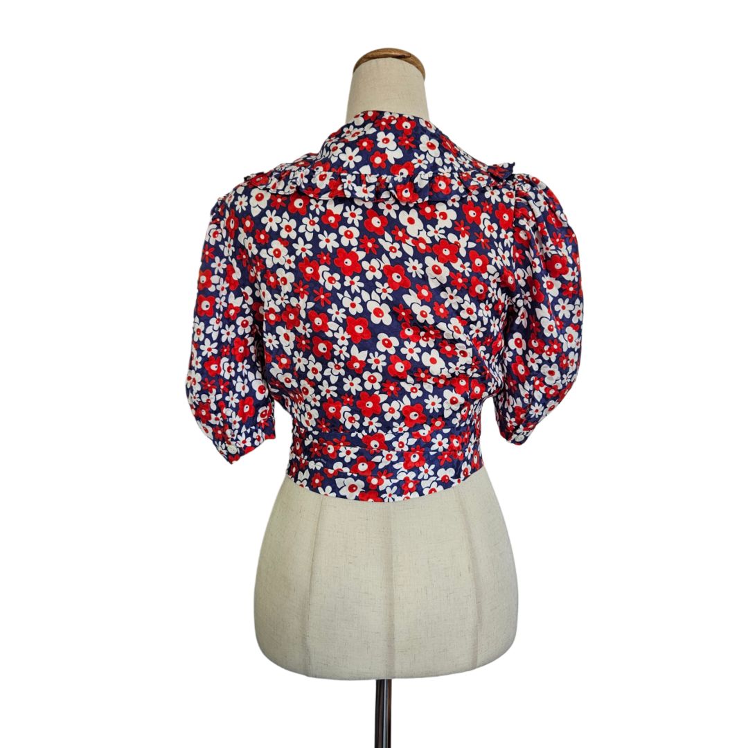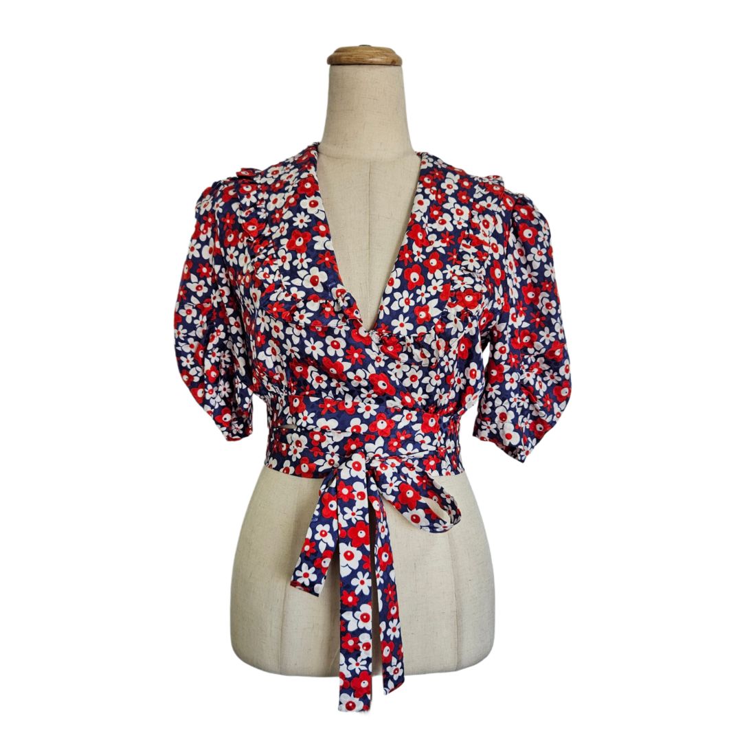 Miu Miu Tricolor Floral Print Tie Cropped Top