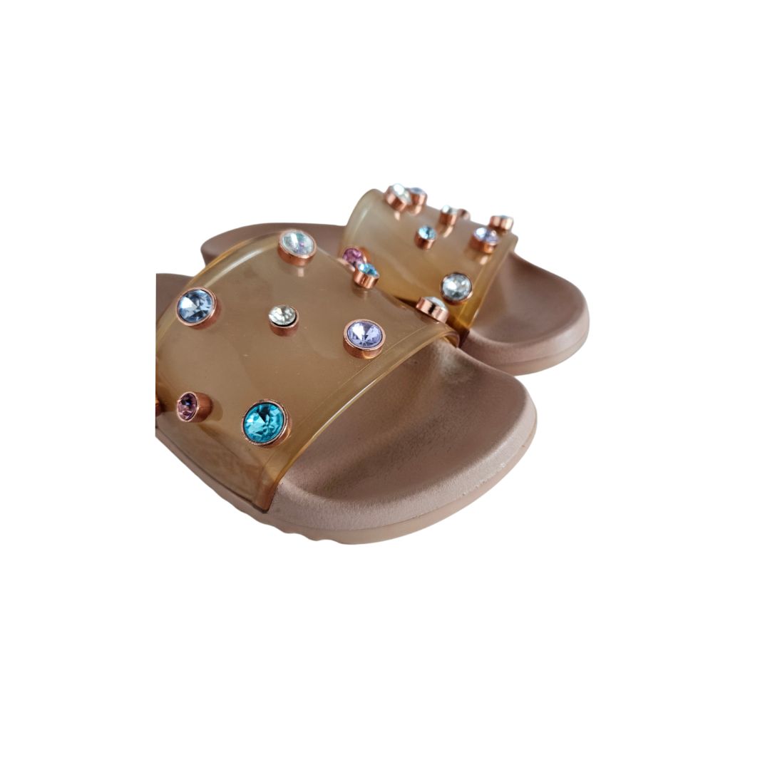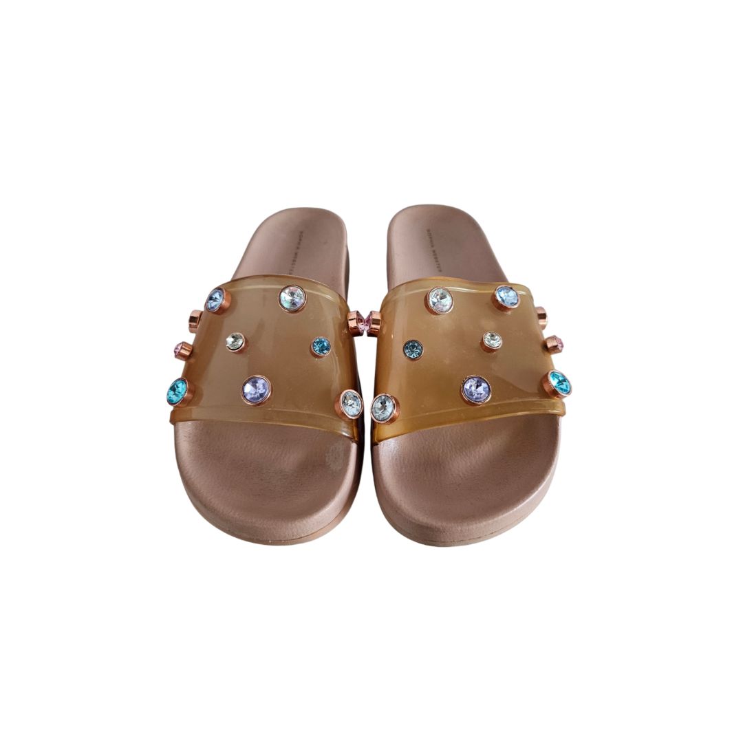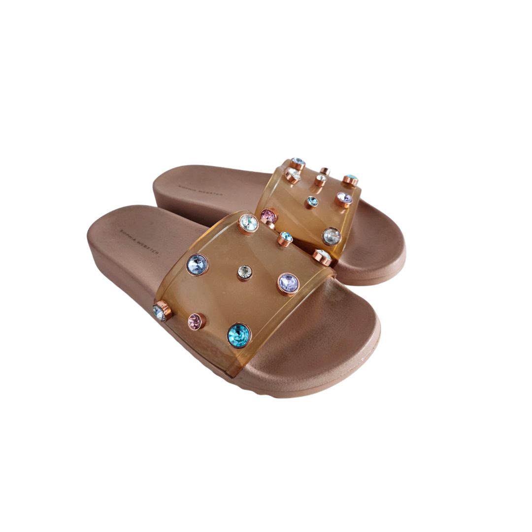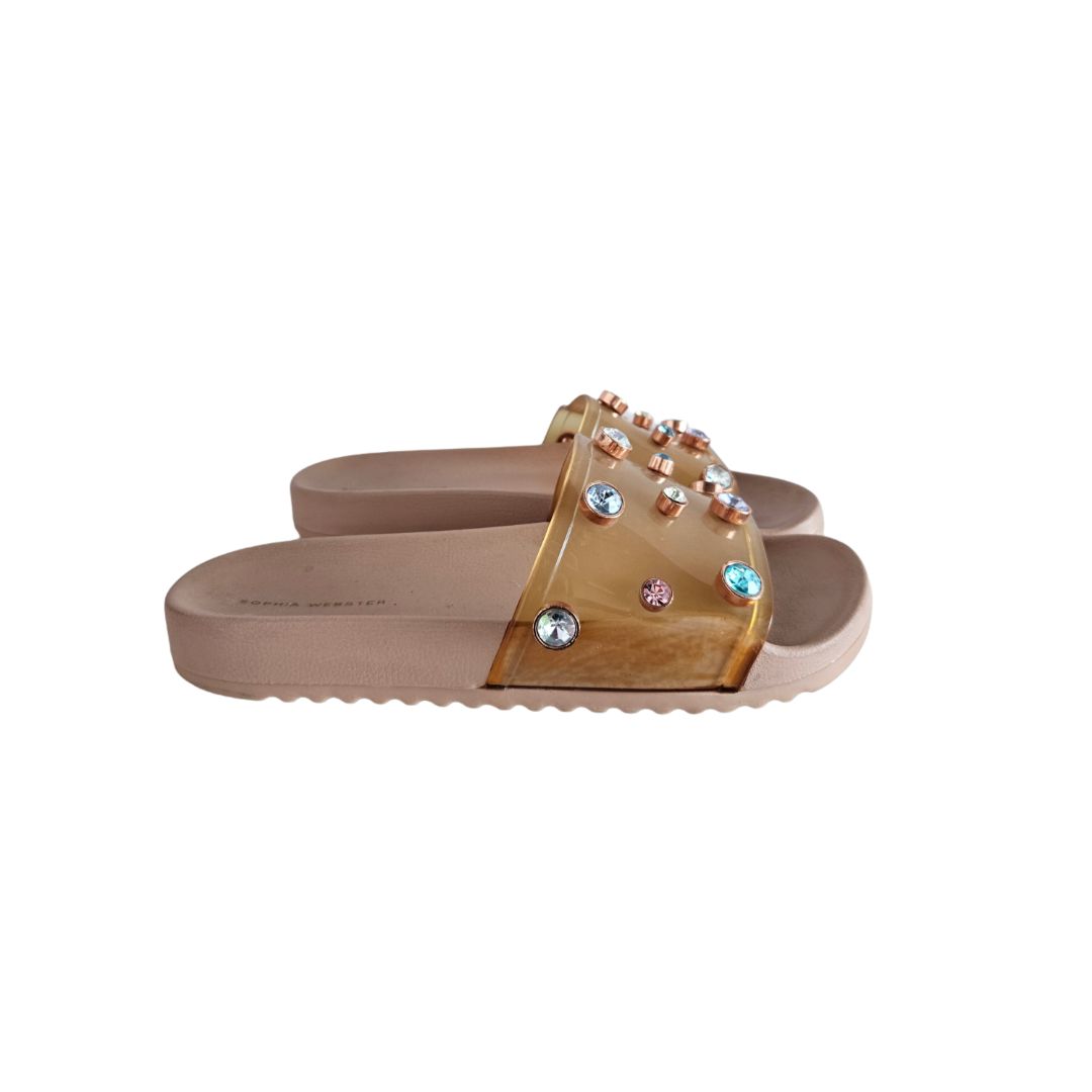 Sophia Webster Nude Dina Plexi Jewel Slide, Size 40