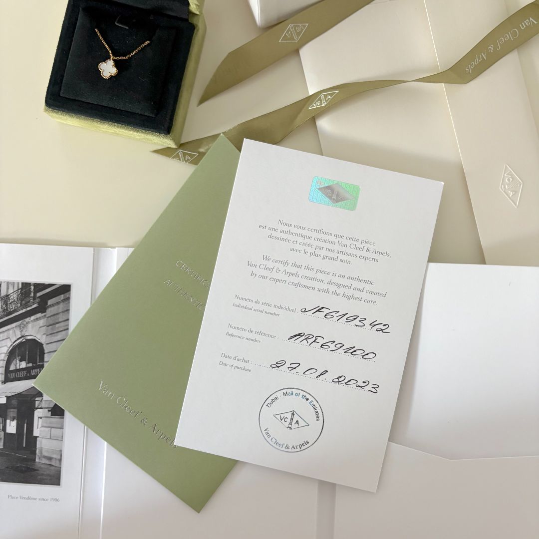 Van Cleef & Arpels Sweet Alhambra Mother of Pearl 18K Yellow Gold Necklace (w certificate)