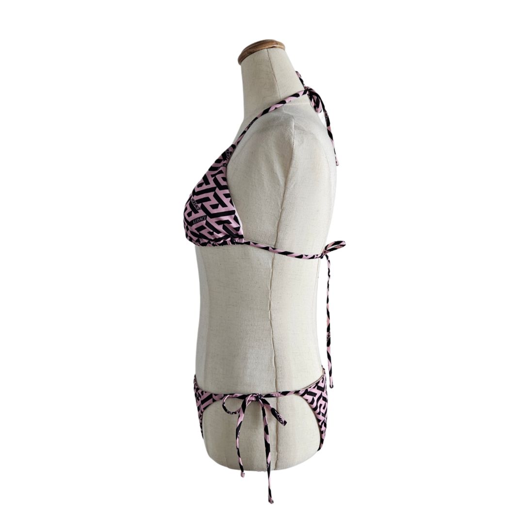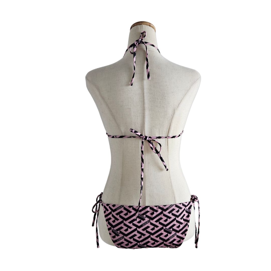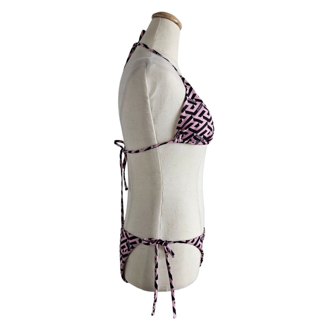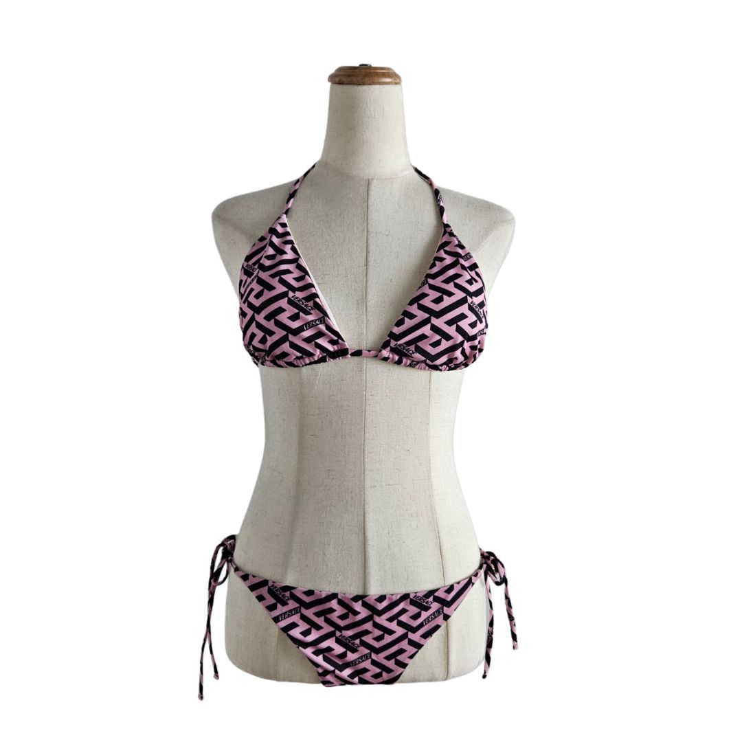 Versace Pink/Black Logo Print Two Piece Swimsuit