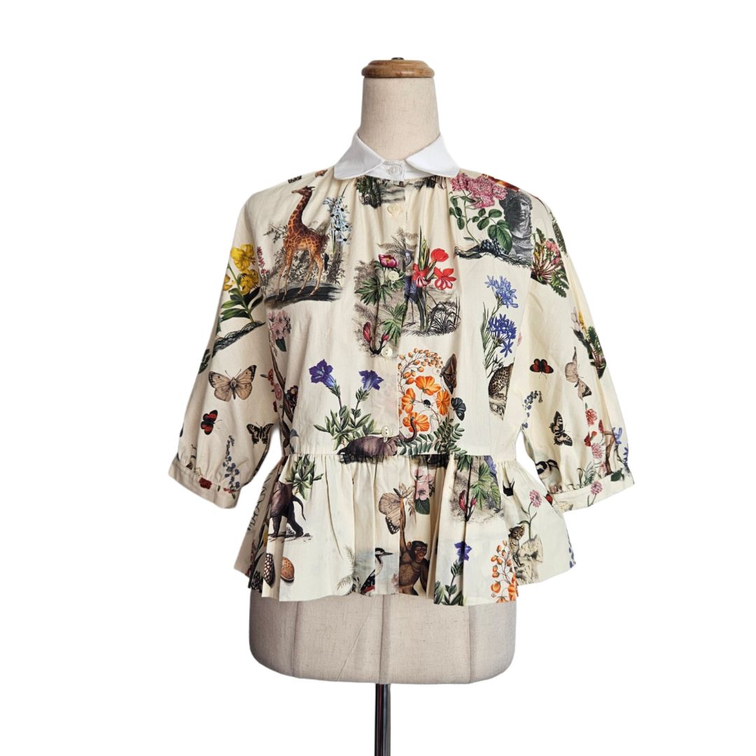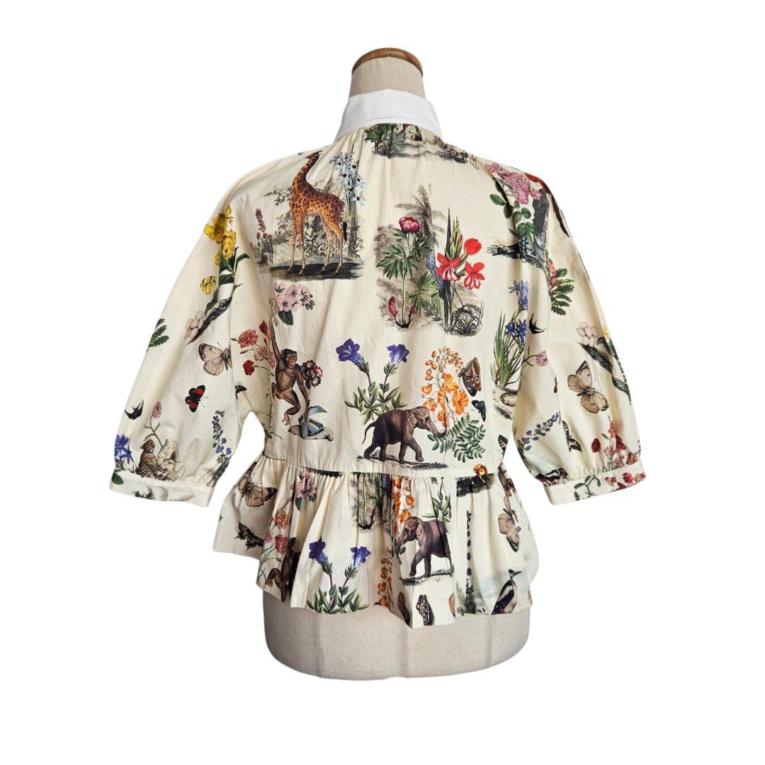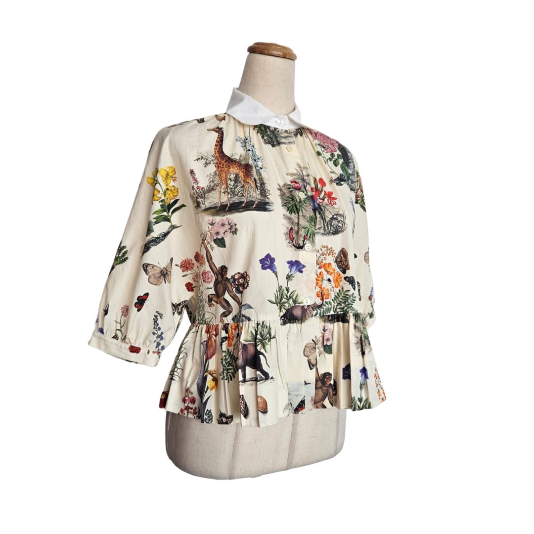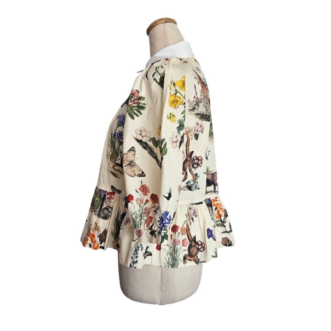 Vivetta Multicolor Floral & Animal Print Pleated Crop Shirt