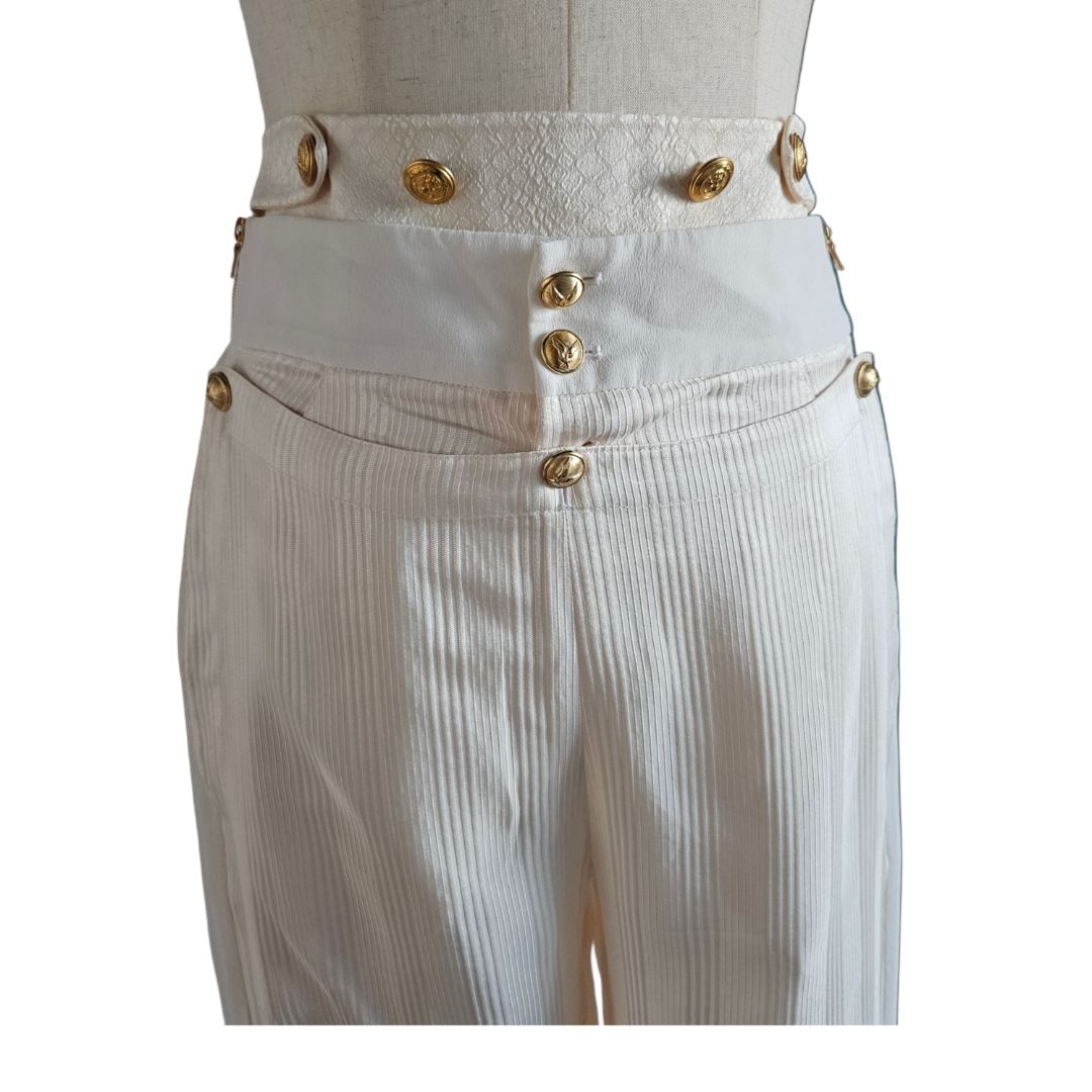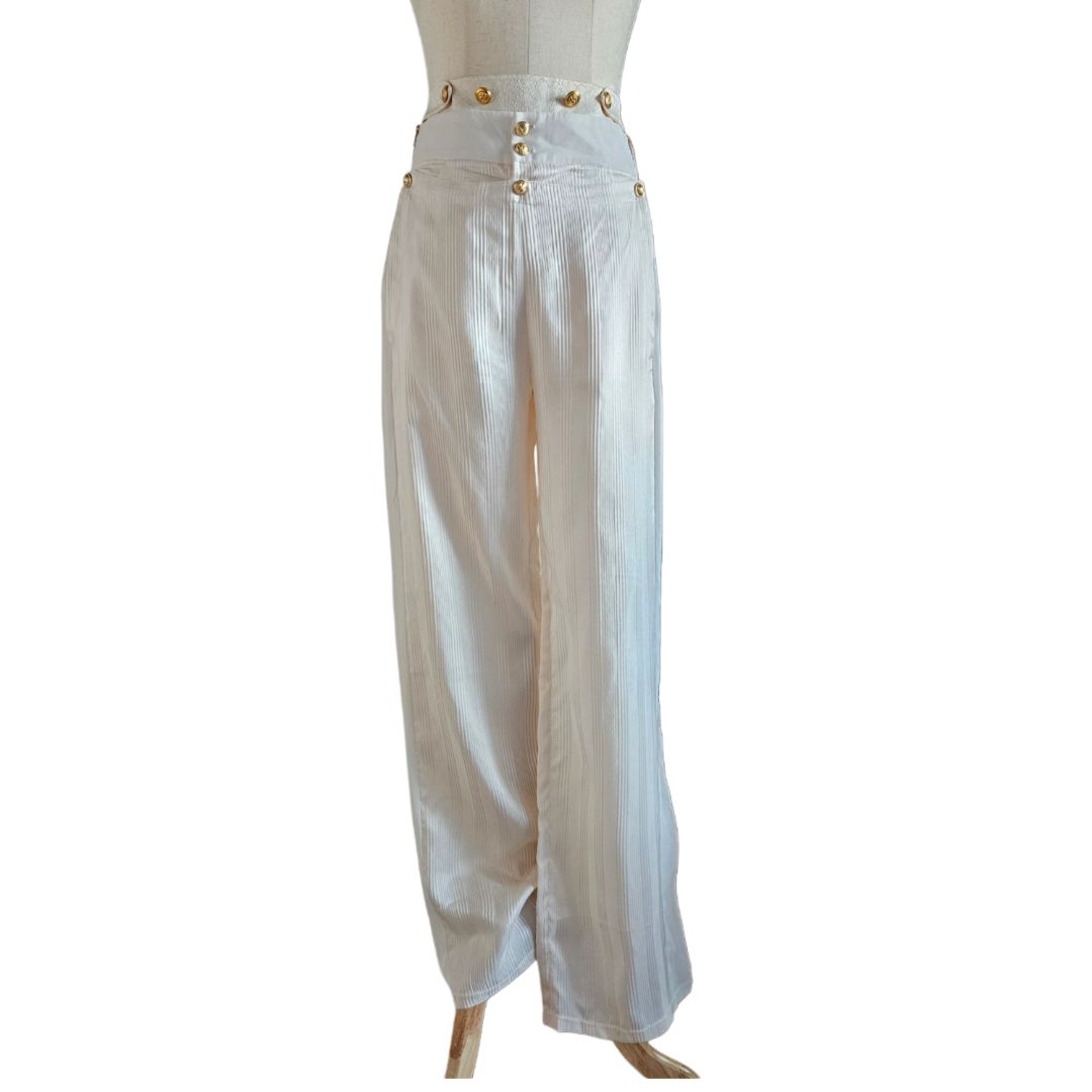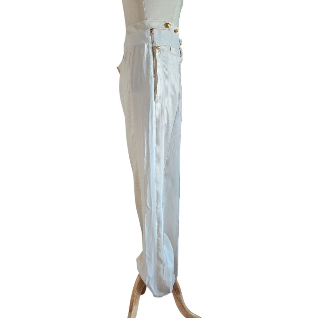 Balenciaga Cream Striped Buttons Zip Side Wide Leg Trouser
