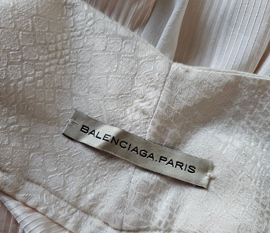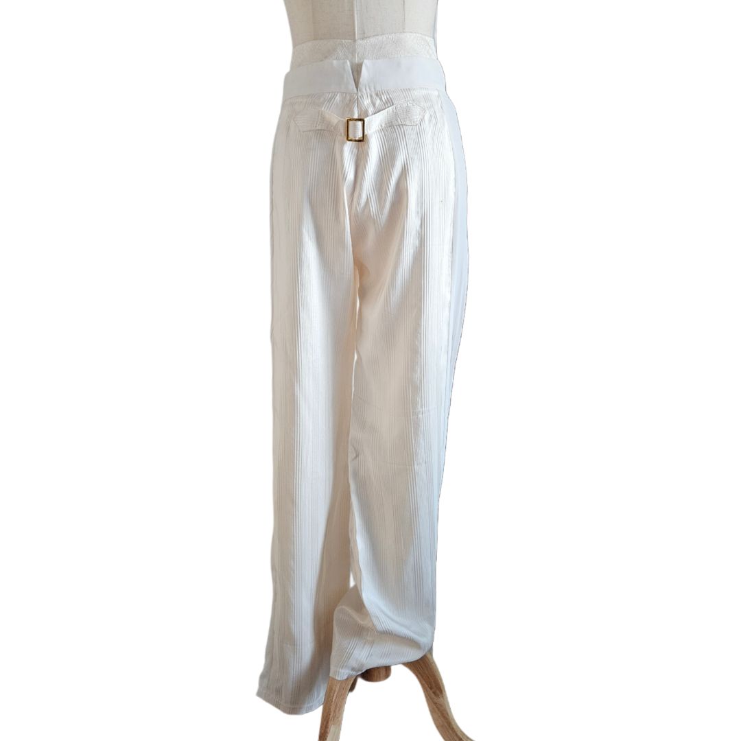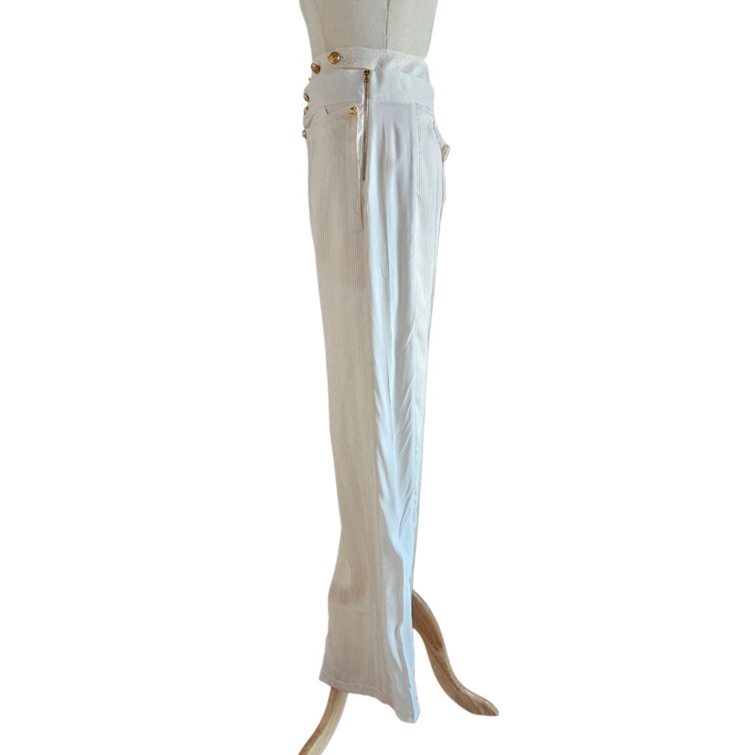 Balenciaga Cream Striped Buttons Zip Side Wide Leg Trouser