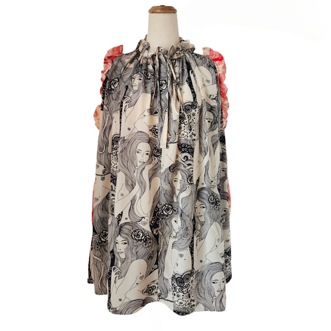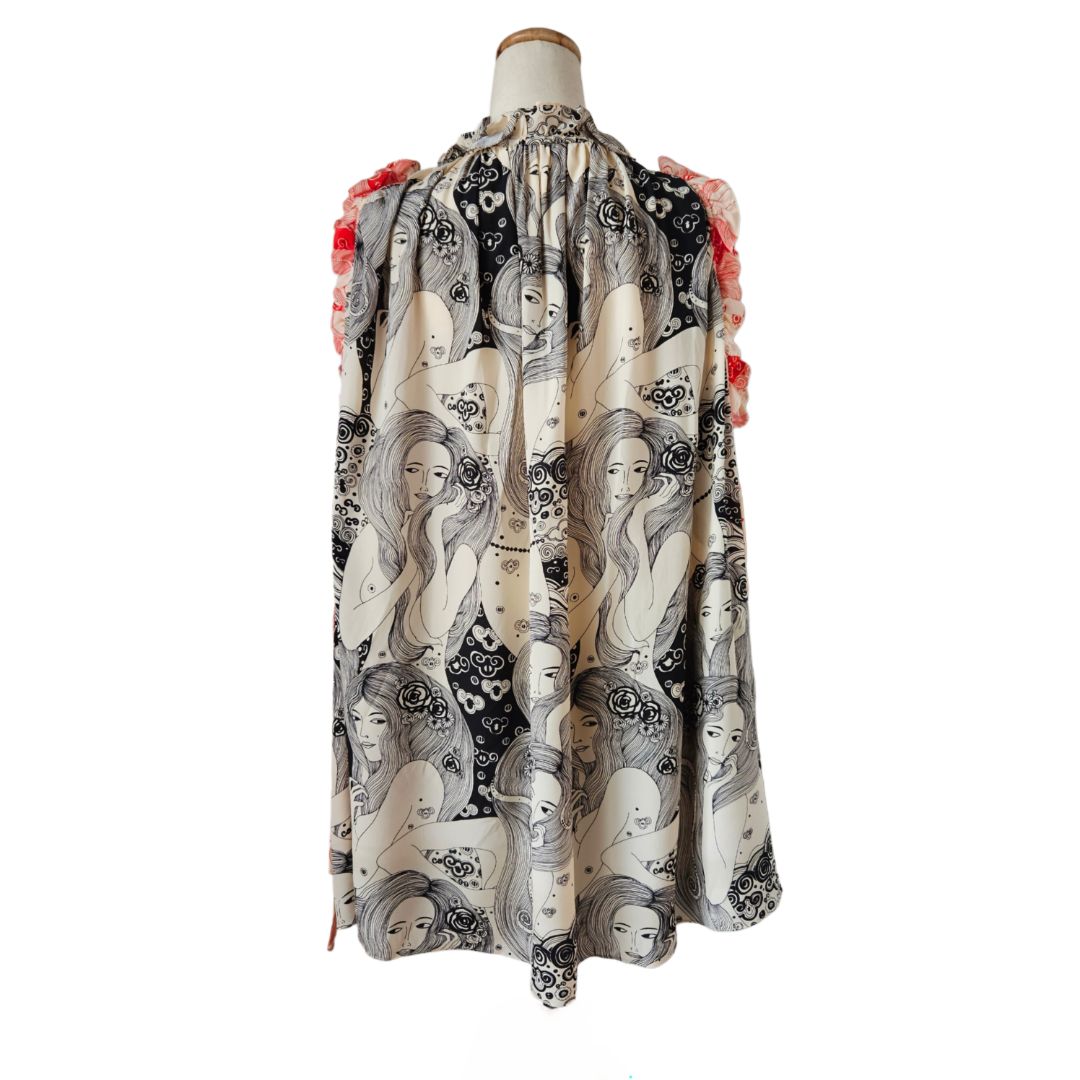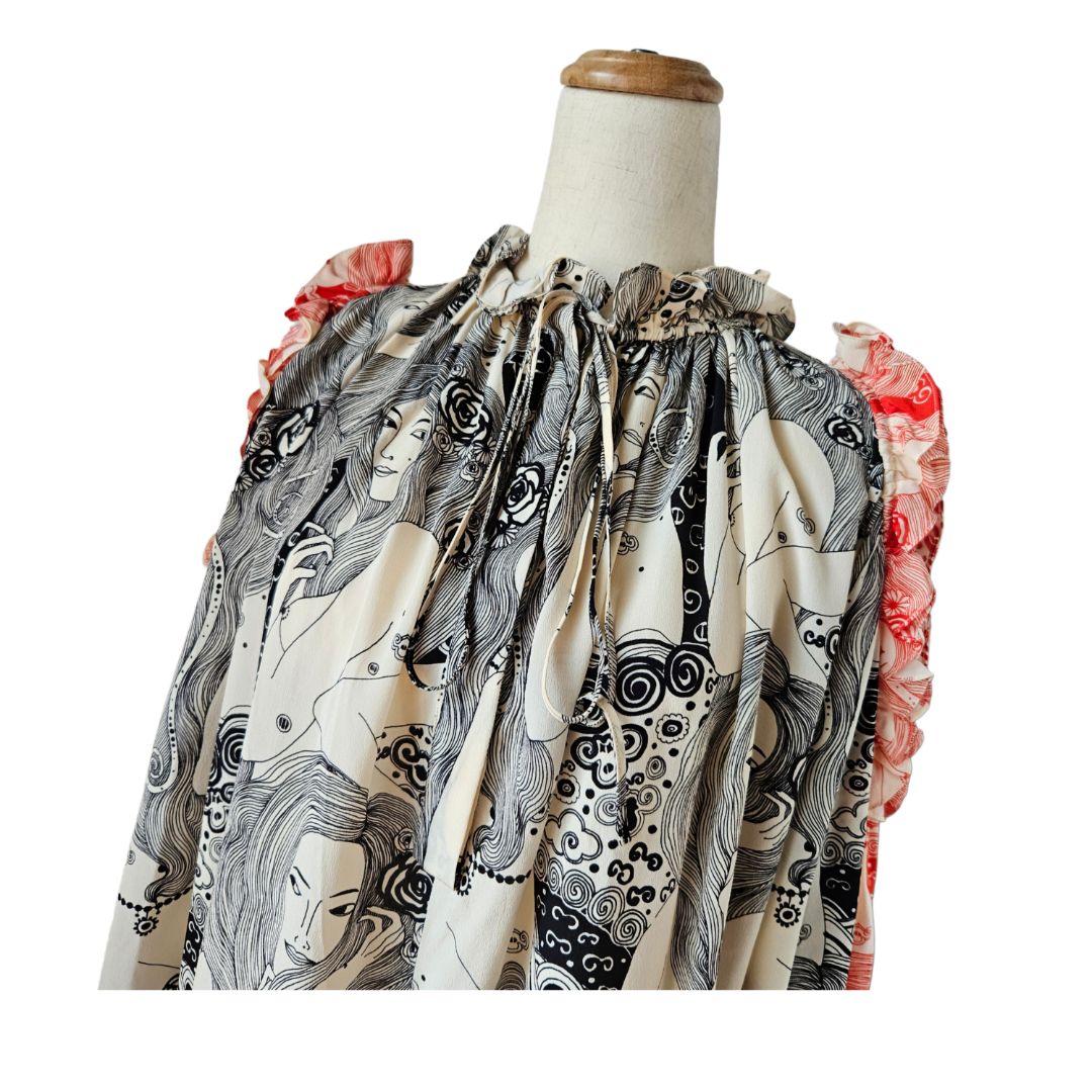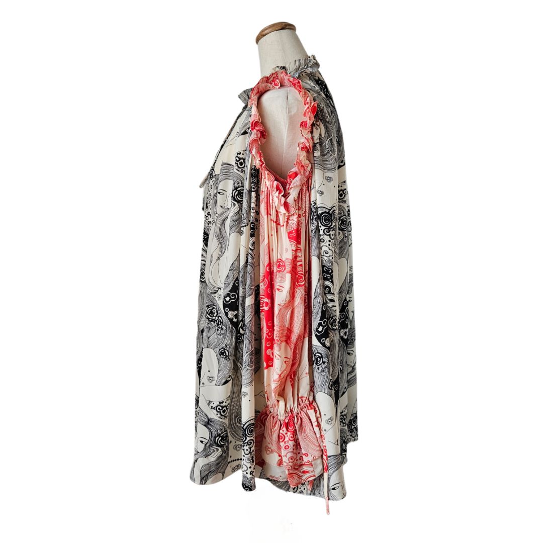 Alexander McQueen Tricolor Eve Printed Silk Dropped Sleeve Blouse