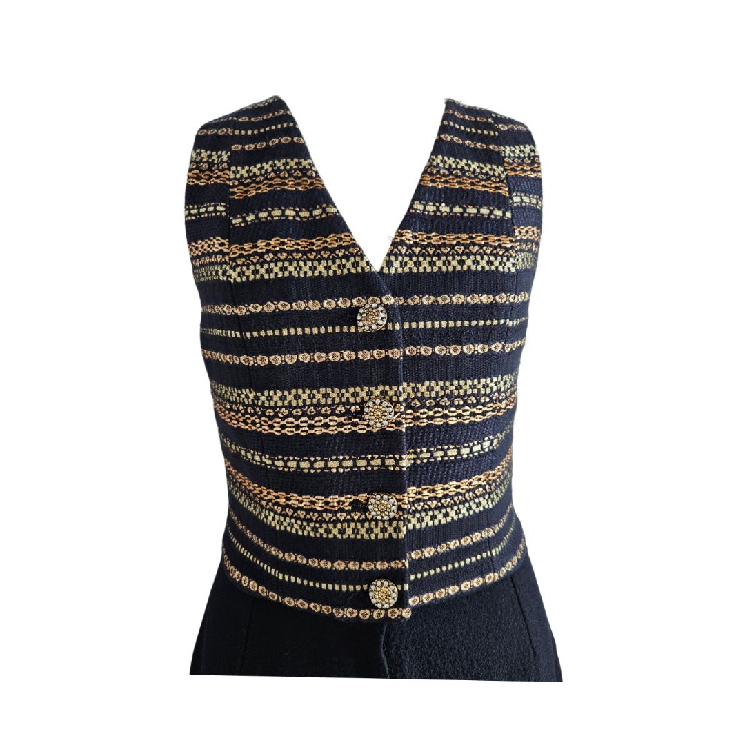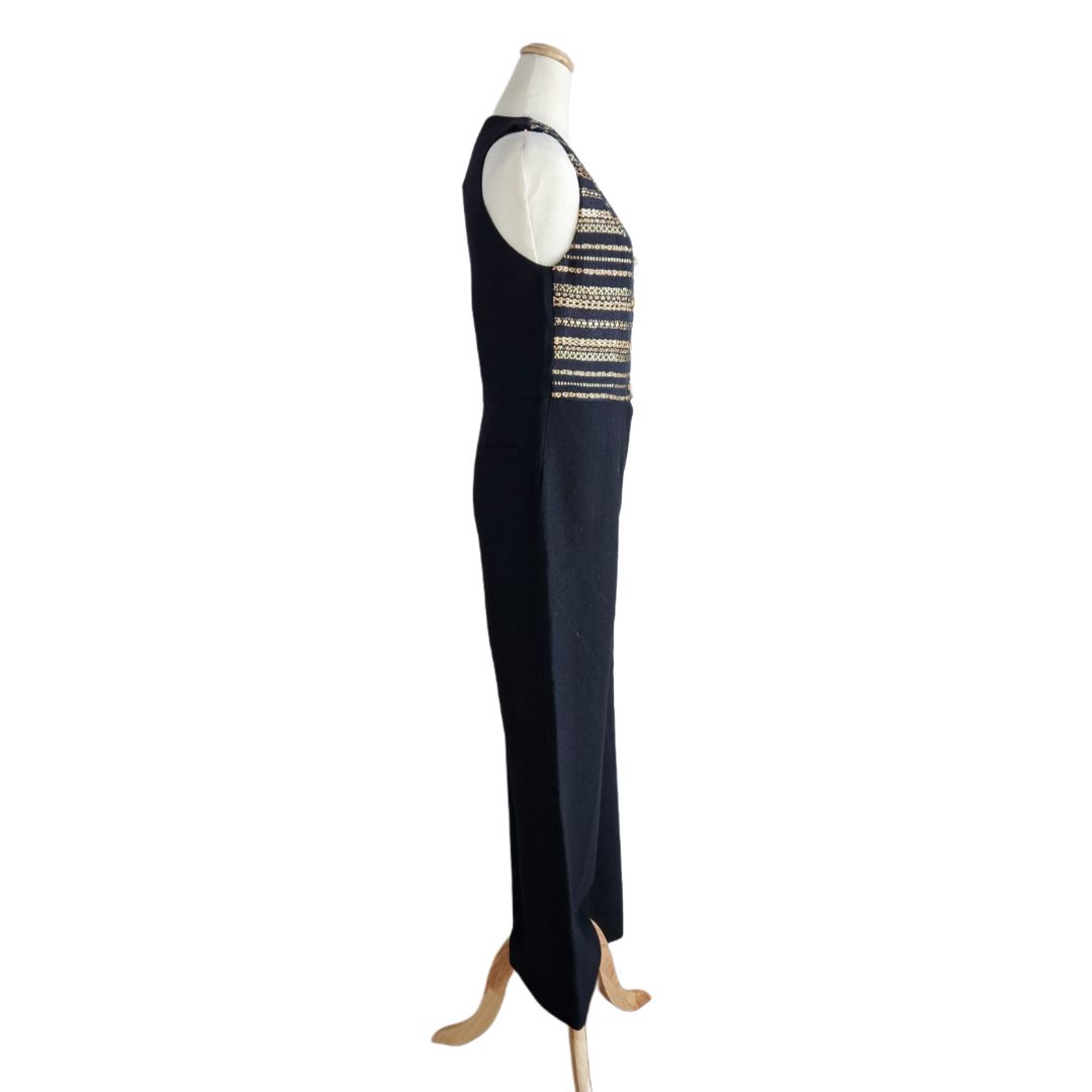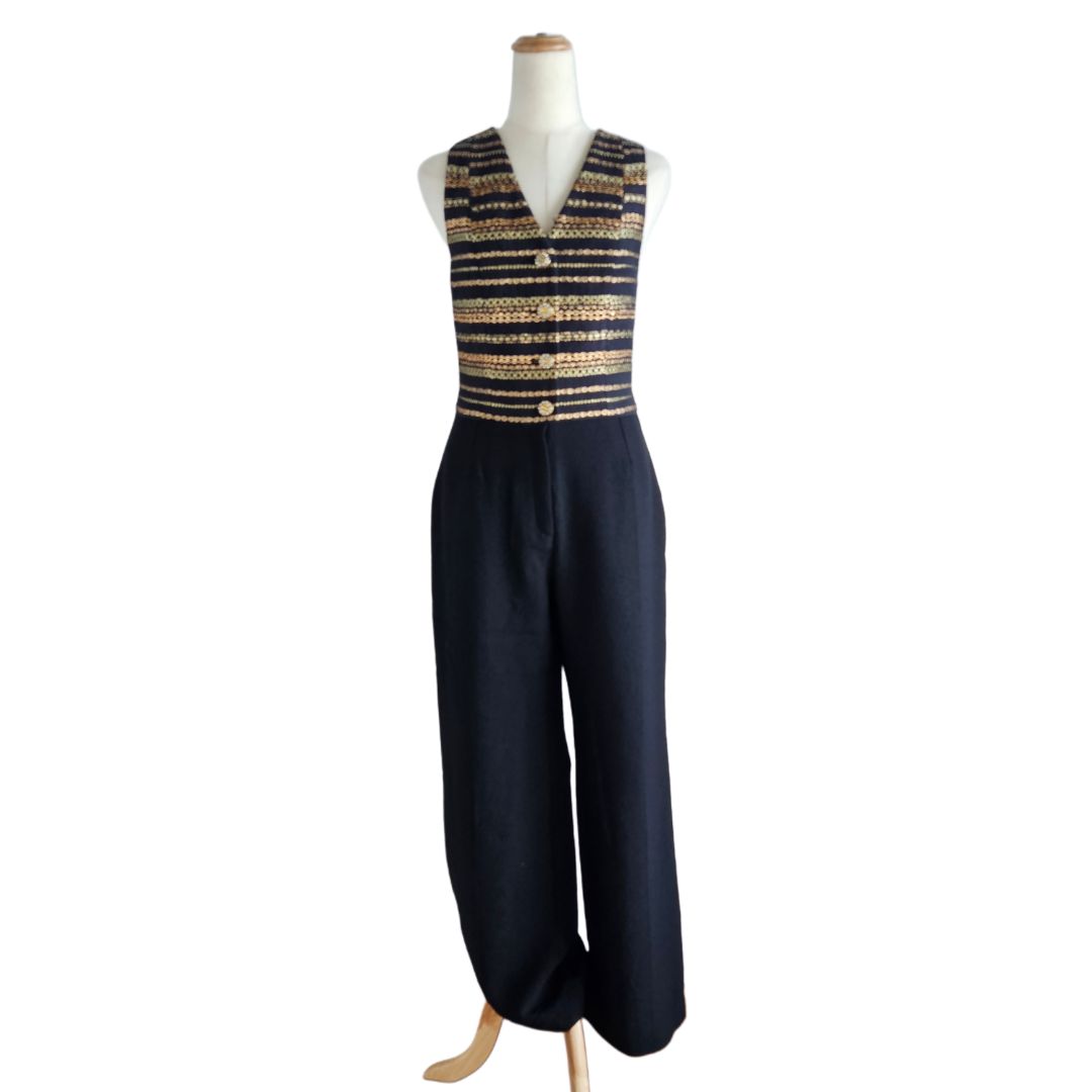 Ingie Black/Gold Sleeveless Button Embroidered Detail Jumpsuit