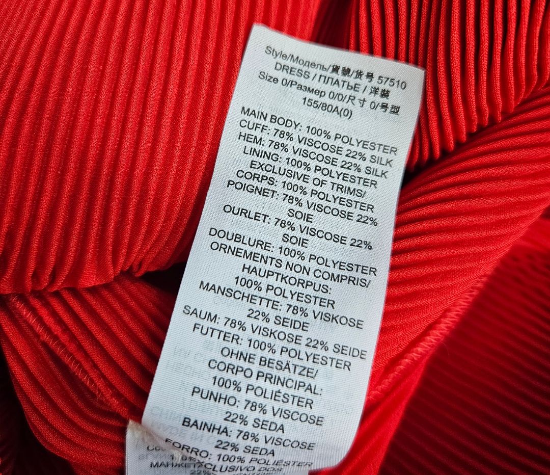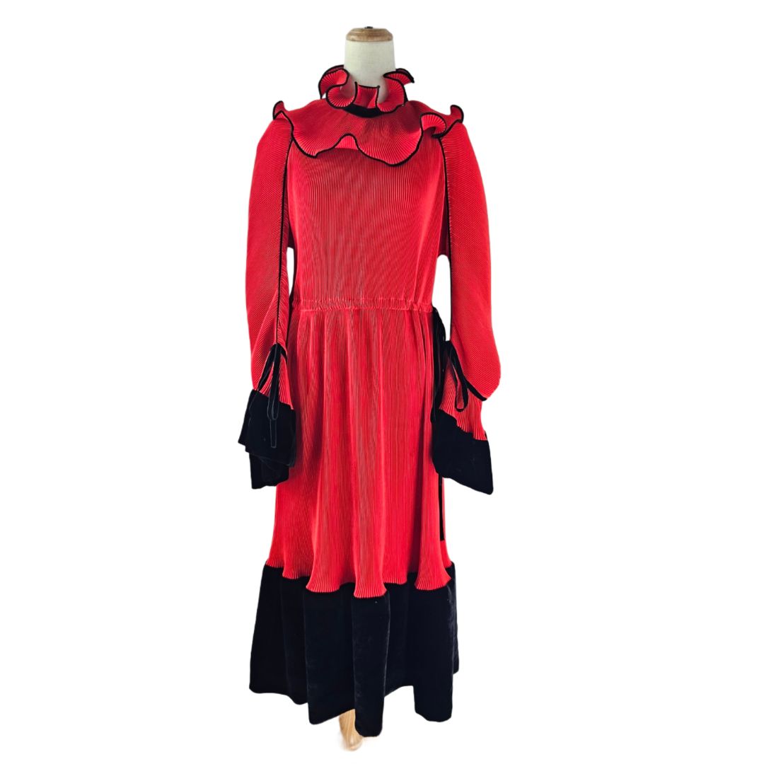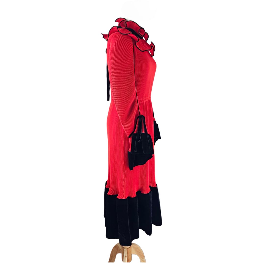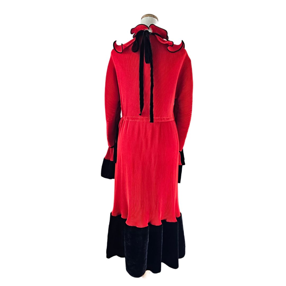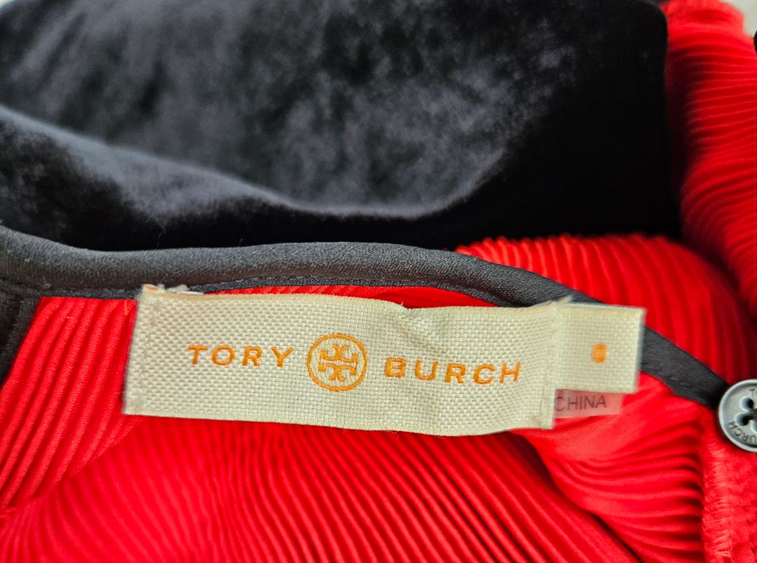 Tory Burch Red/Black Pleated Ruffle Long Sleeve Dress
