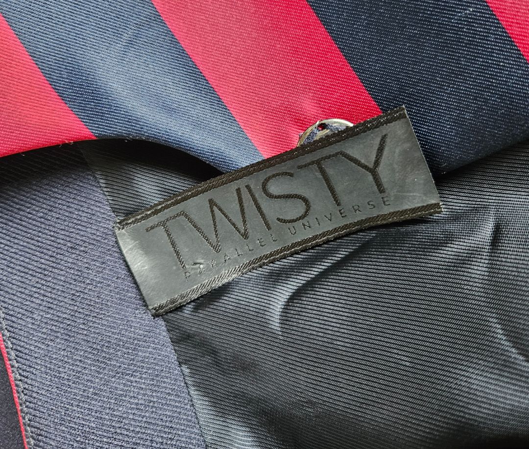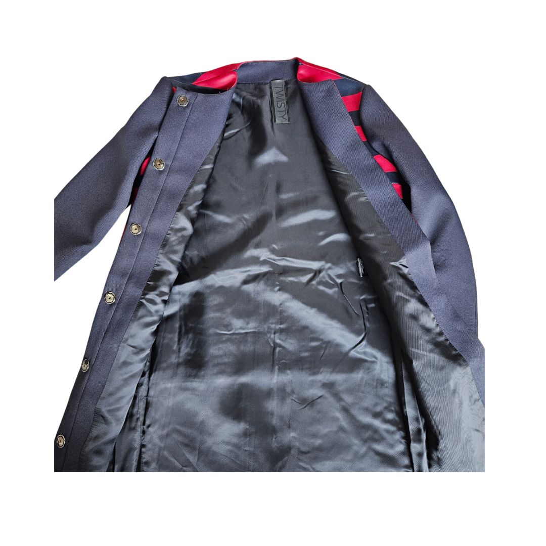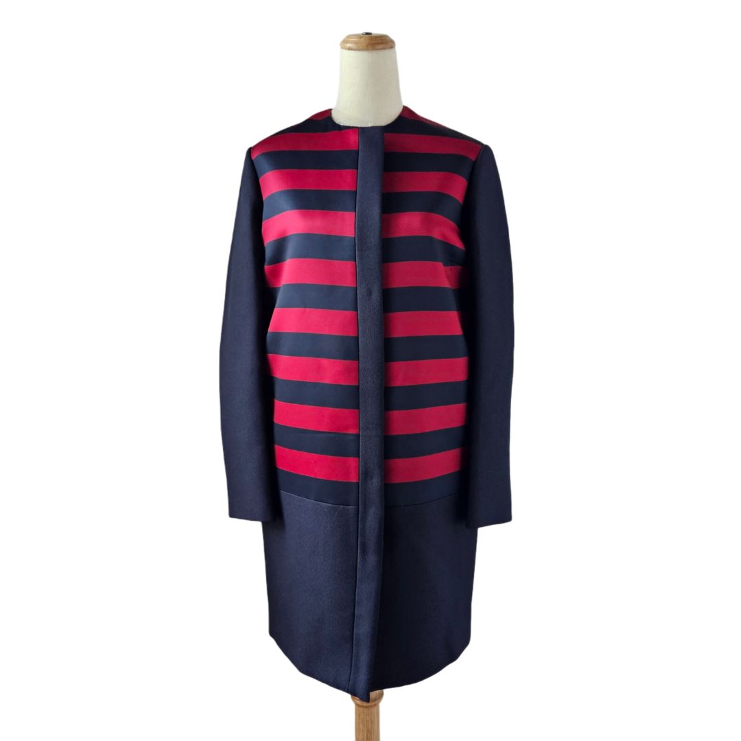 Twisty Parallel Universe Navy Blue/Red Striped Coat Dress