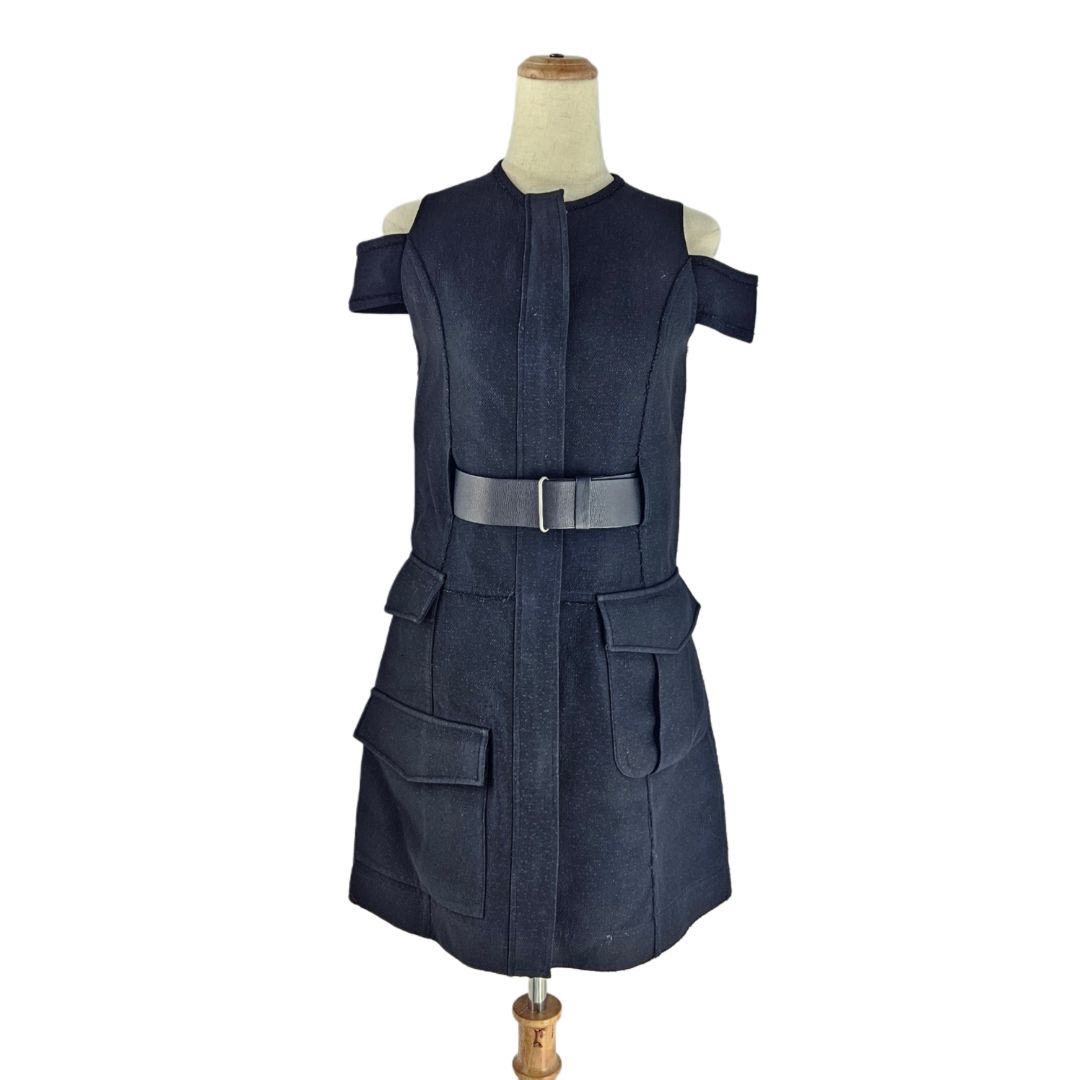 Victoria Beckham Black W/ Pocket Details Belted Sleeveless Midi Dress