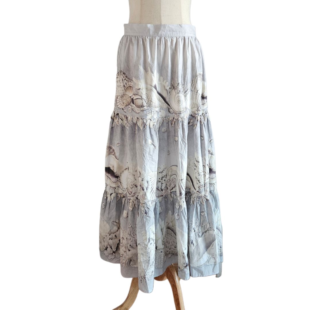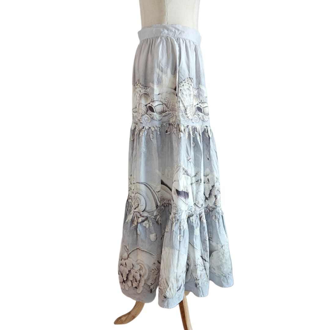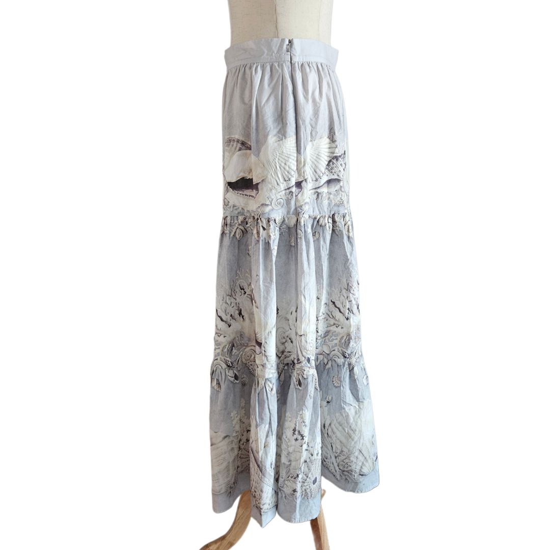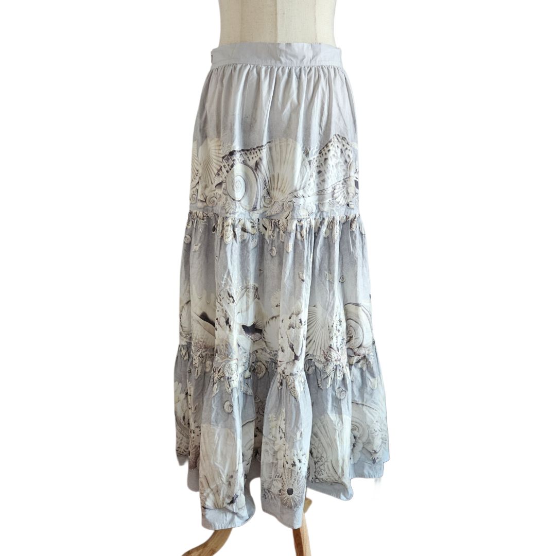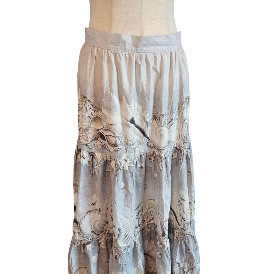 Weekend Maxmara Grey/White Seashell Print Flared Long Skirt