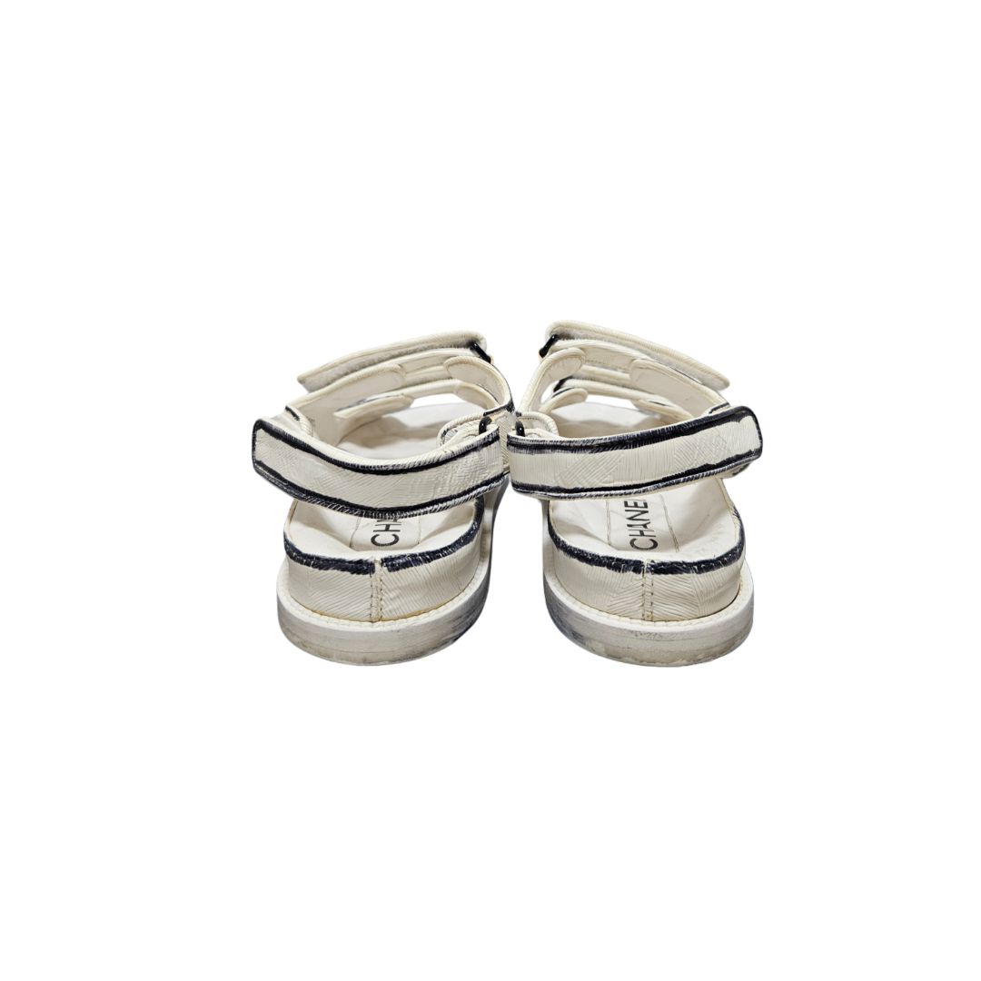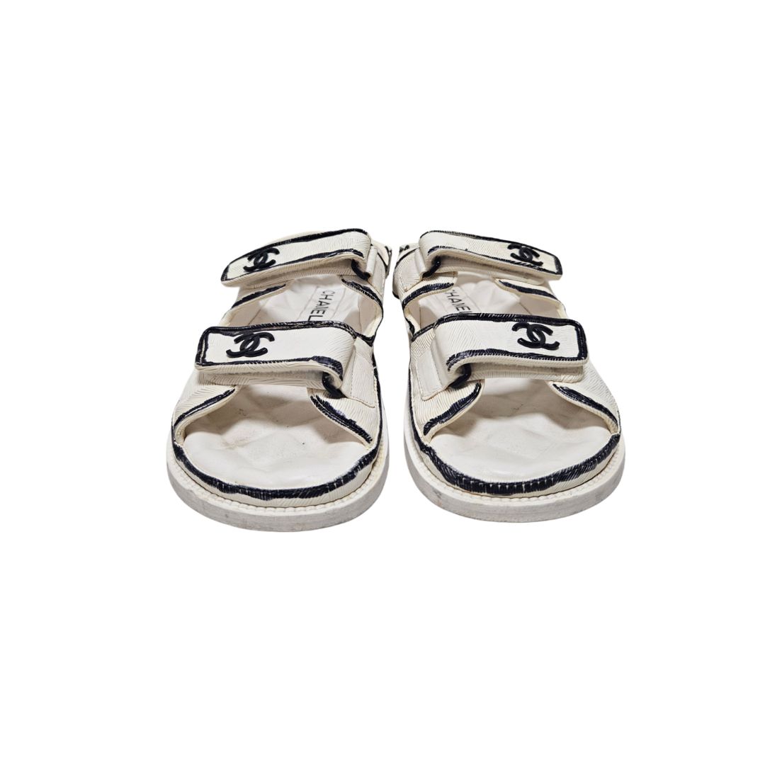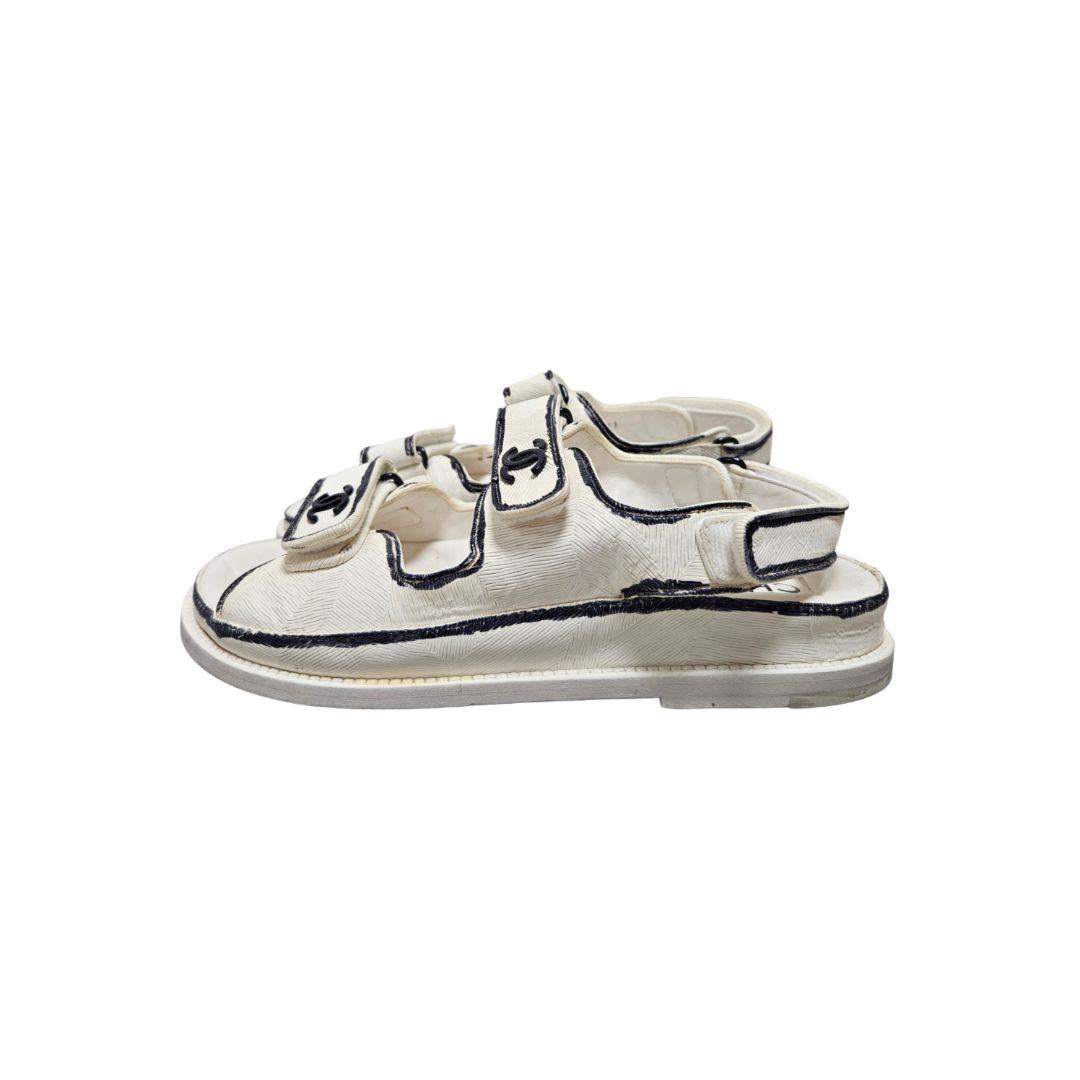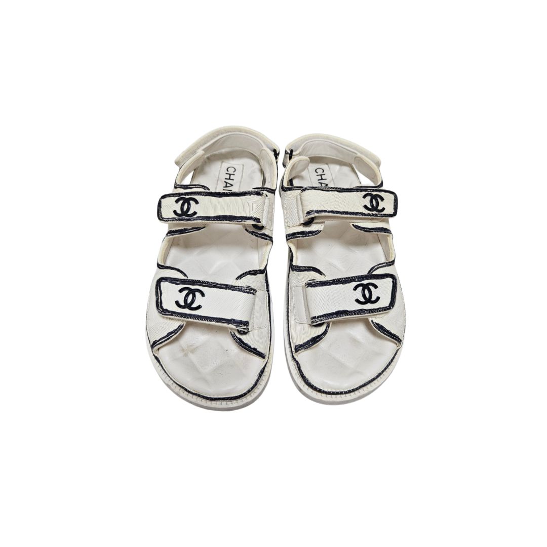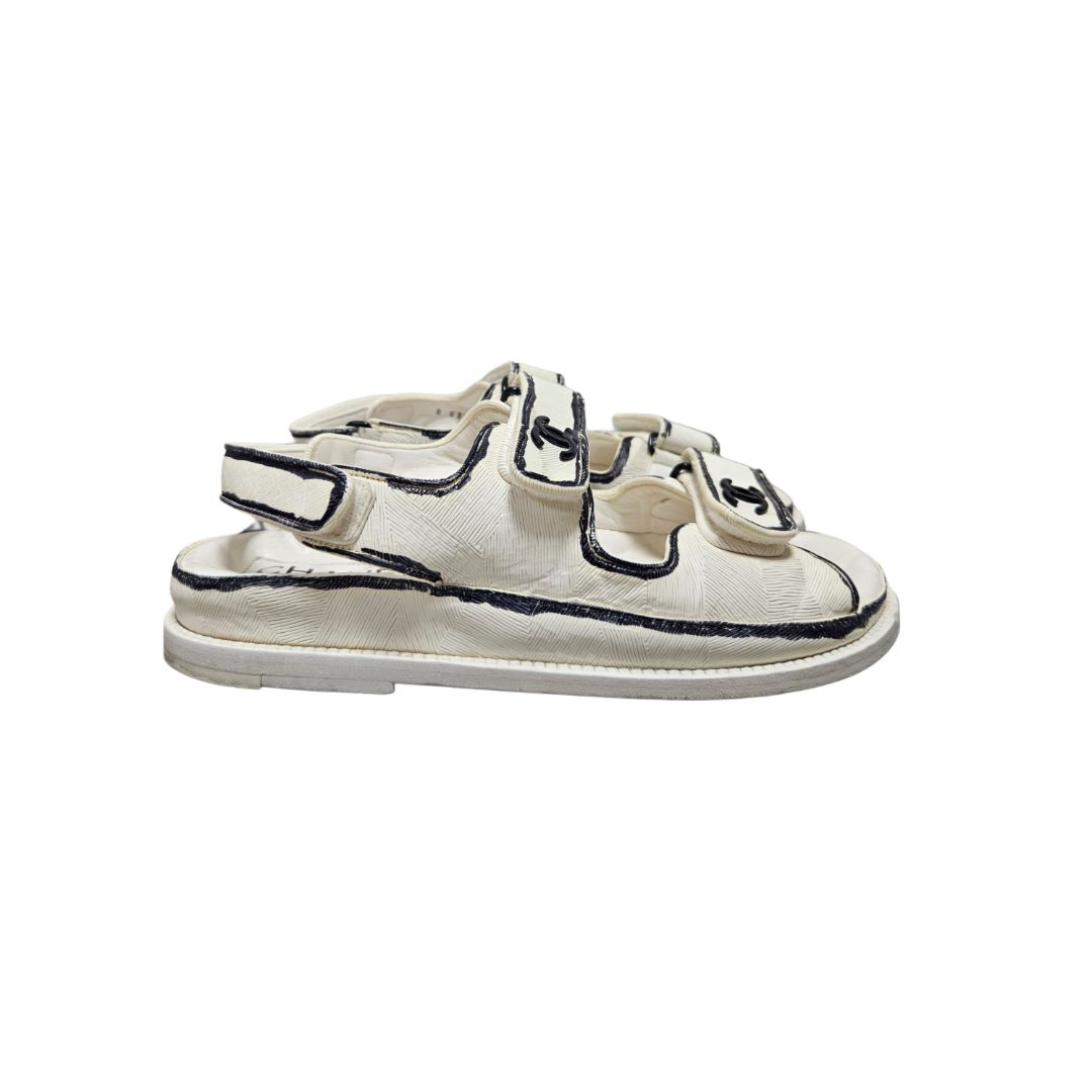 Chanel White Dad With Graphic Print Market Flat Sandal, size 38C