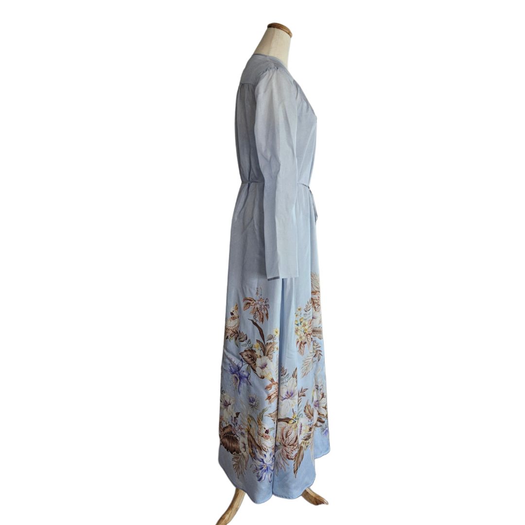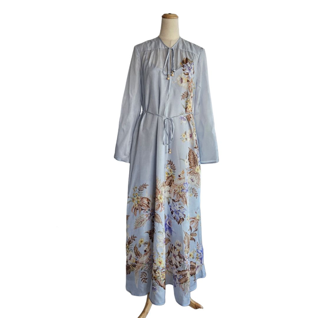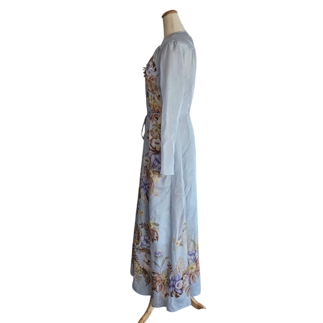 Zimmermann Light Blue W/ Multicolor Floral & Animal Print Drawstring Long Sleeve Maxi Dress