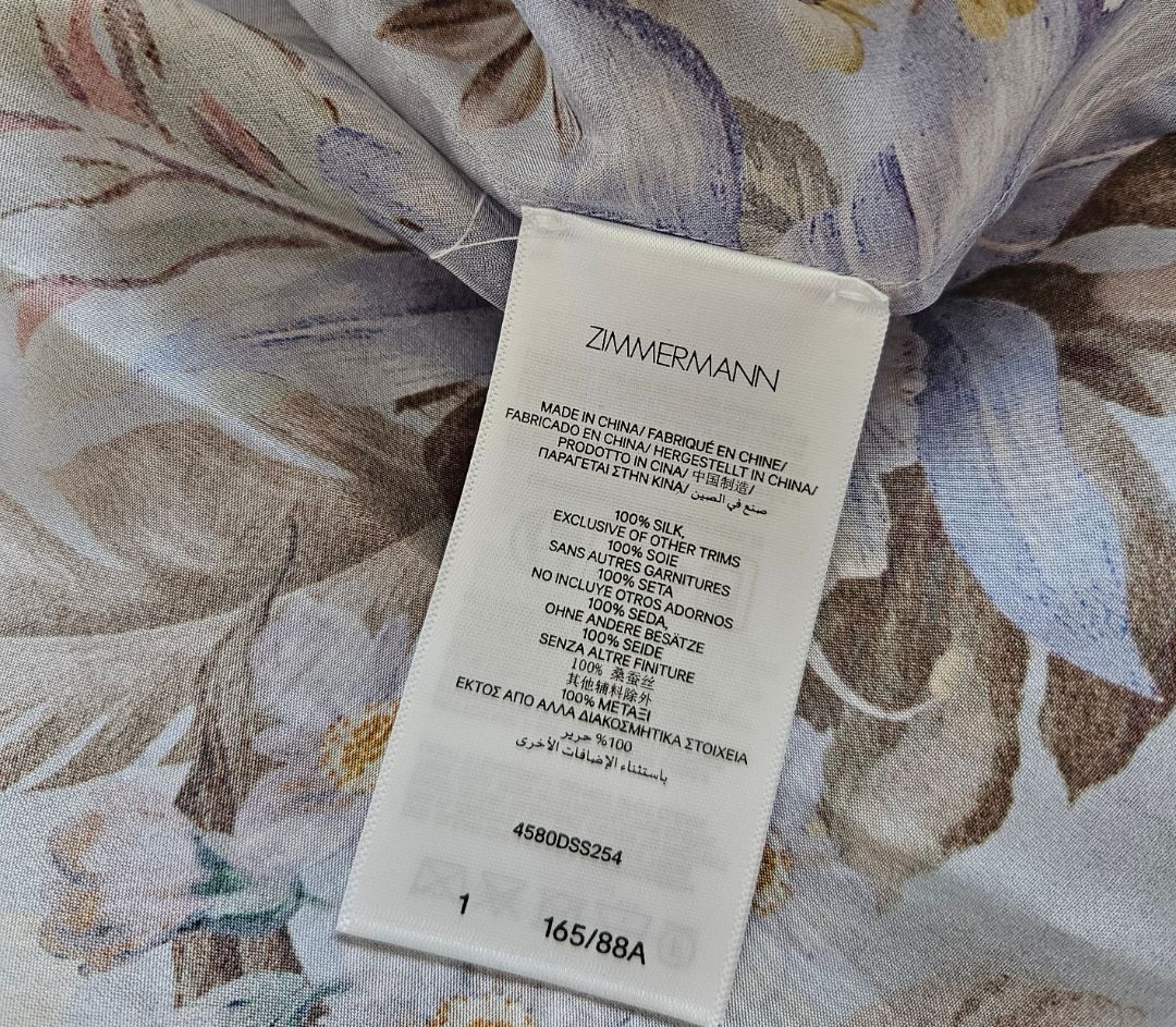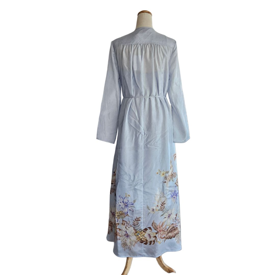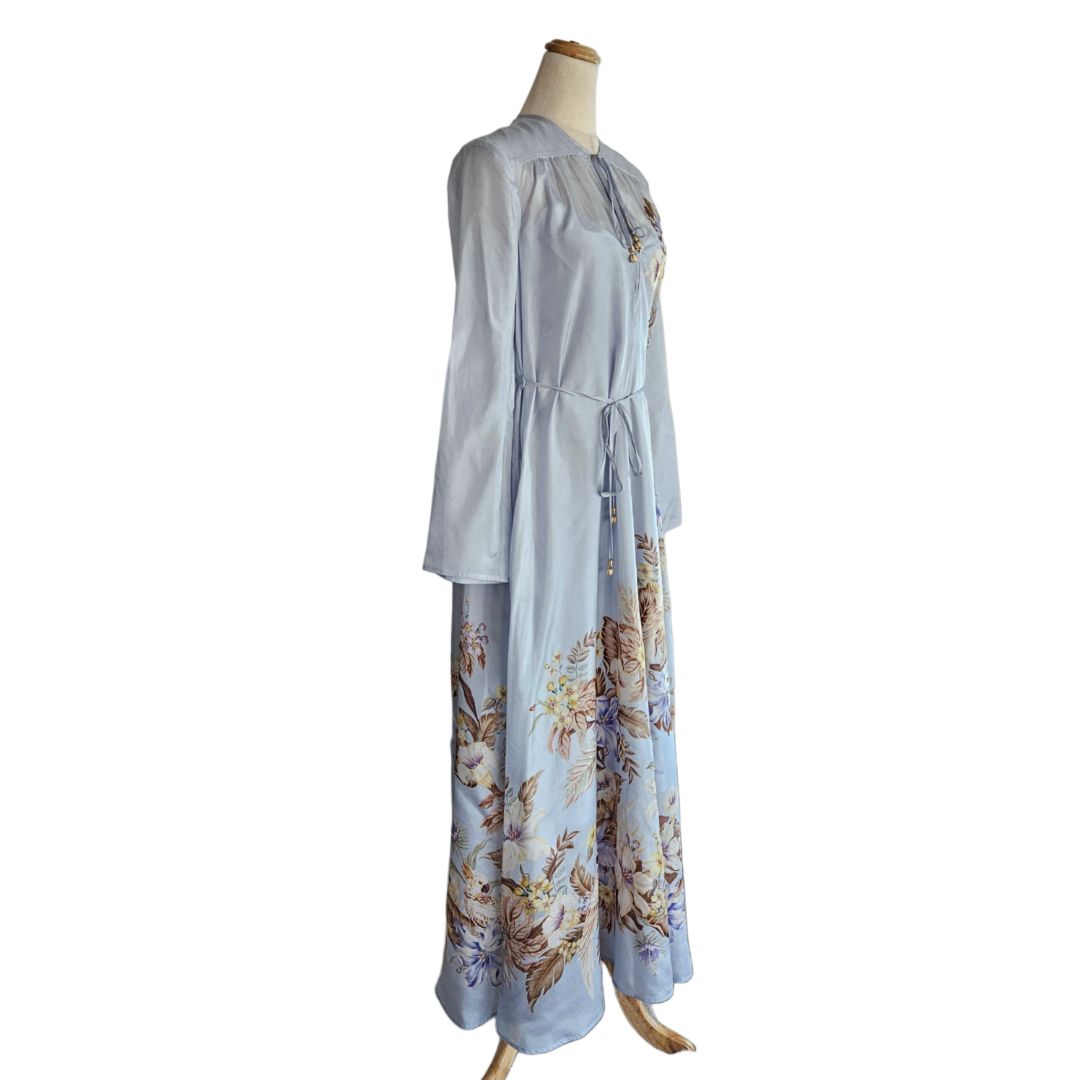 Zimmermann Light Blue W/ Multicolor Floral & Animal Print Drawstring Long Sleeve Maxi Dress