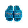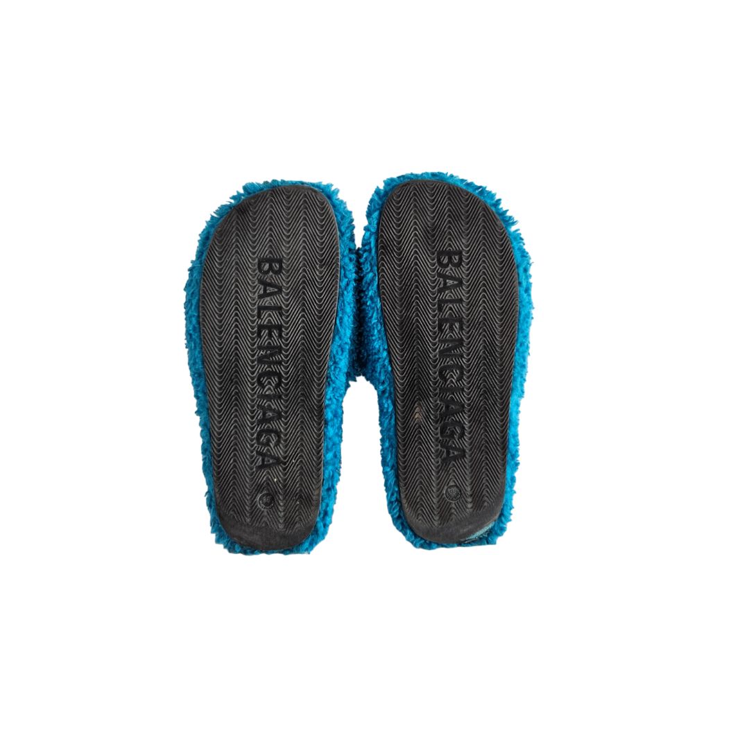Balenciaga Blue Shearling Logo Flat Slides, size 38