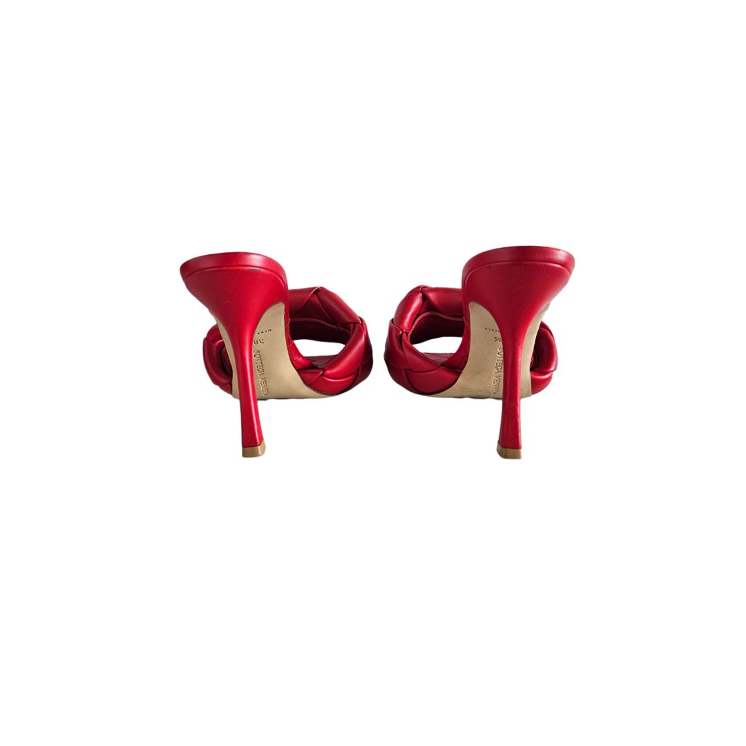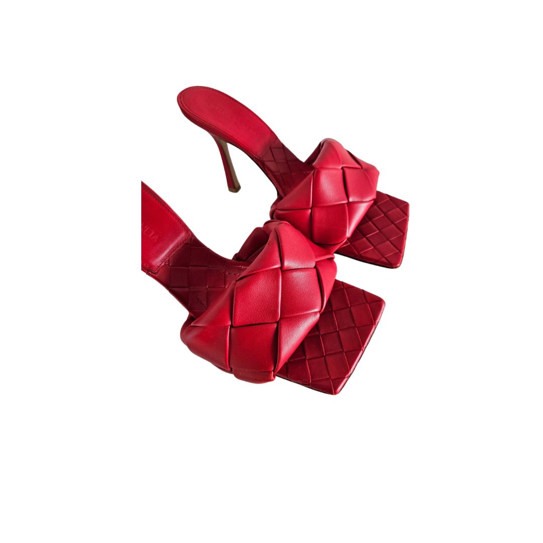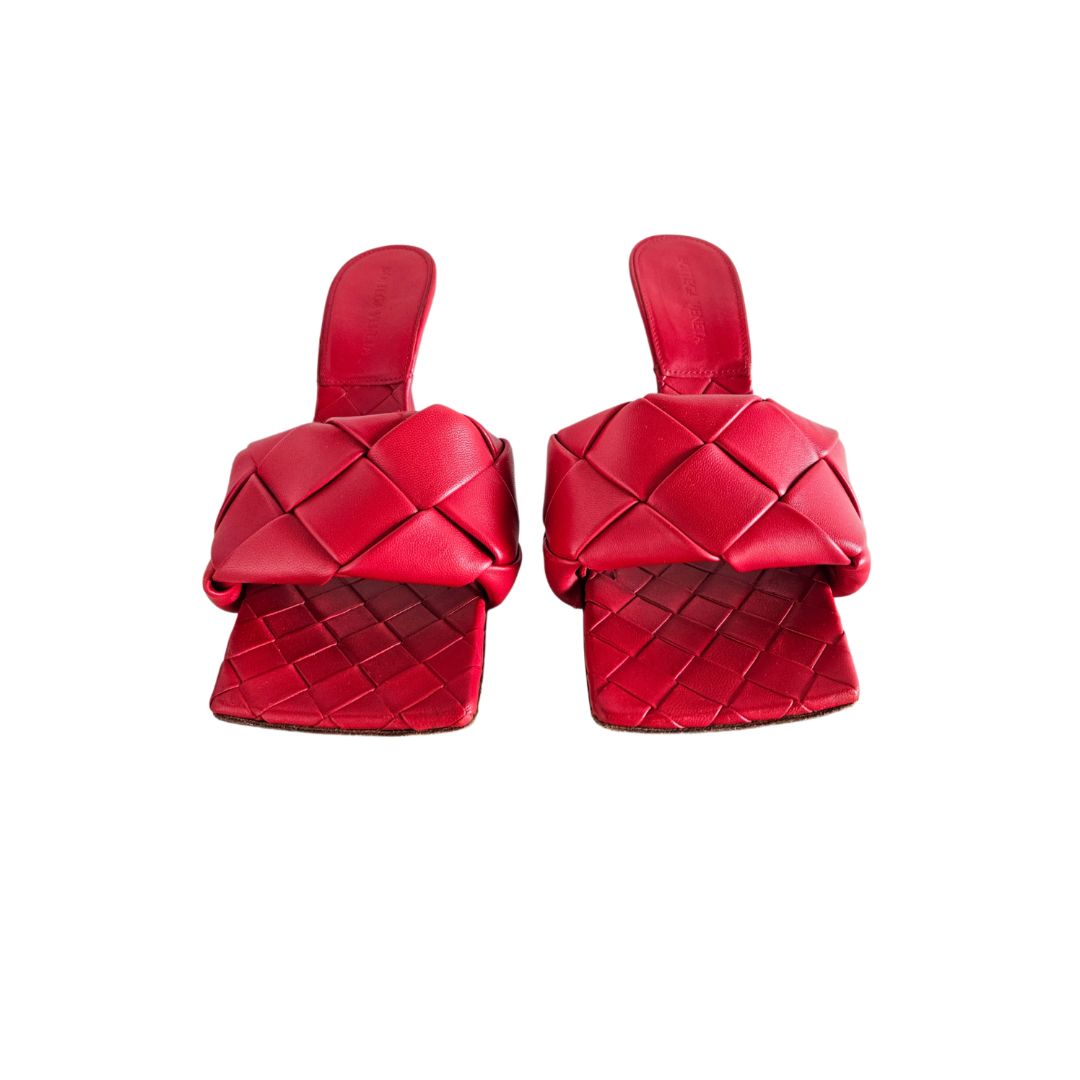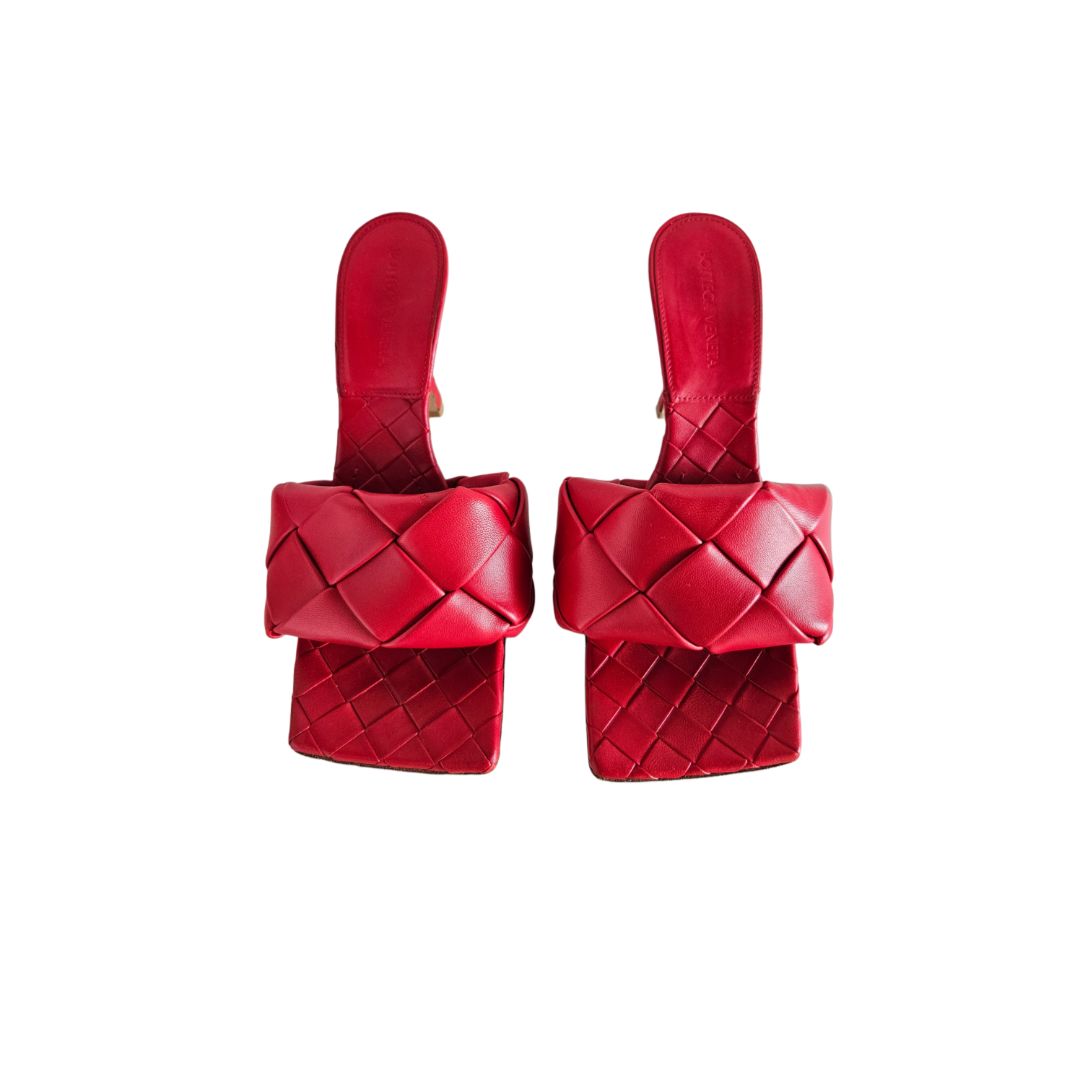 Bottega Veneta Red Leather Intrecciato Lido Mules