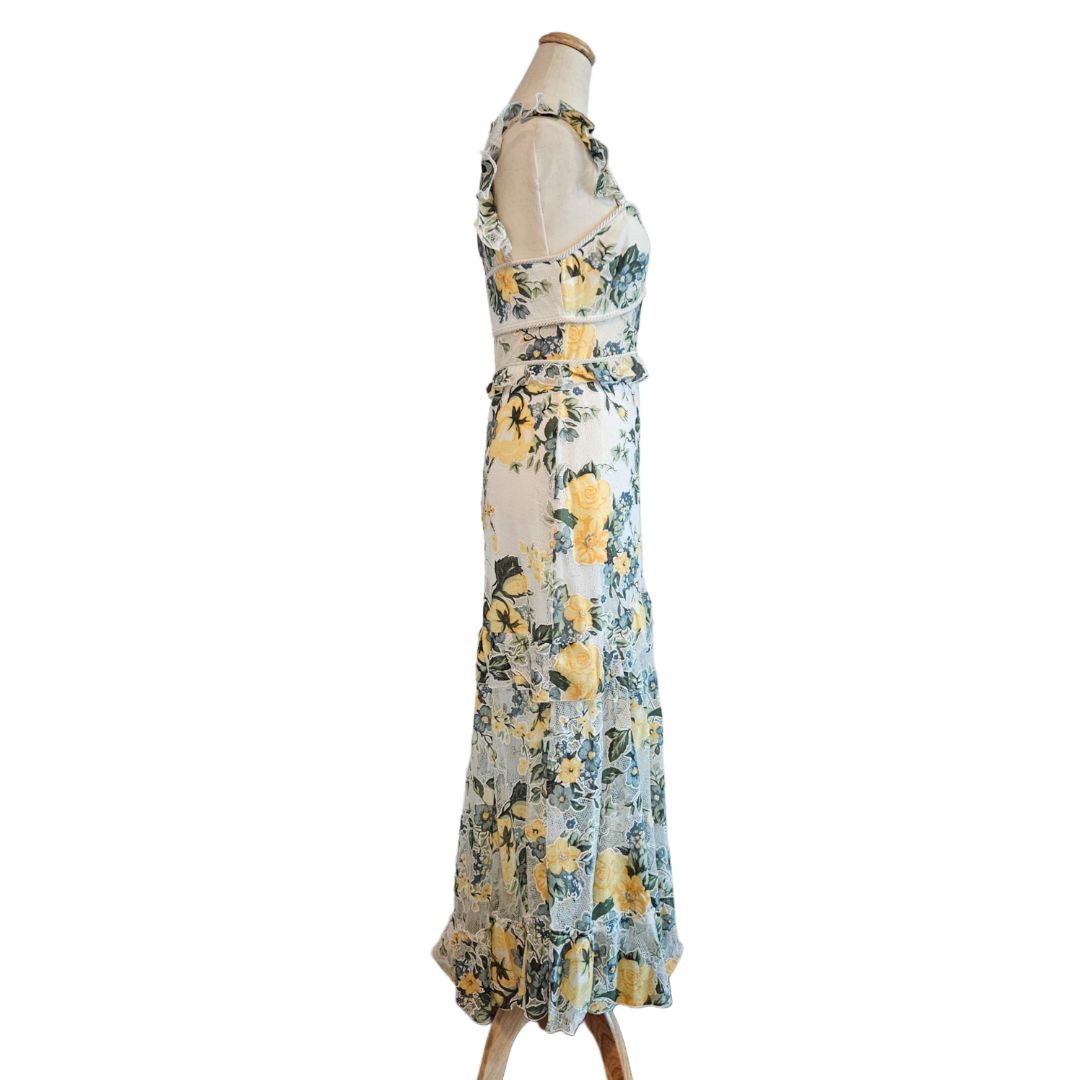 Alice McCall Tricolor Floral Print Mesh Sleeveless Long Dress