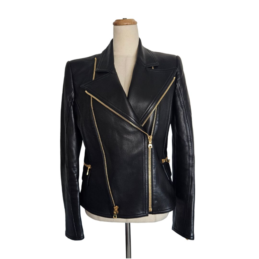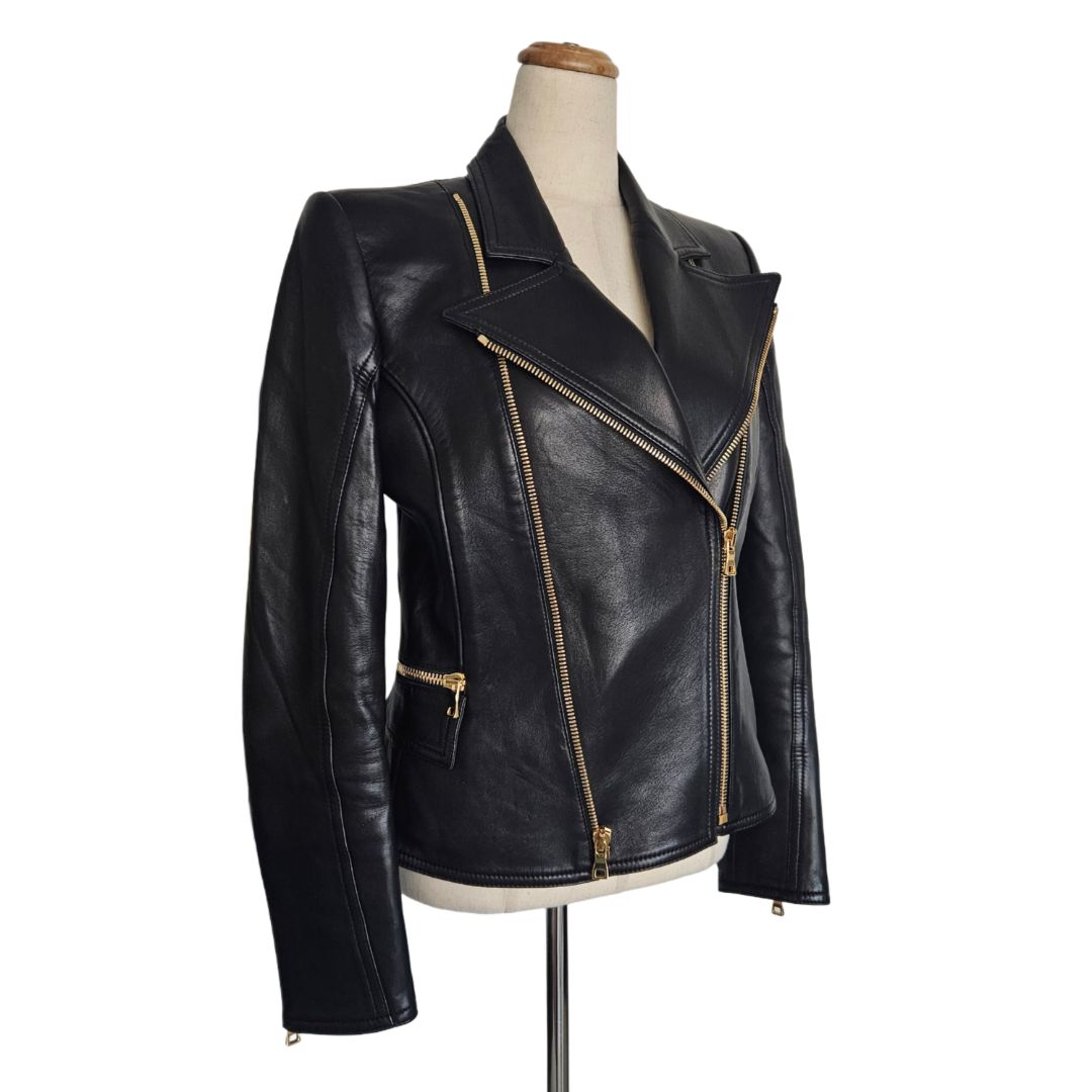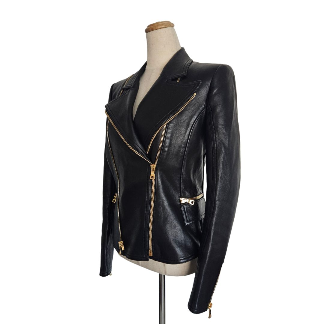 Balmain Black Leather Biker Jacket