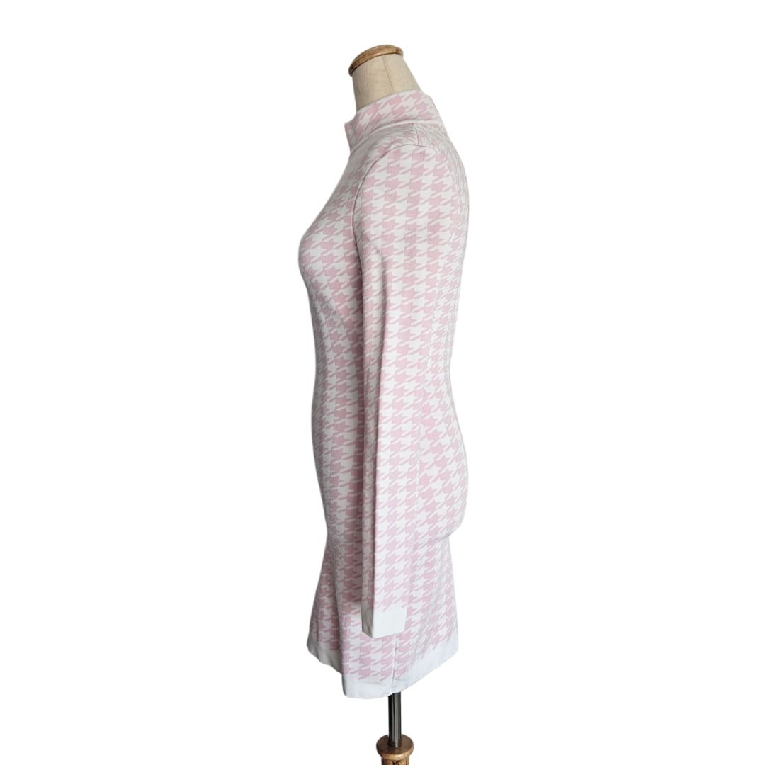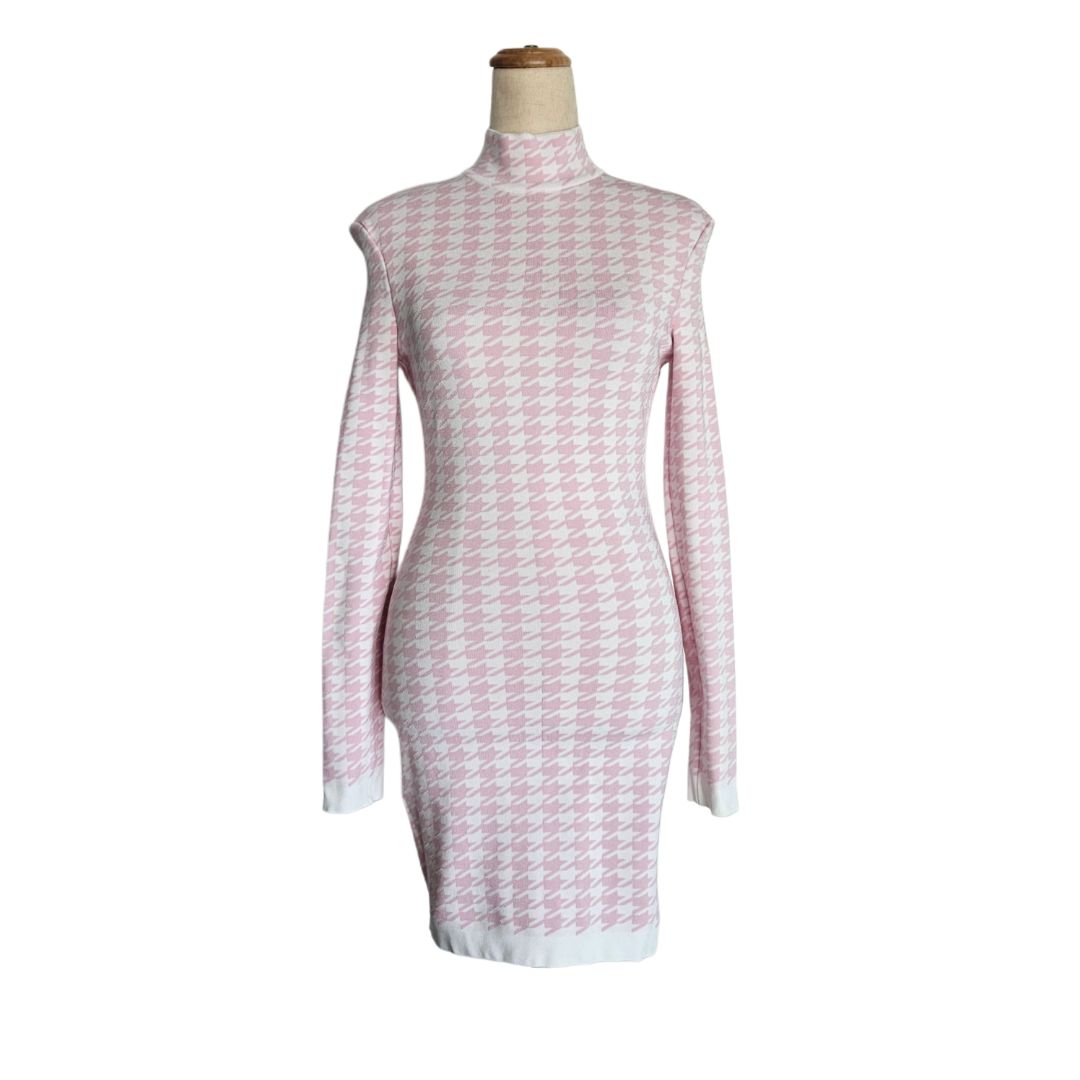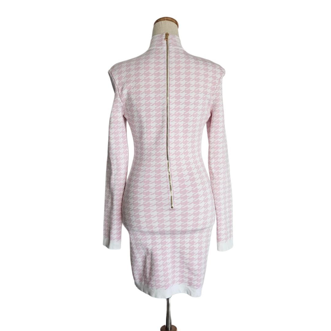 Balmain White and Pink Long Sleeve High Neck Mini Dress