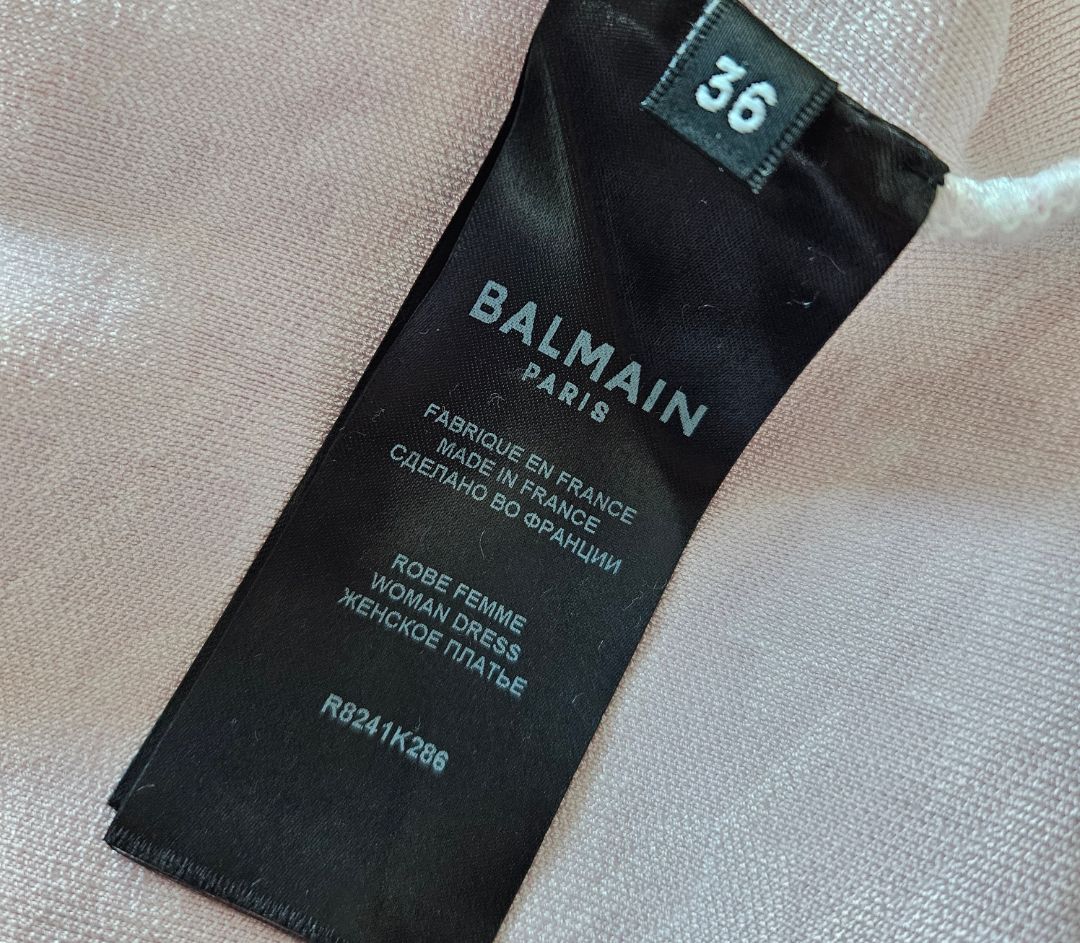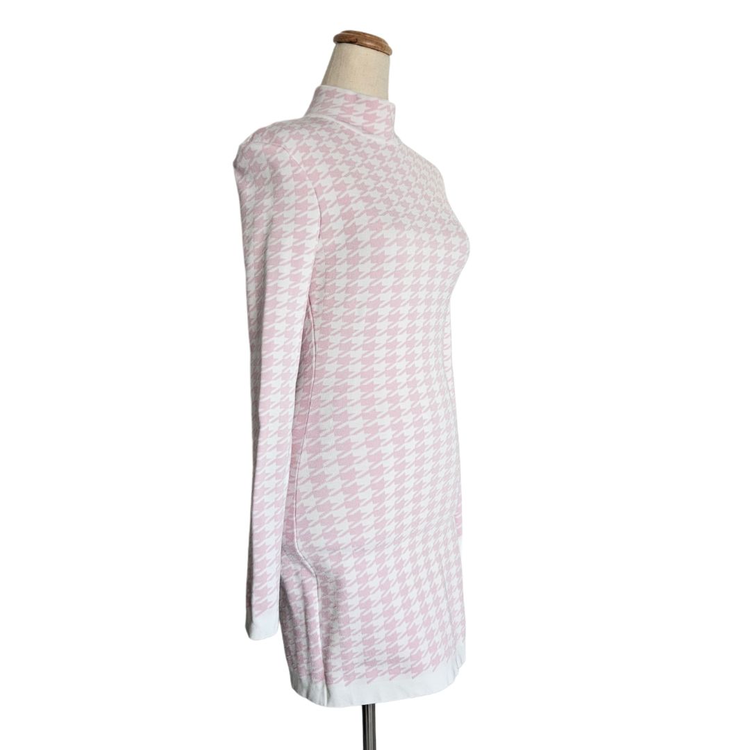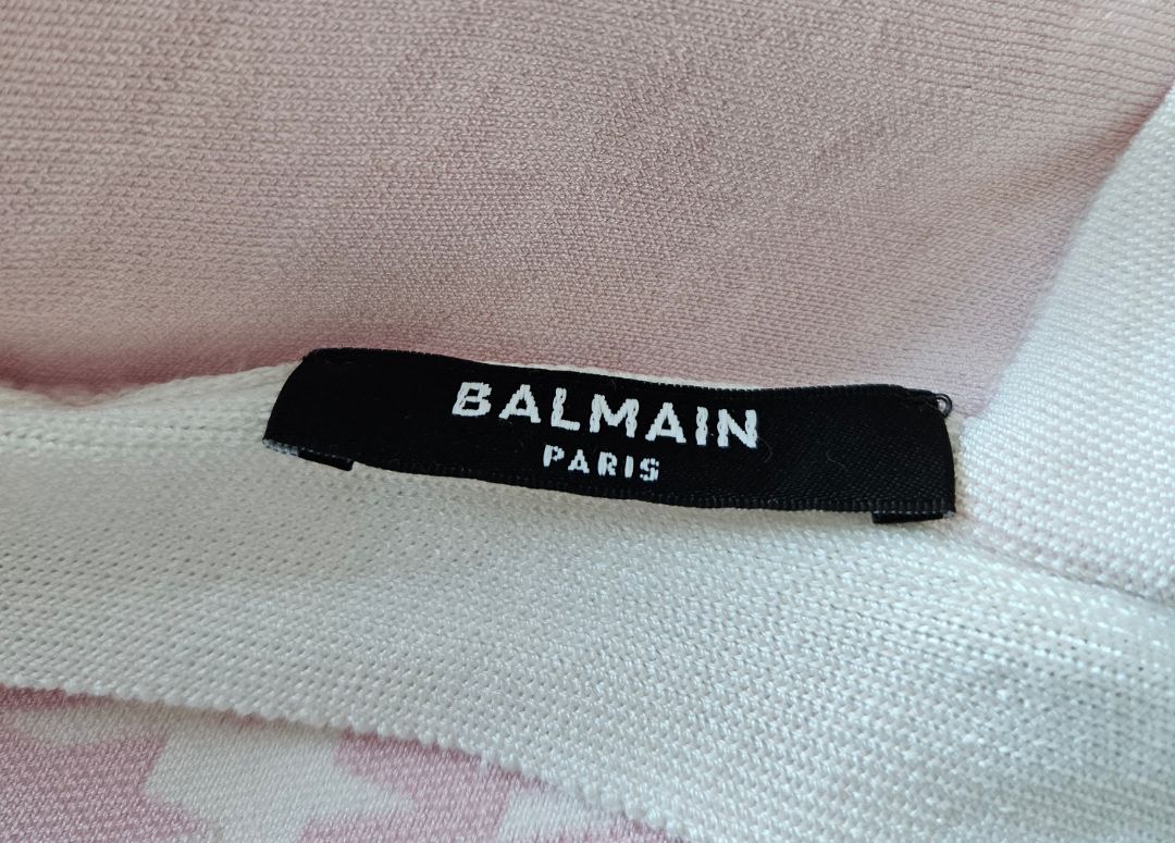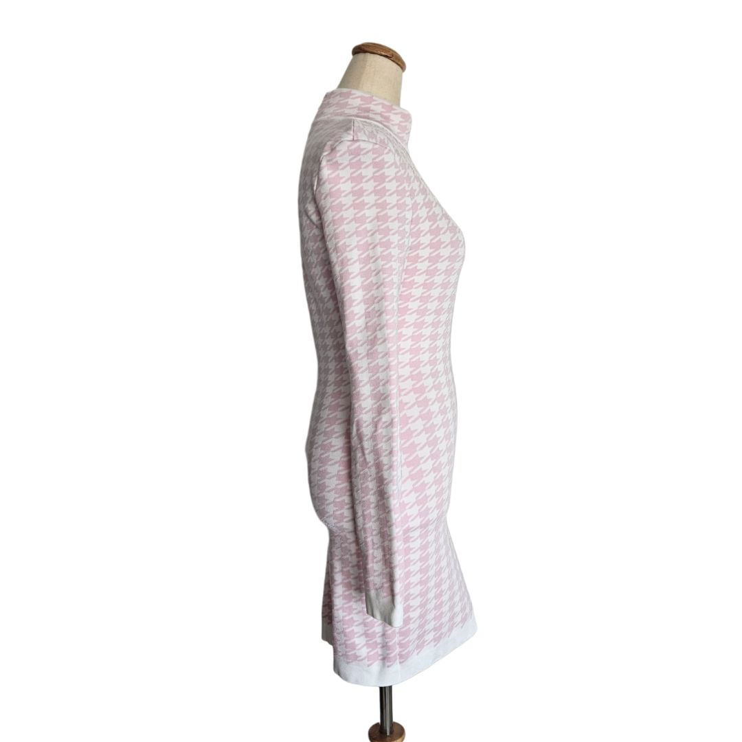 Balmain White and Pink Long Sleeve High Neck Mini Dress
