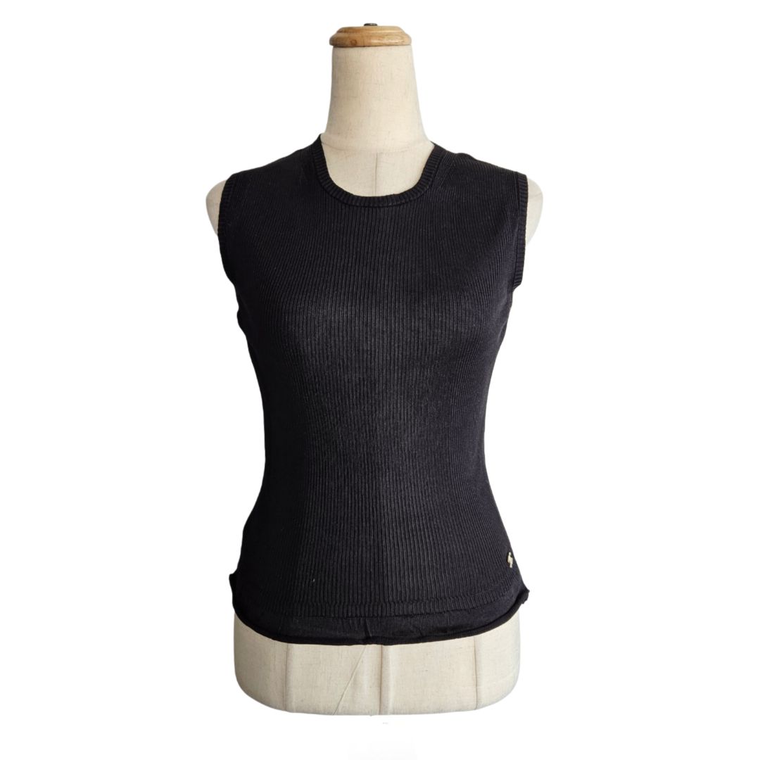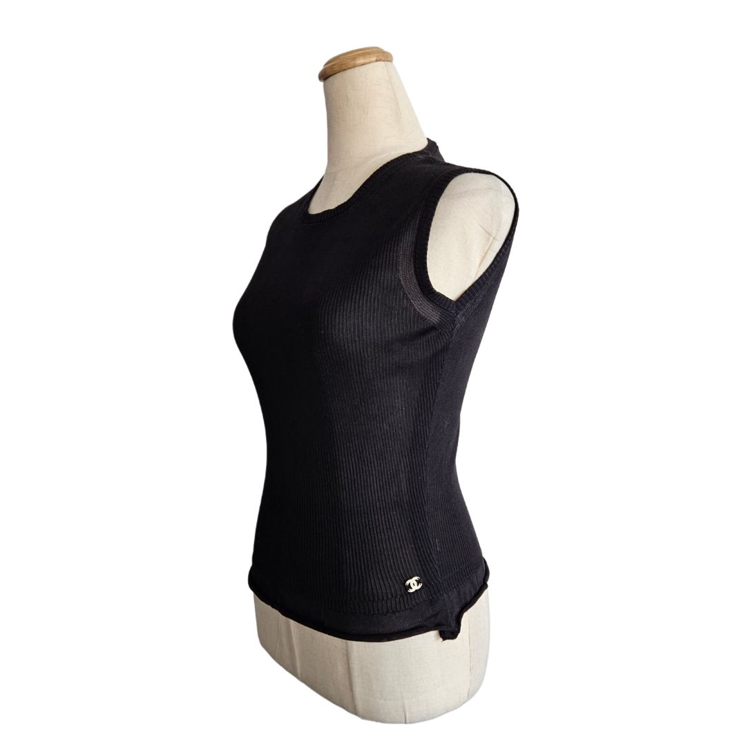 Chanel Black Sleeveless Ribbed CC Top