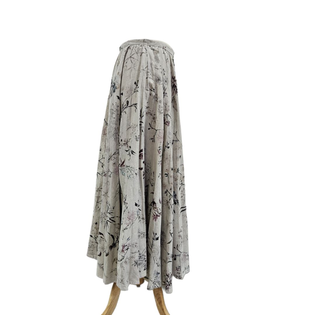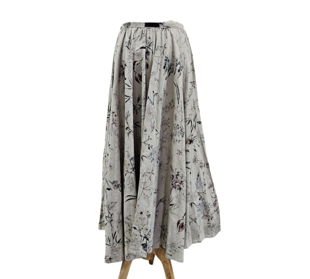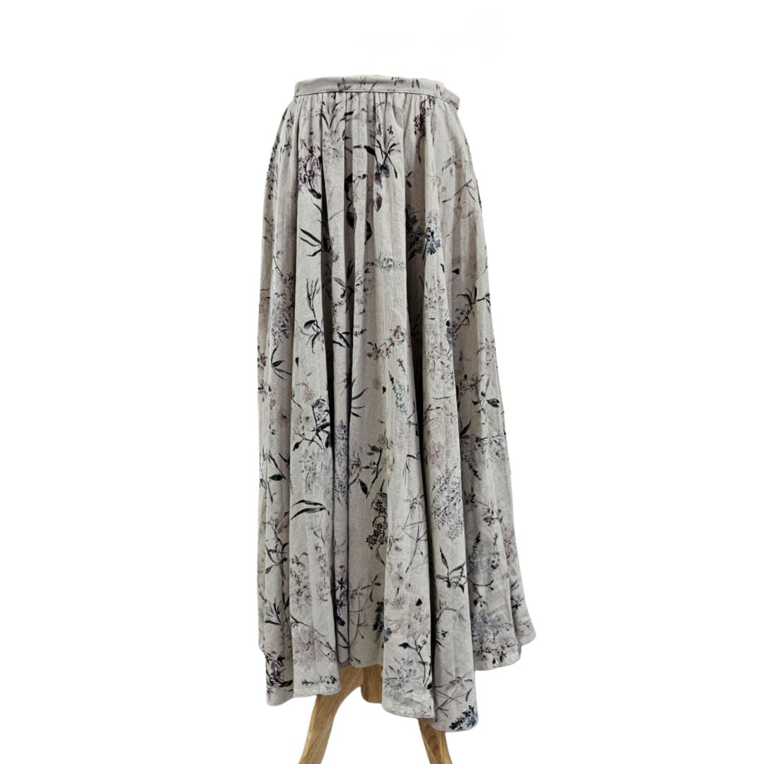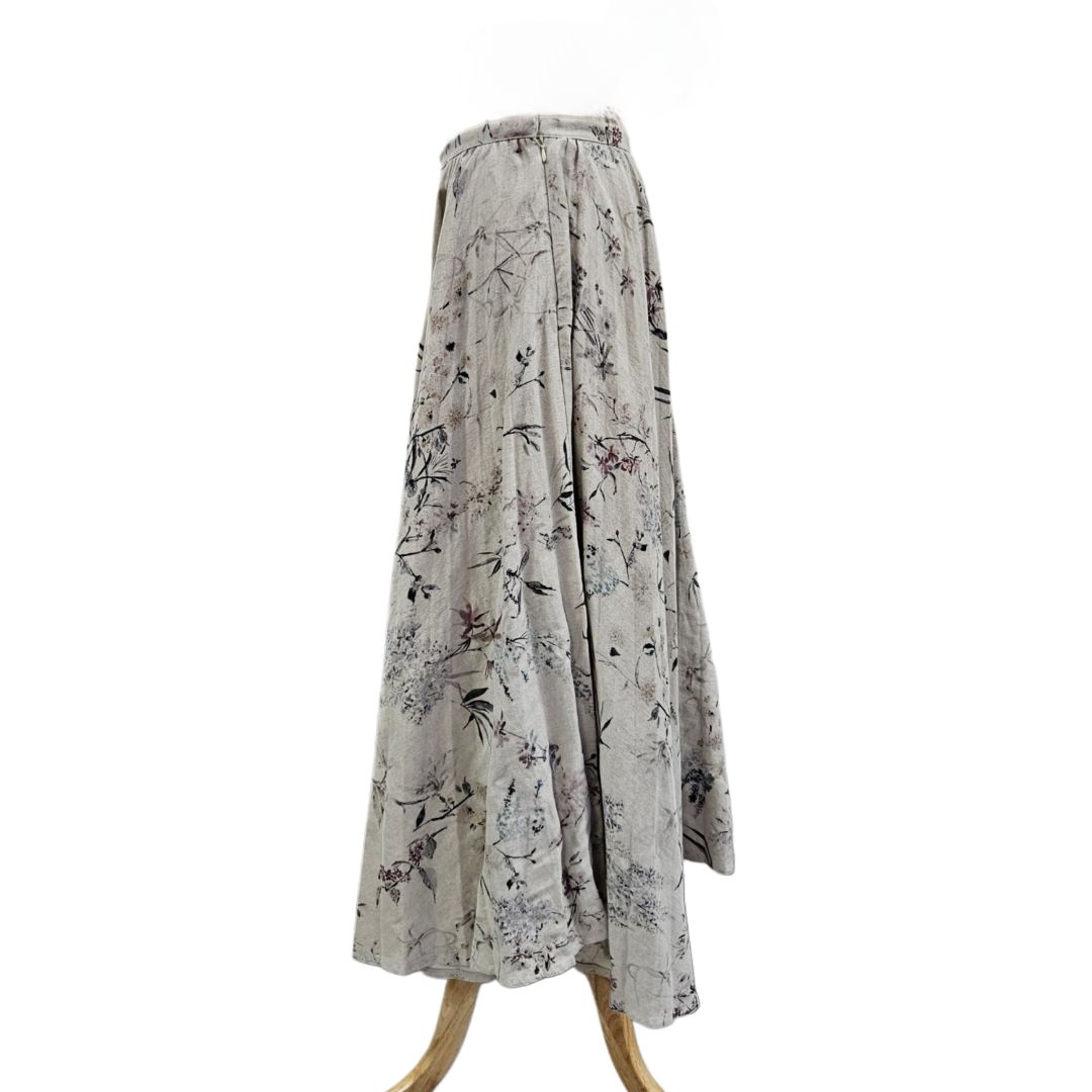 Christian Dior Grey Cotton and Linen With Purple Floral Print Maxi Skirt