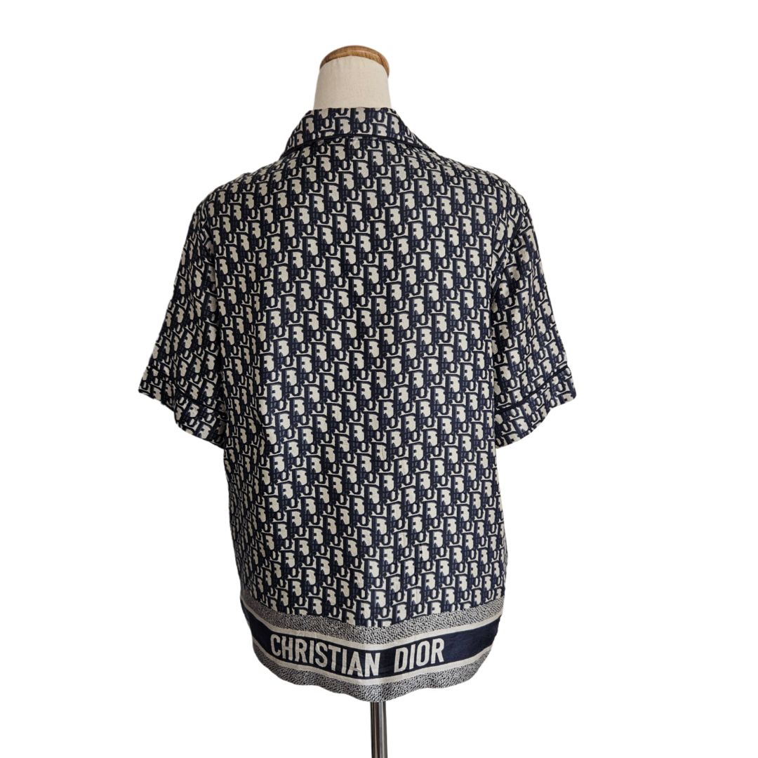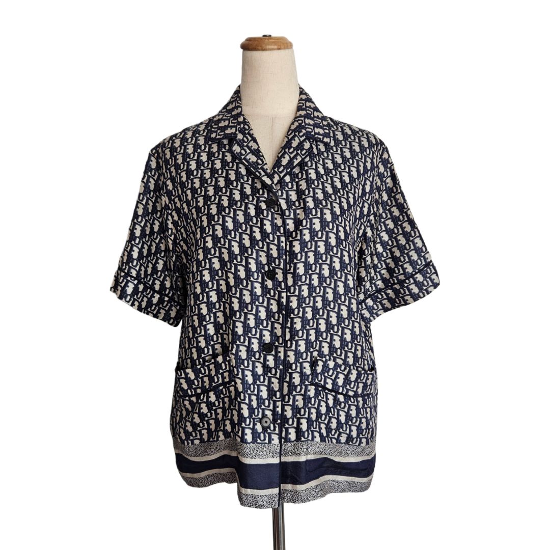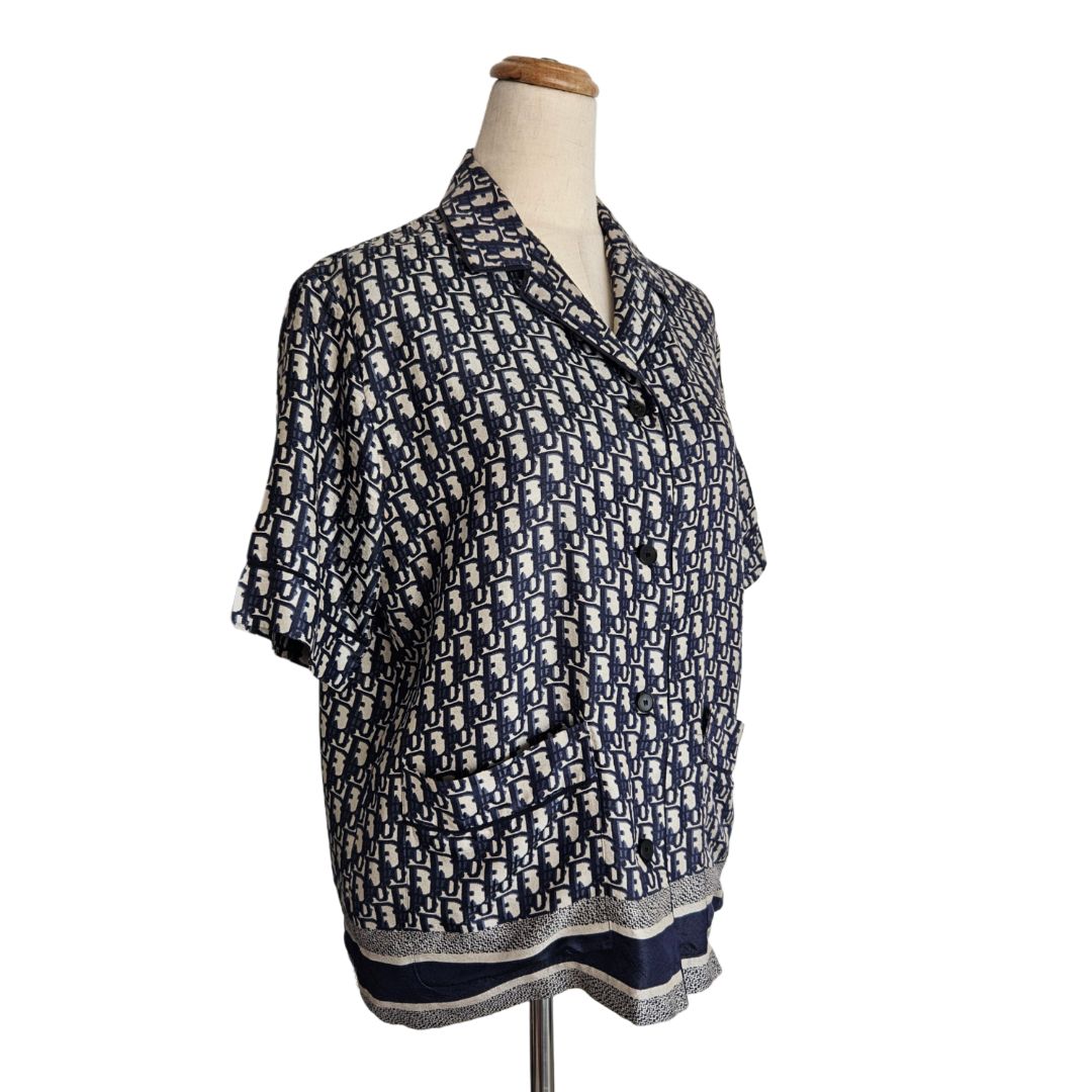 Dior Navy Blue Oblique Print Silk Shortsleeve Shirt