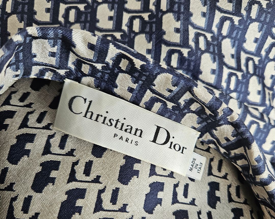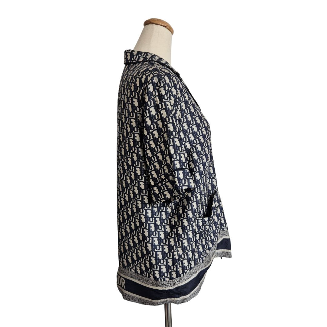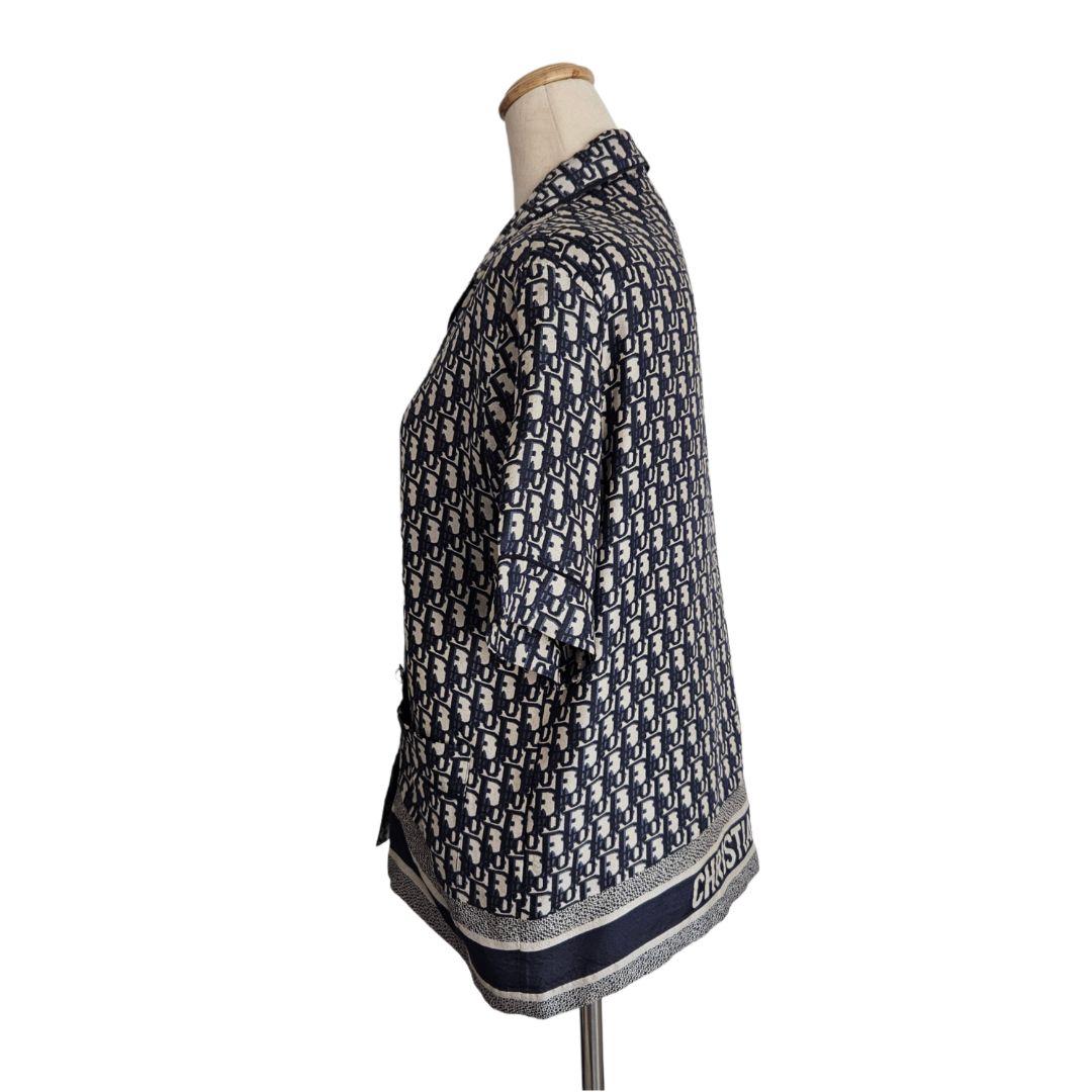 Dior Navy Blue Oblique Print Silk Shortsleeve Shirt