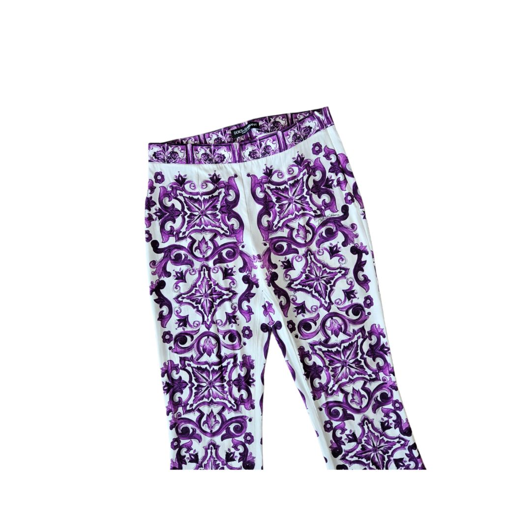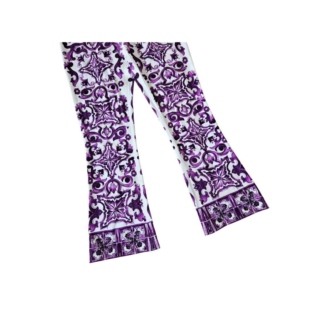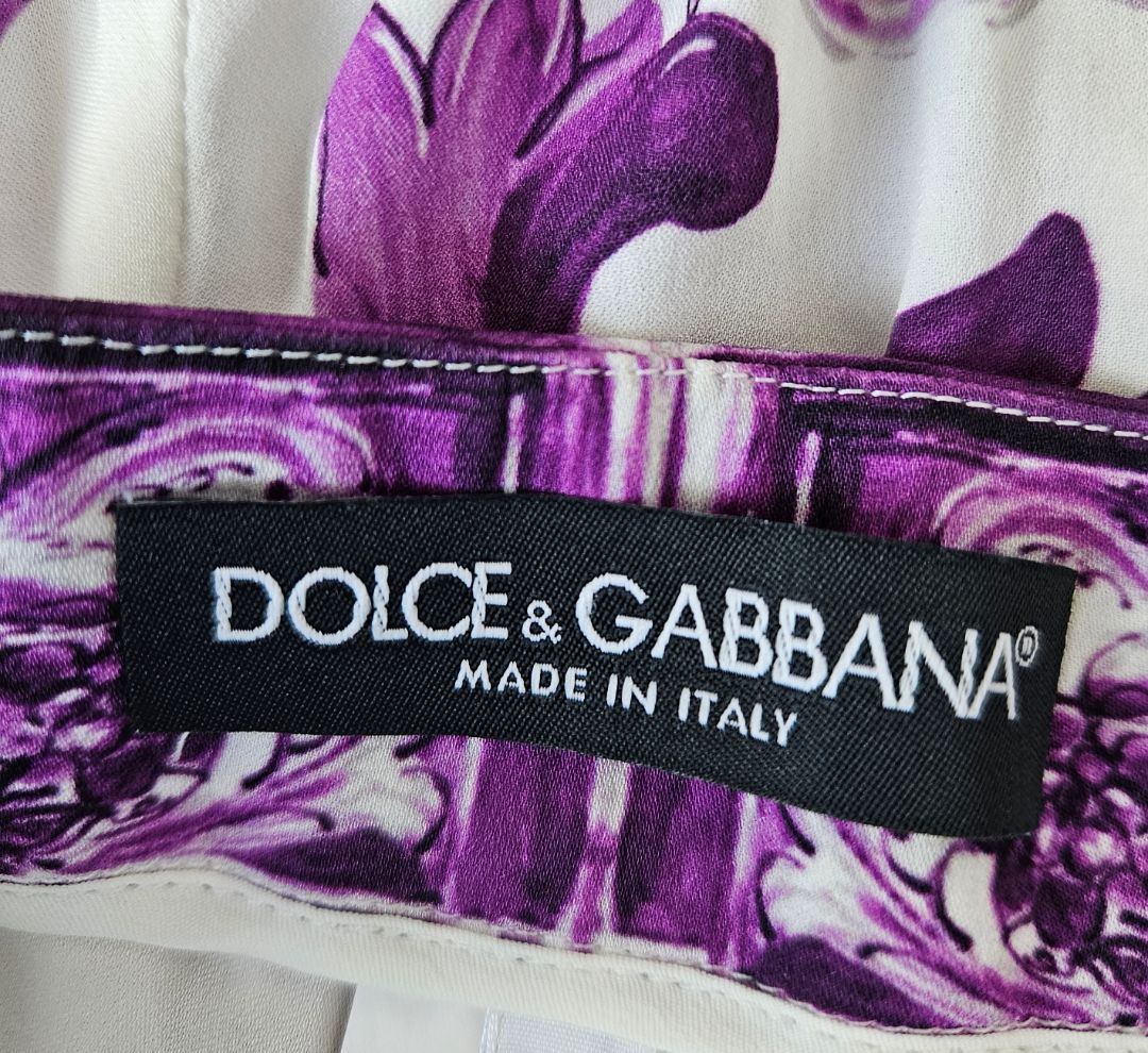 Dolce & Gabbana Purple & White Majolica Print Silk Trouser