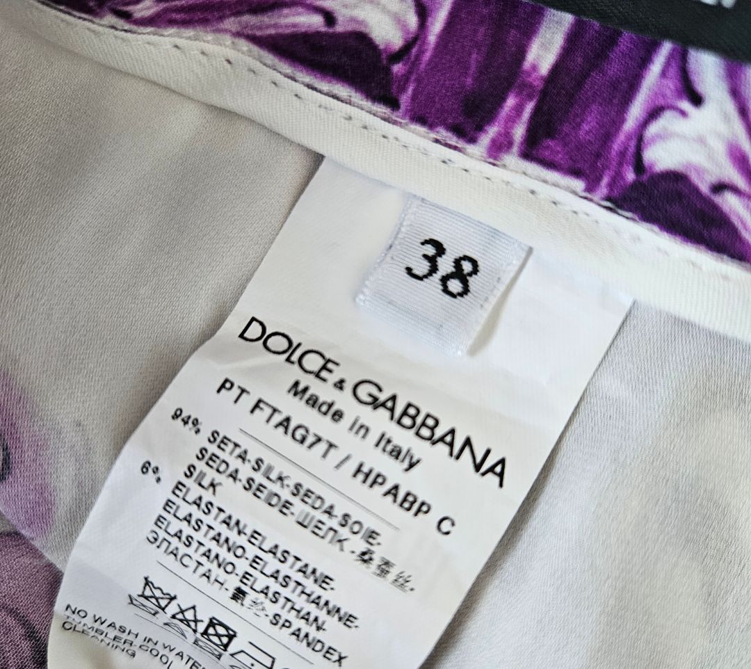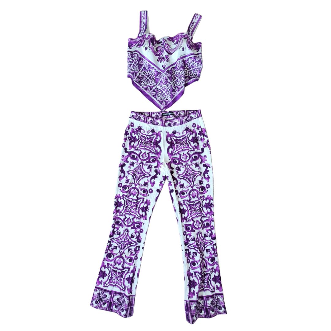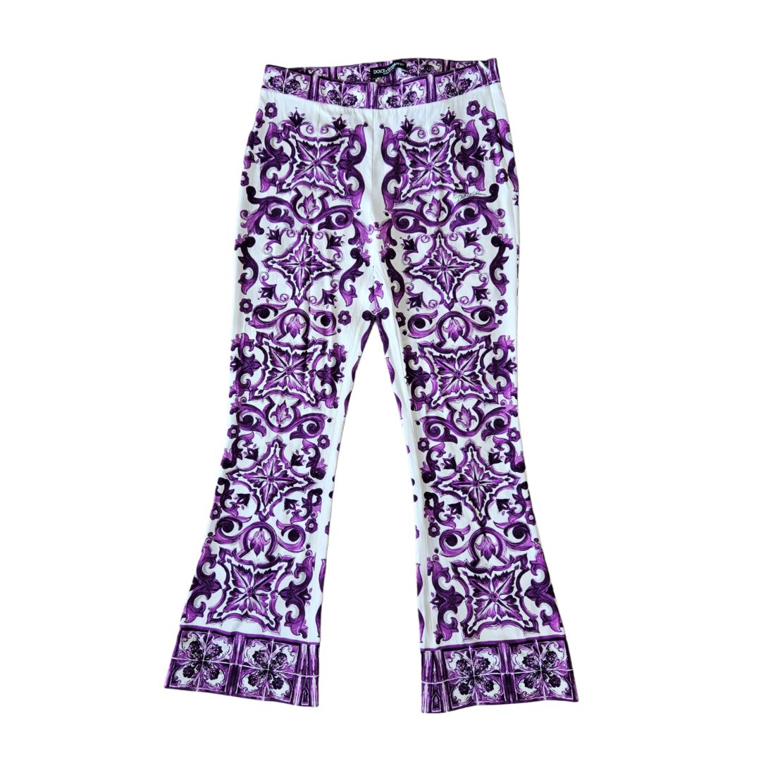 Dolce & Gabbana Purple & White Majolica Print Silk Trouser
