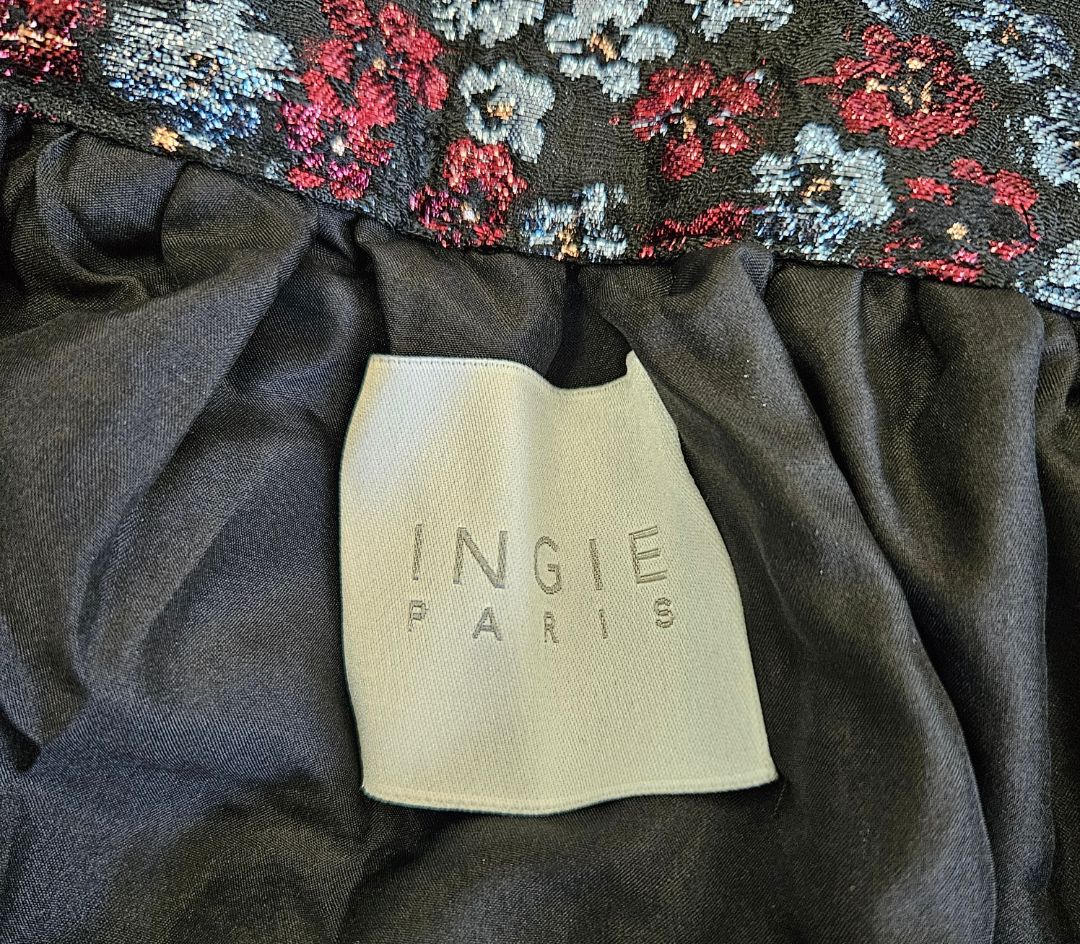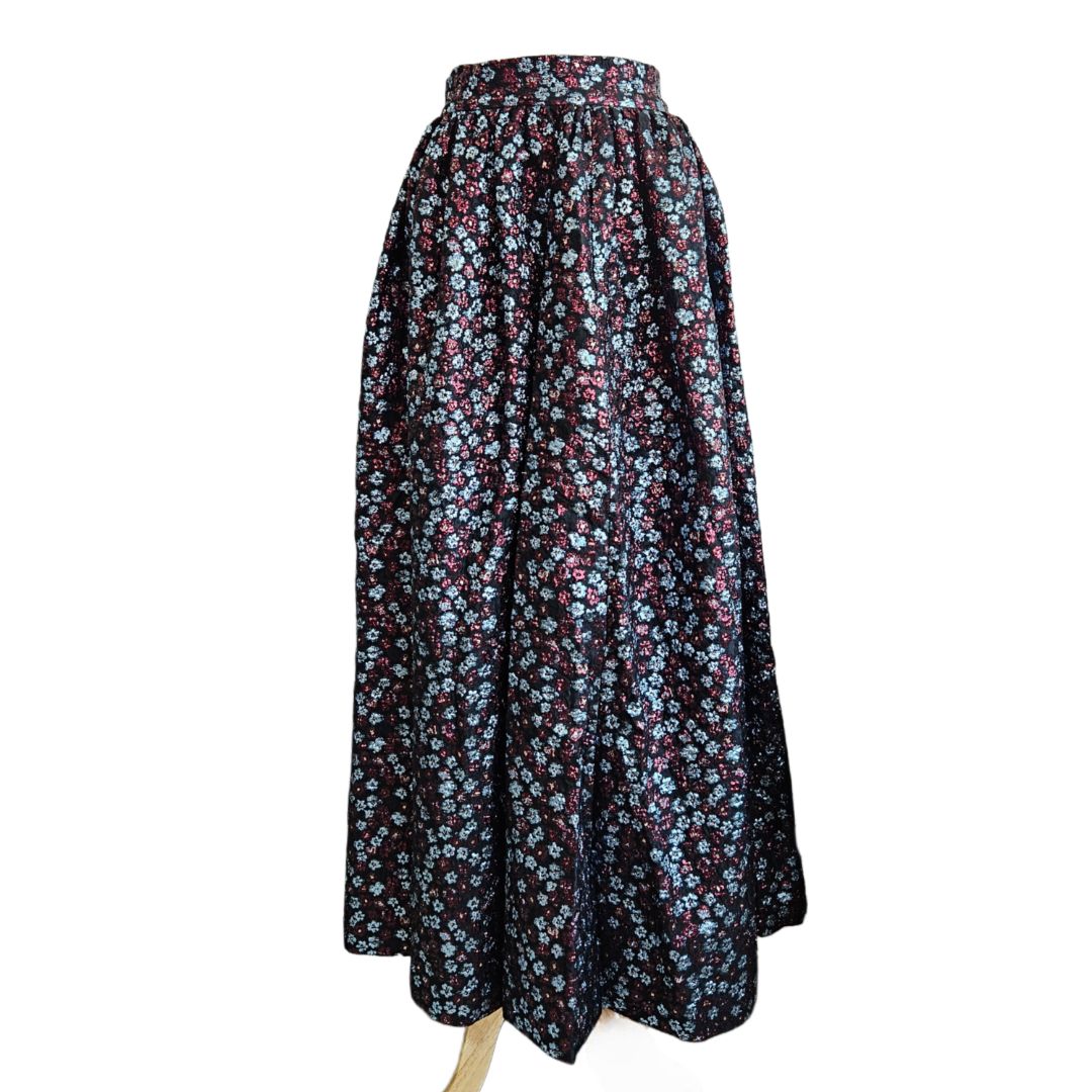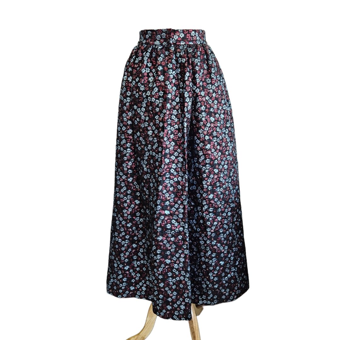 Ingie Paris Metallic Floral Print Long Flared Skirt