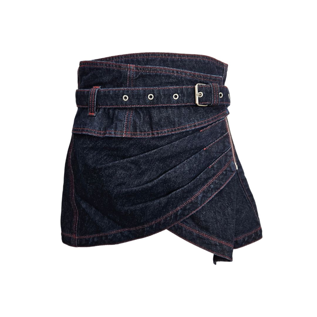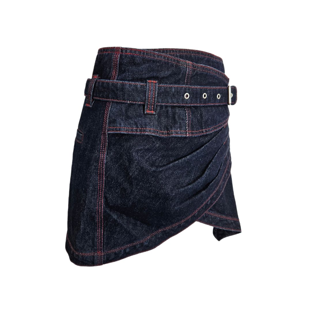 Isabel Marant Dark Blue Denim w/ Red Belted Wrap Skirt