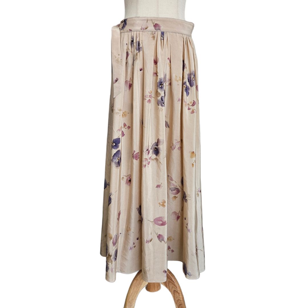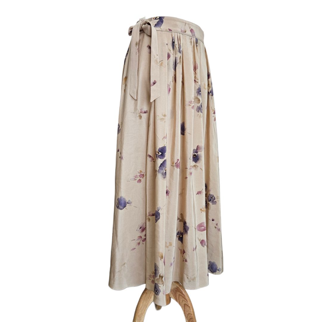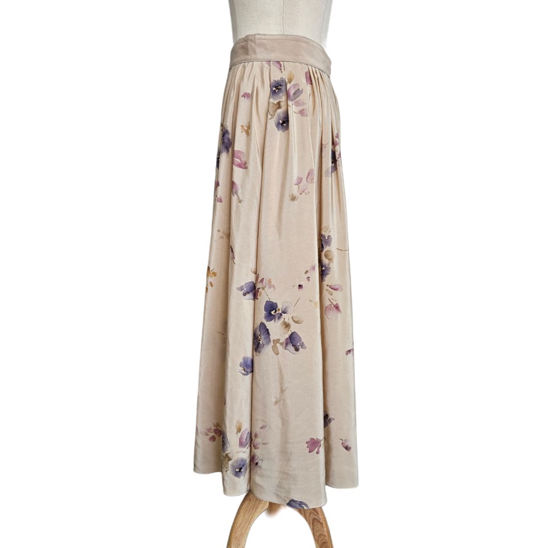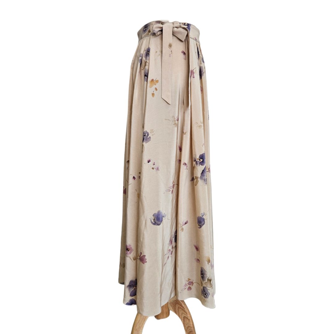 Loro Piana Beige Floral Print Silk Belted Maxi Skirt