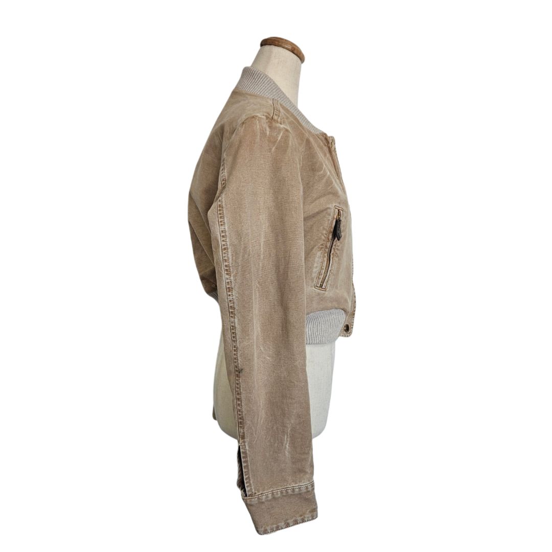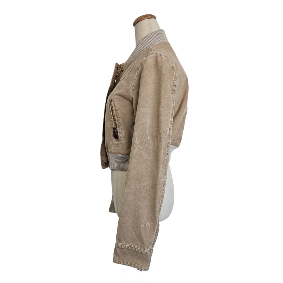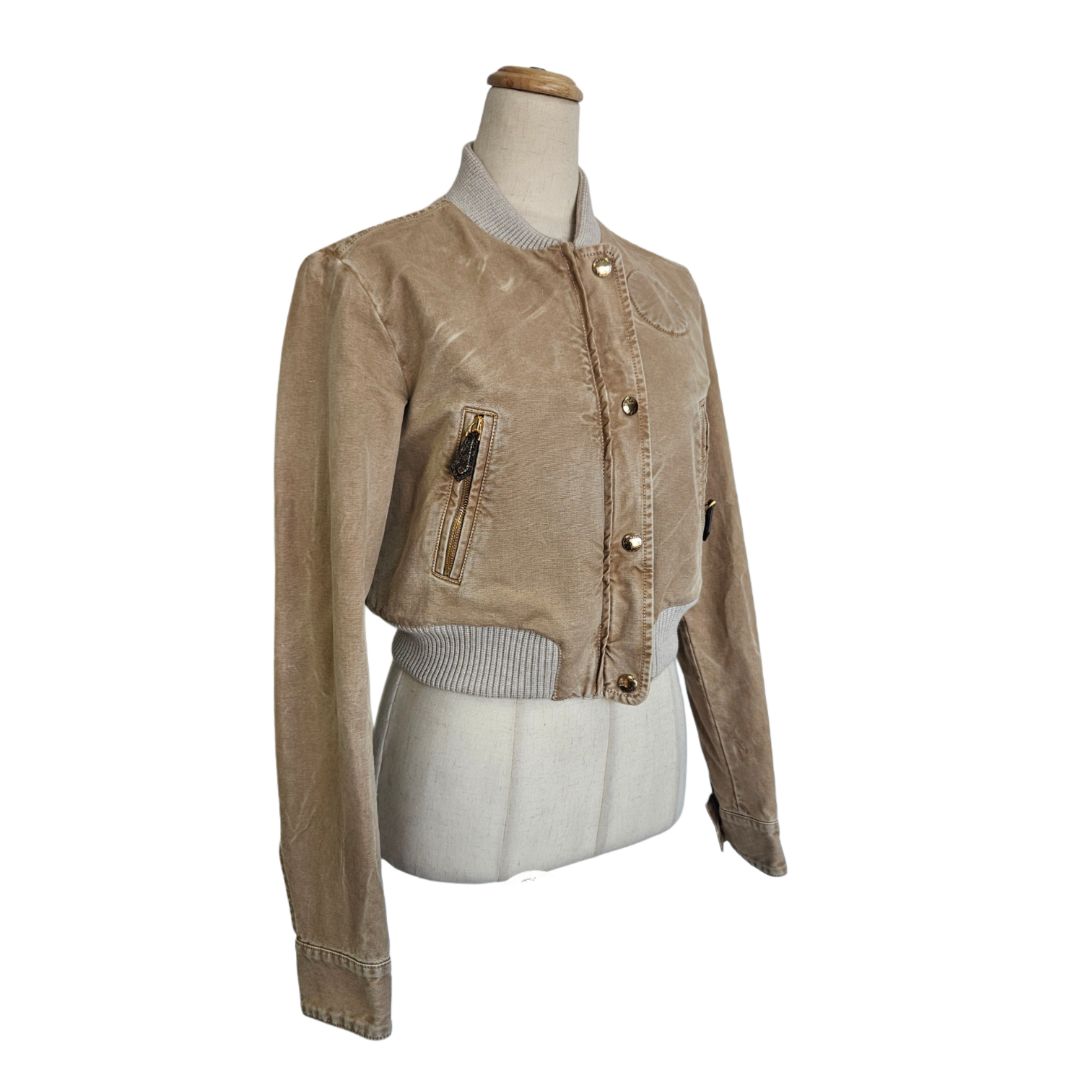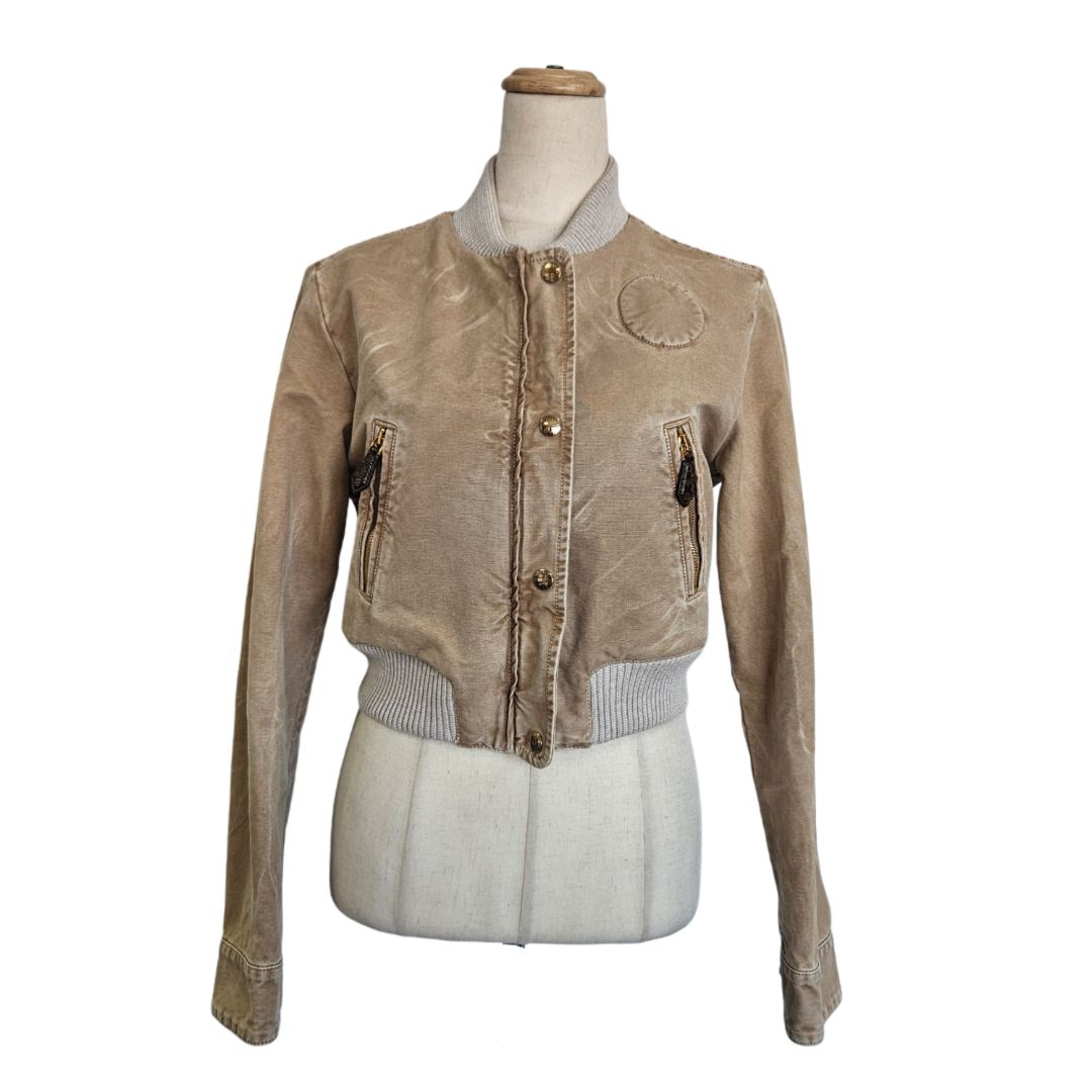 Louis Vuitton Brown Denim Bomber Cropped Jacket, size 38